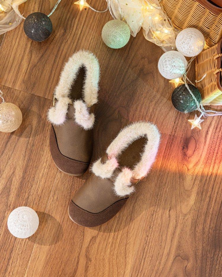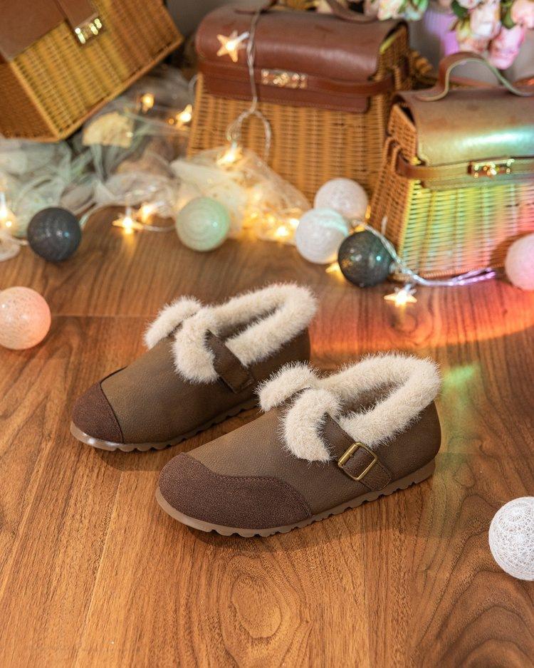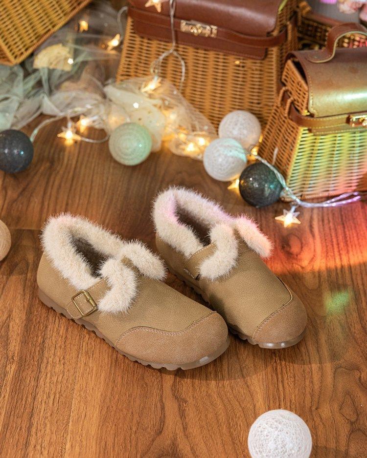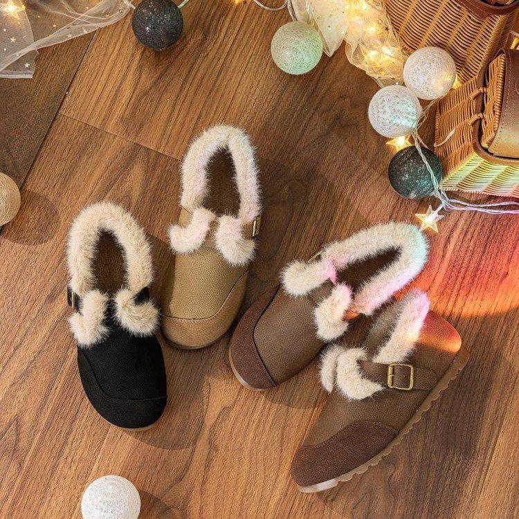 Birkenstock Grueso Retro para Mujer 2025 Invierno Nuevo Ante Punta Redonda Plano Slip-on Cálidos Zapatos de Frijol Suela Suave Zapatos de Algodón