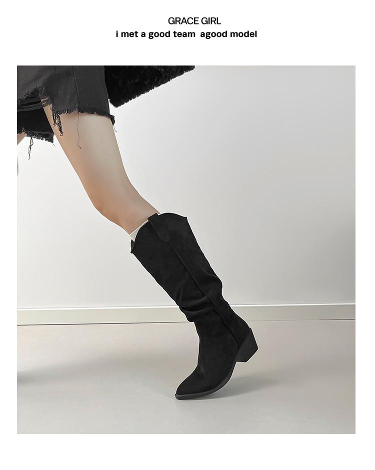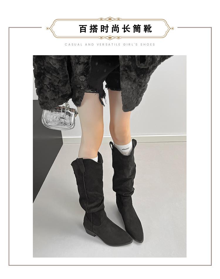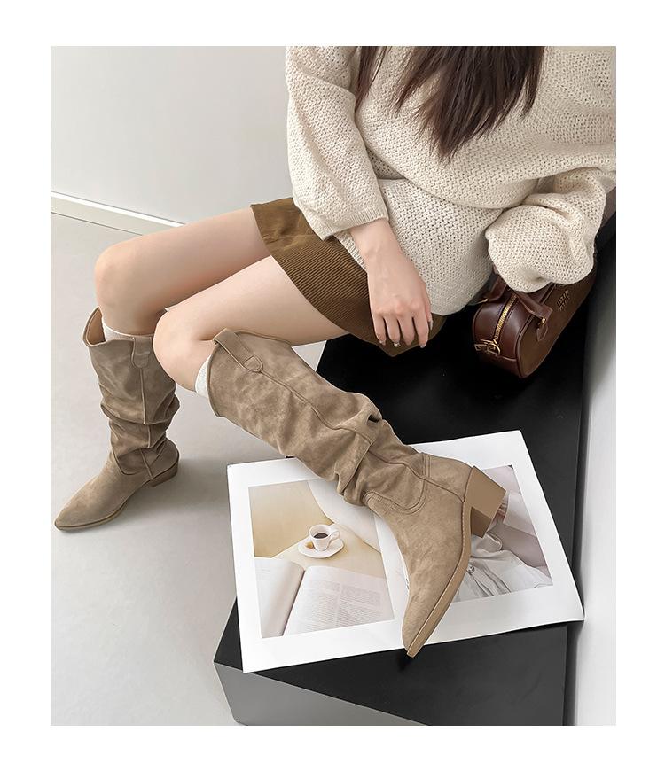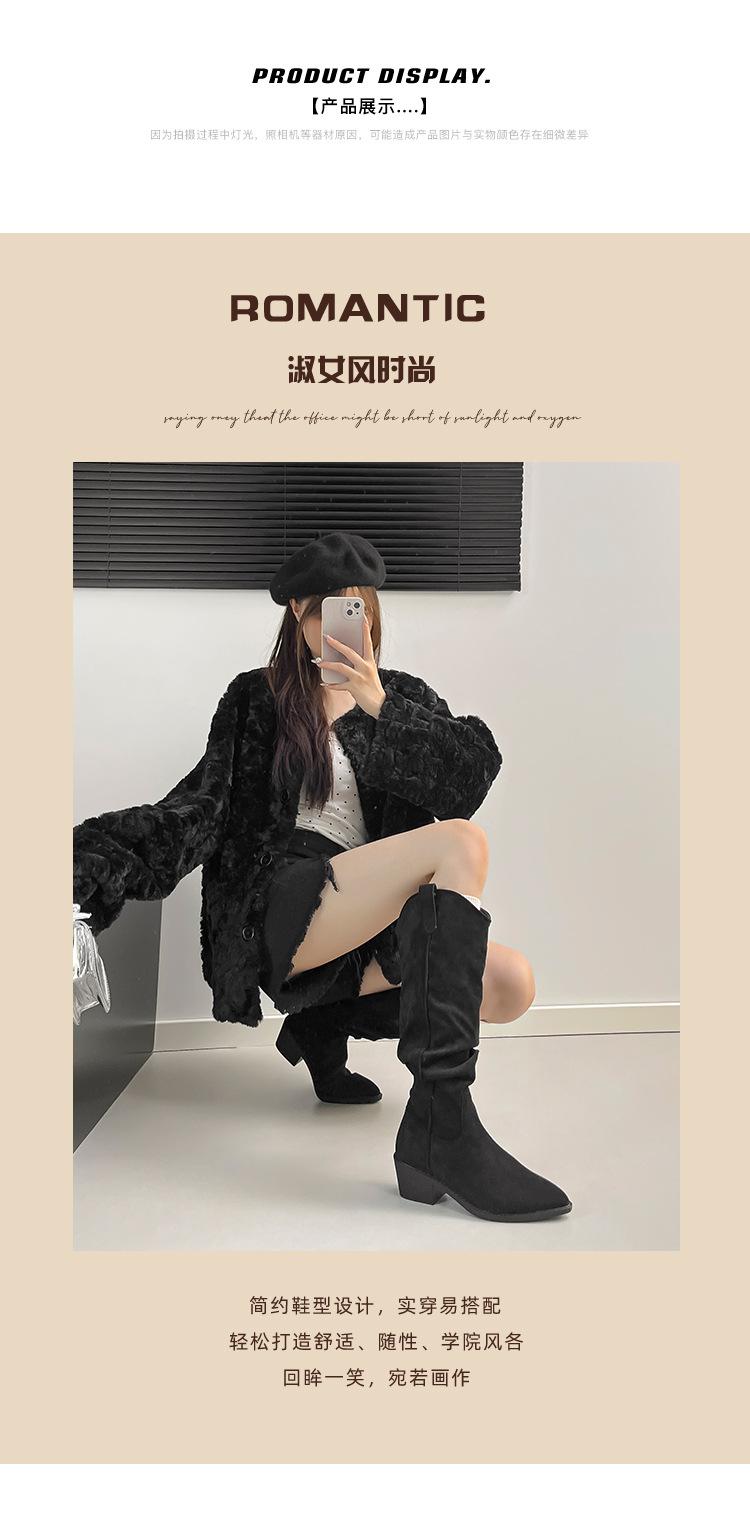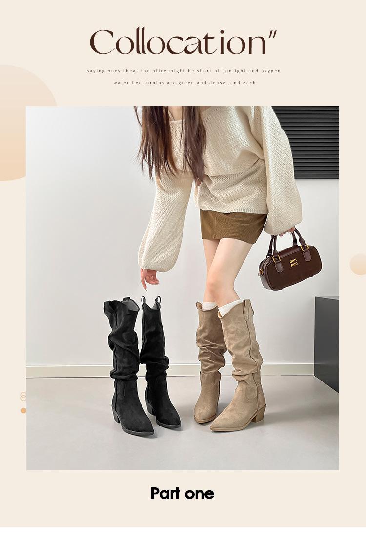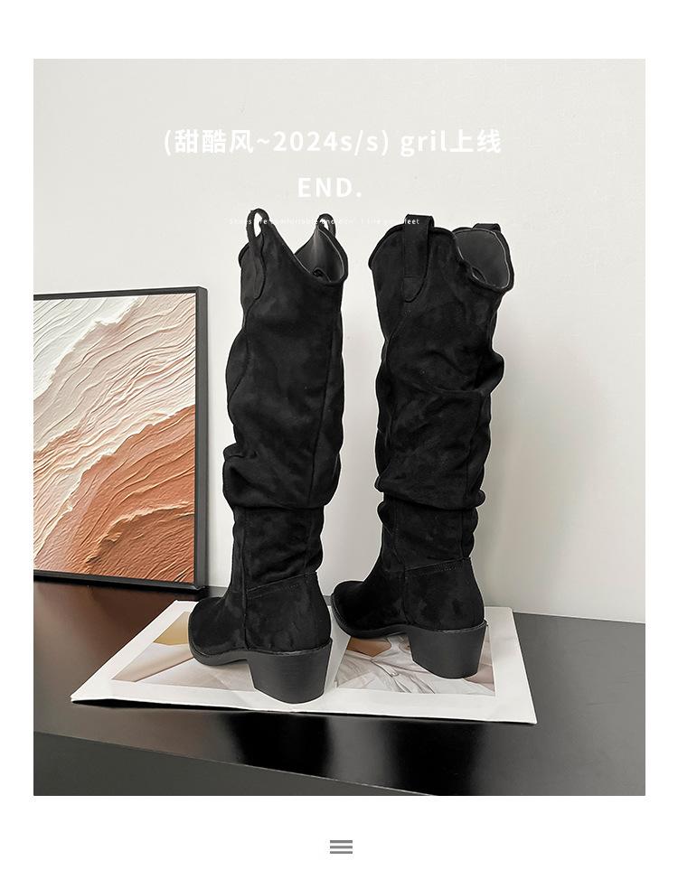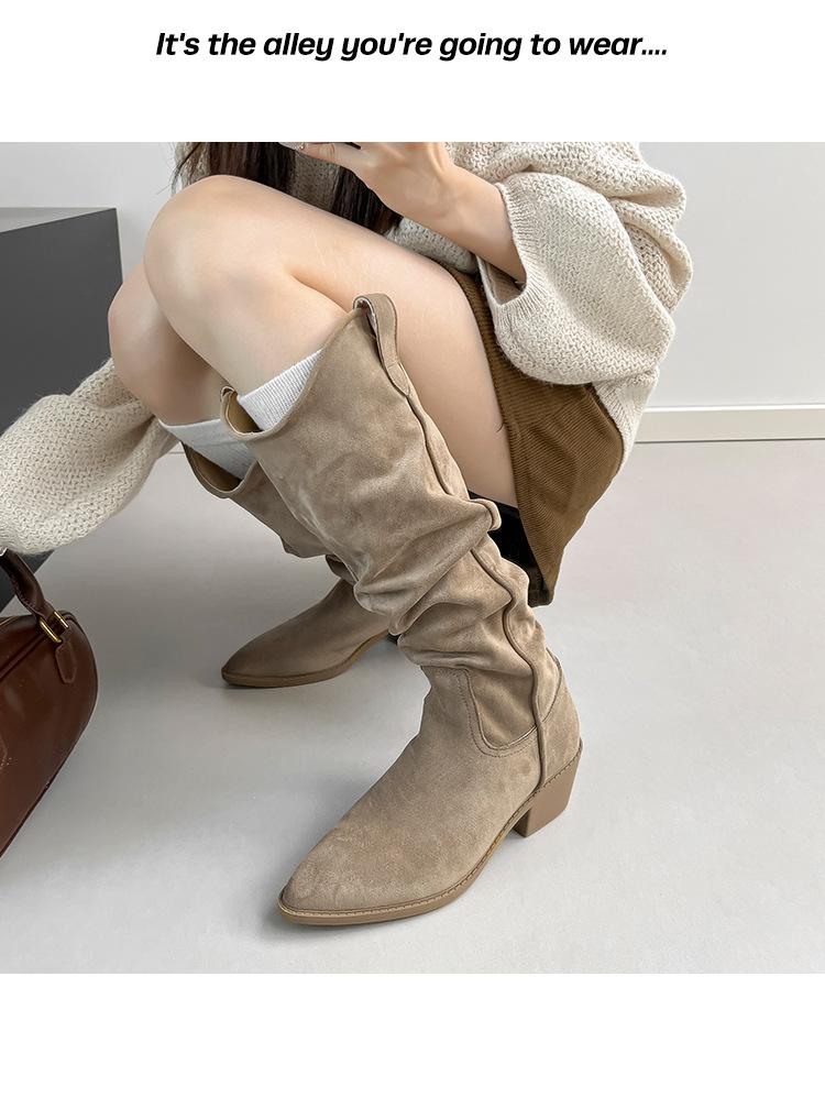 Botas Largas de Gamuza para Mujer Botas Apiladas Otoño Invierno Nuevo Tacón Chunky Punta Afilada Corte en V Adelgazantes Tubo Alto Botas Vaqueras Occidentales Botas de Jinete