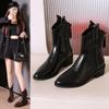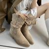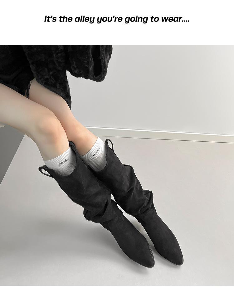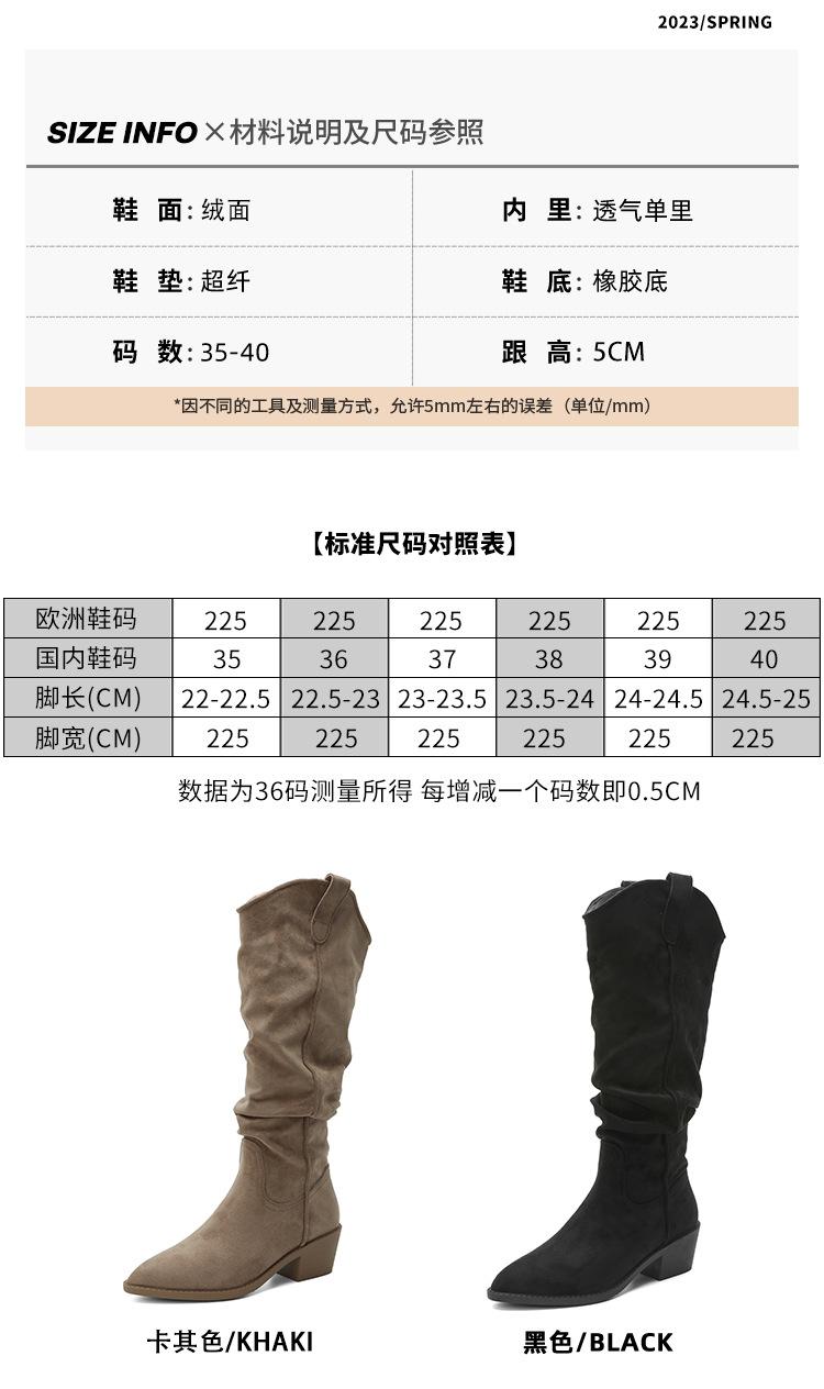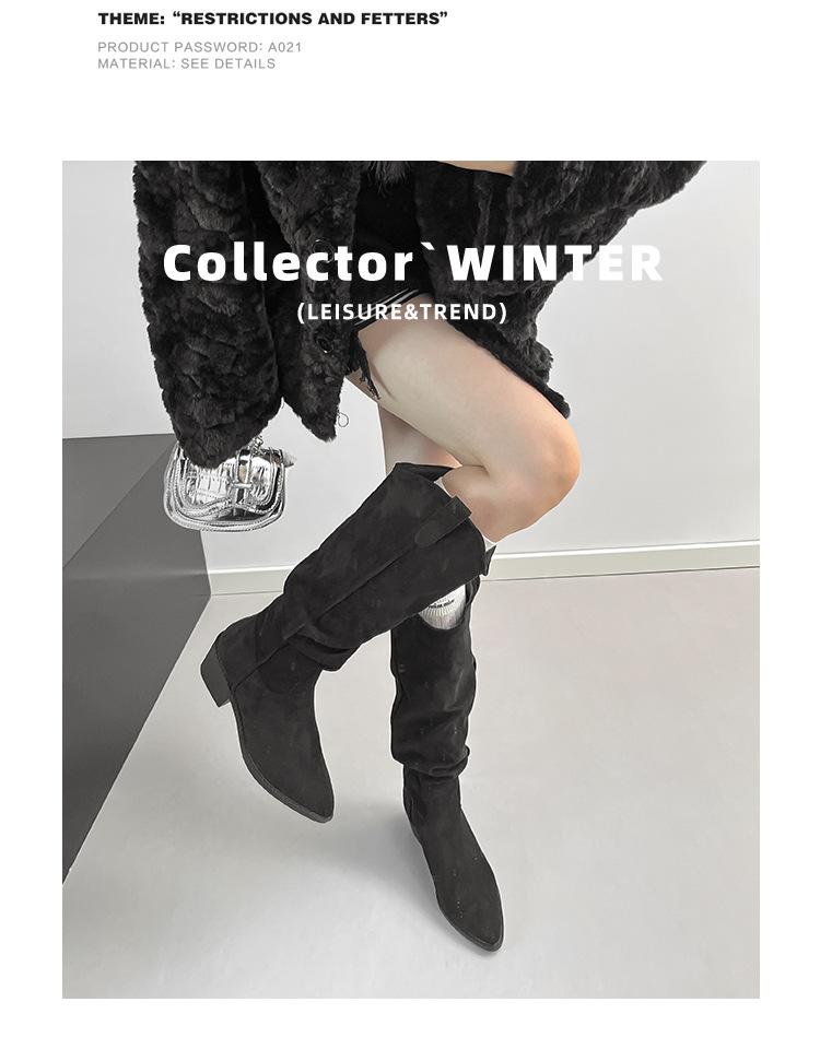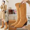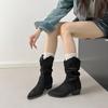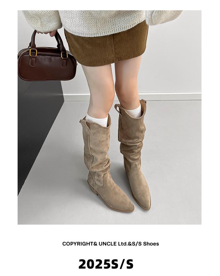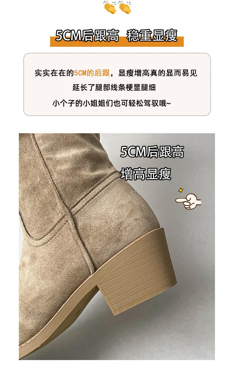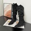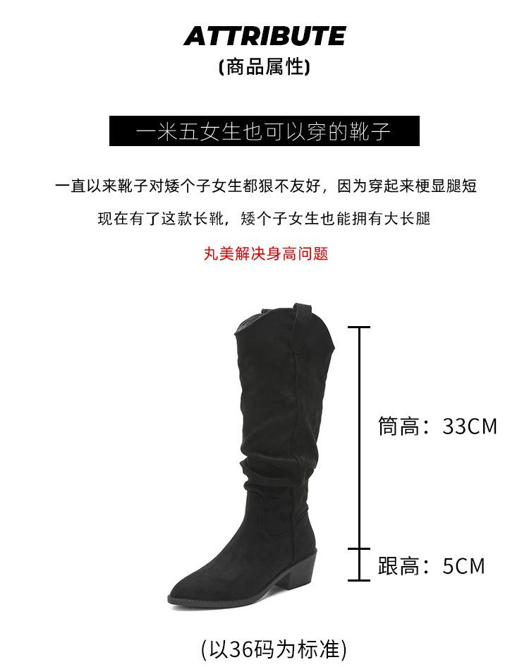 Botas Largas de Gamuza para Mujer Botas Apiladas Otoño Invierno Nuevo Tacón Chunky Punta Afilada Corte en V Adelgazantes Tubo Alto Botas Vaqueras Occidentales Botas de Jinete