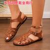 Sandalias de Mujer al por Mayor al Contado Transfronterizo de Comercio Exterior Verano Europeo y Americano Slip-On Nuevo Estilo Talla Grande Uso Exterior Sandalias Planas de Mujer
