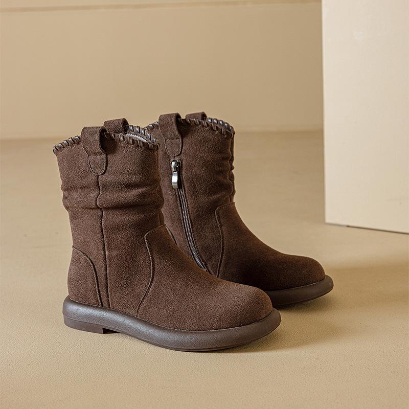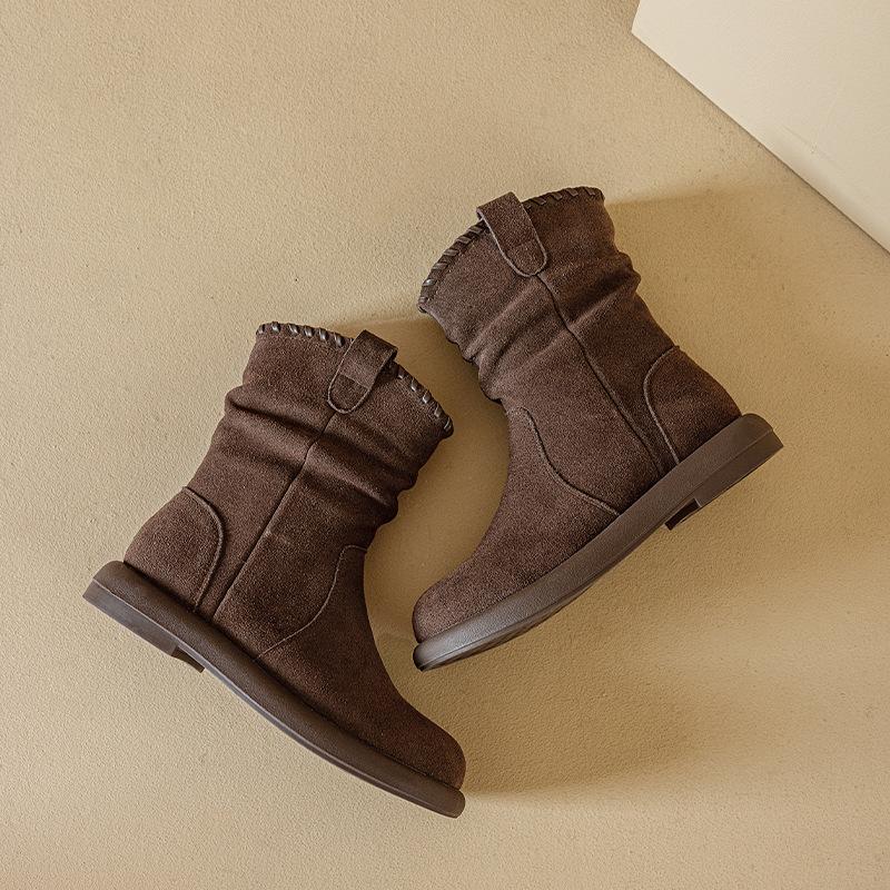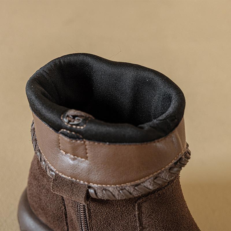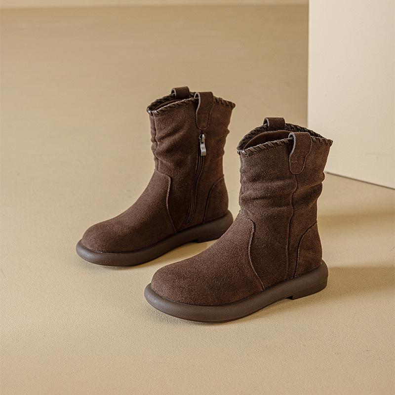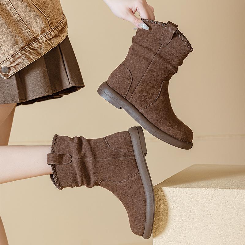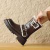 Botas Martin de Cuero Genuino de Alta Gama para Mujer, Botas de Moda Versátiles de Suela Gruesa, Punta Redonda, Café Myllard, Botas Apiladas de Media Caña
