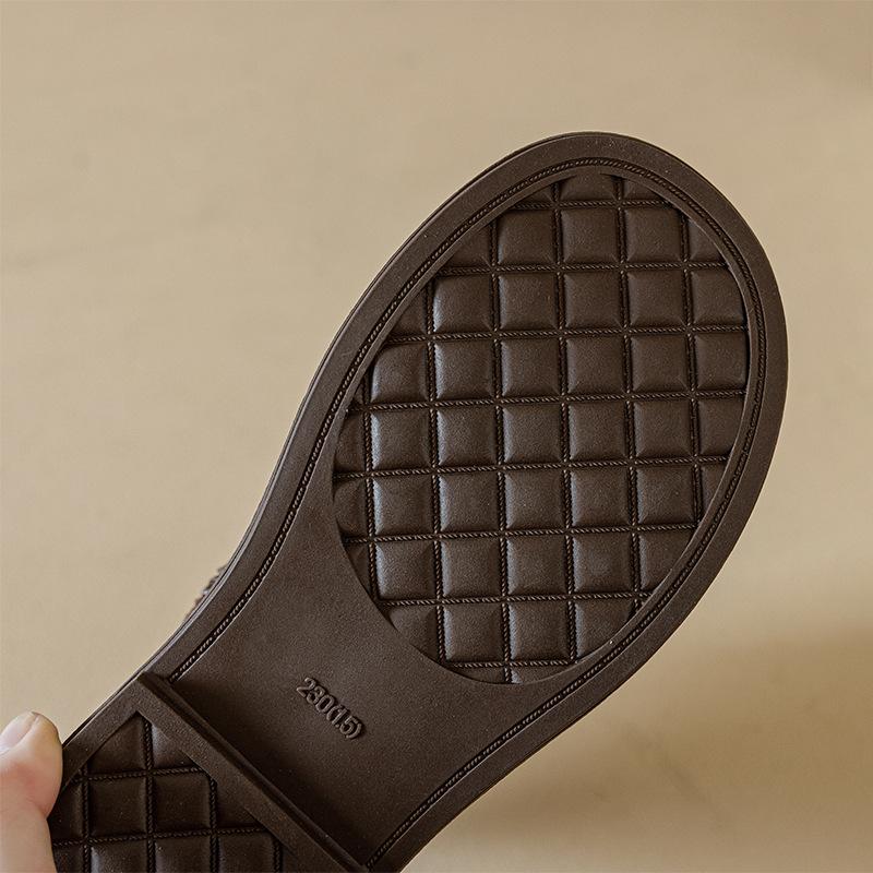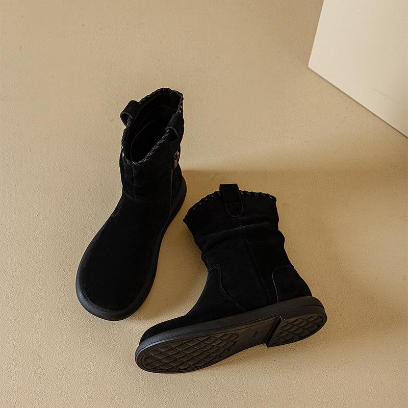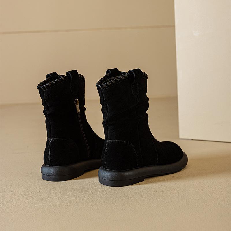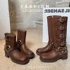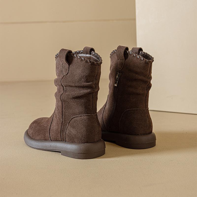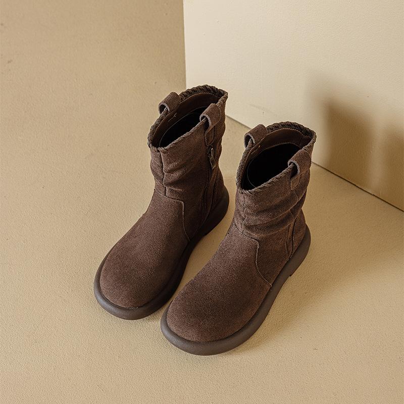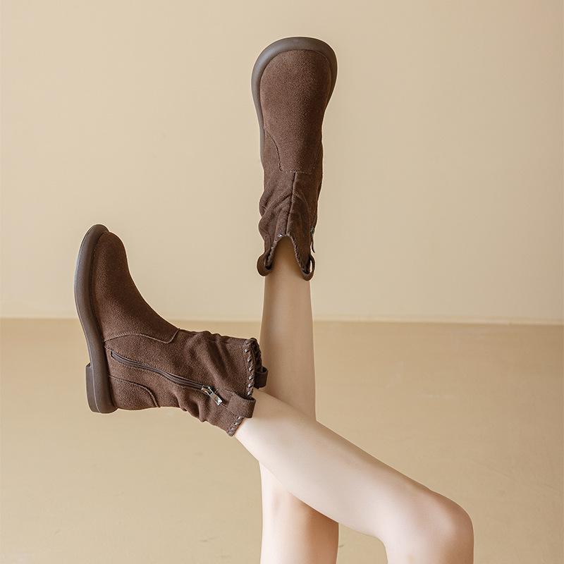 Botas Martin de Cuero Genuino de Alta Gama para Mujer, Botas de Moda Versátiles de Suela Gruesa, Punta Redonda, Café Myllard, Botas Apiladas de Media Caña