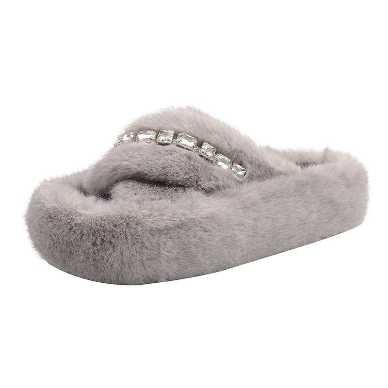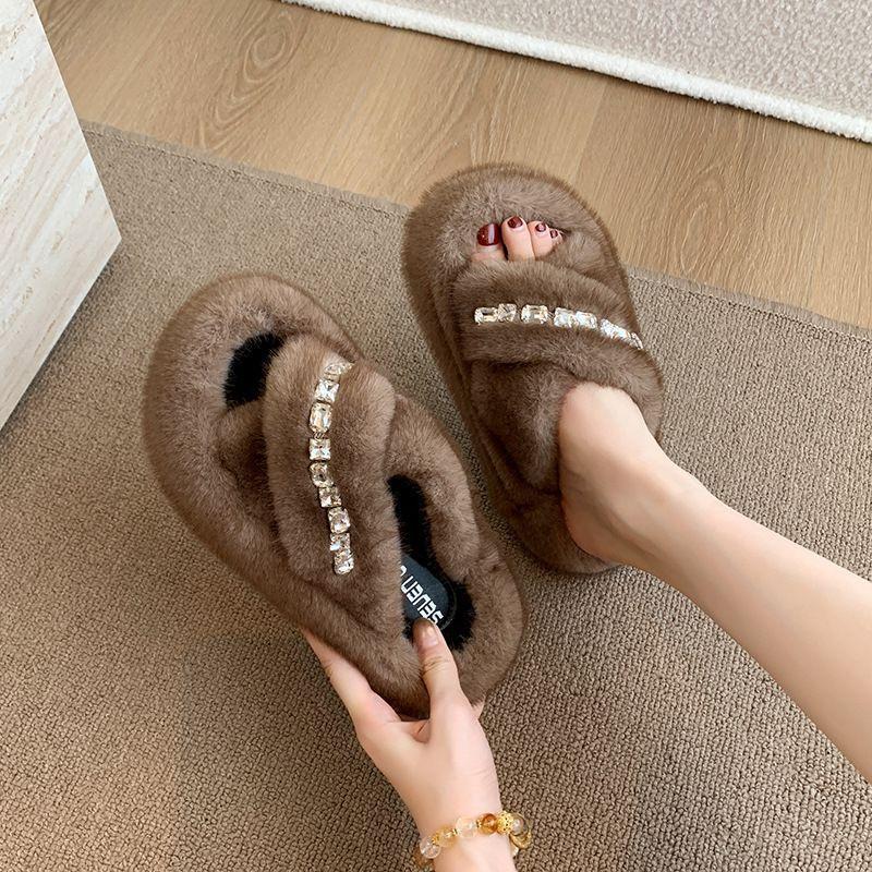 Compra Zapatillas Nuevas de Otoño 2025 con Perlas y Pedrería para Uso Exterior Zapatos Cálidos y Peludos Zapatillas de Algodón de Moda para Mujer al por mayor en Joom.pro