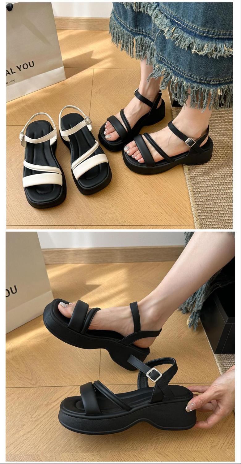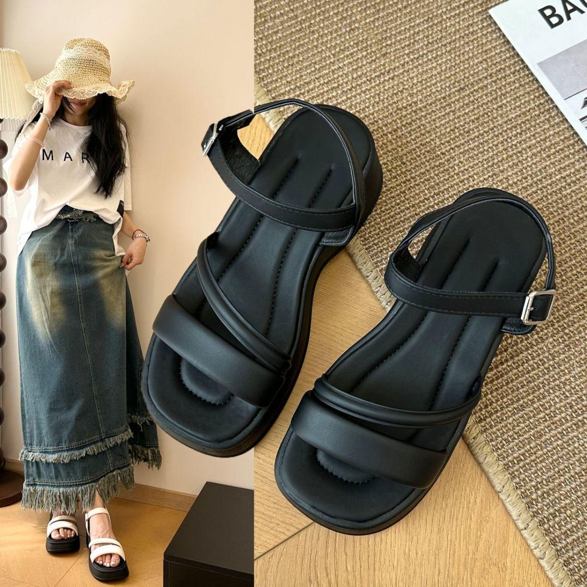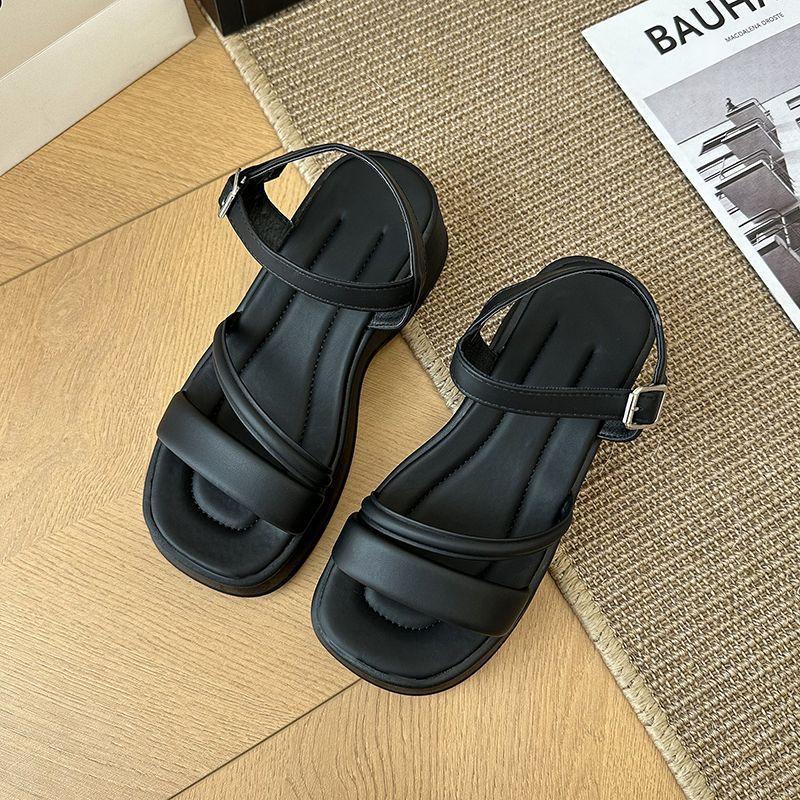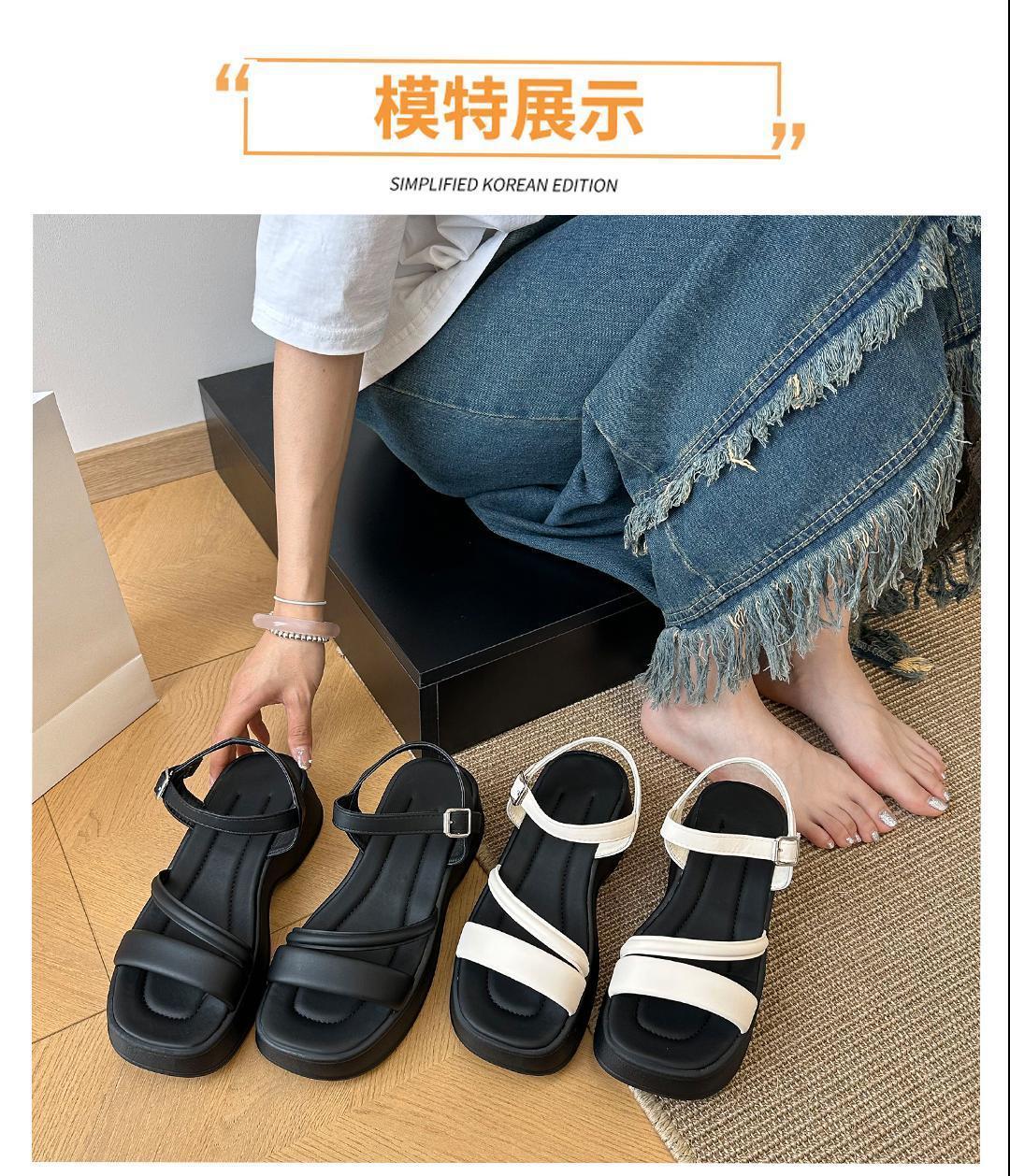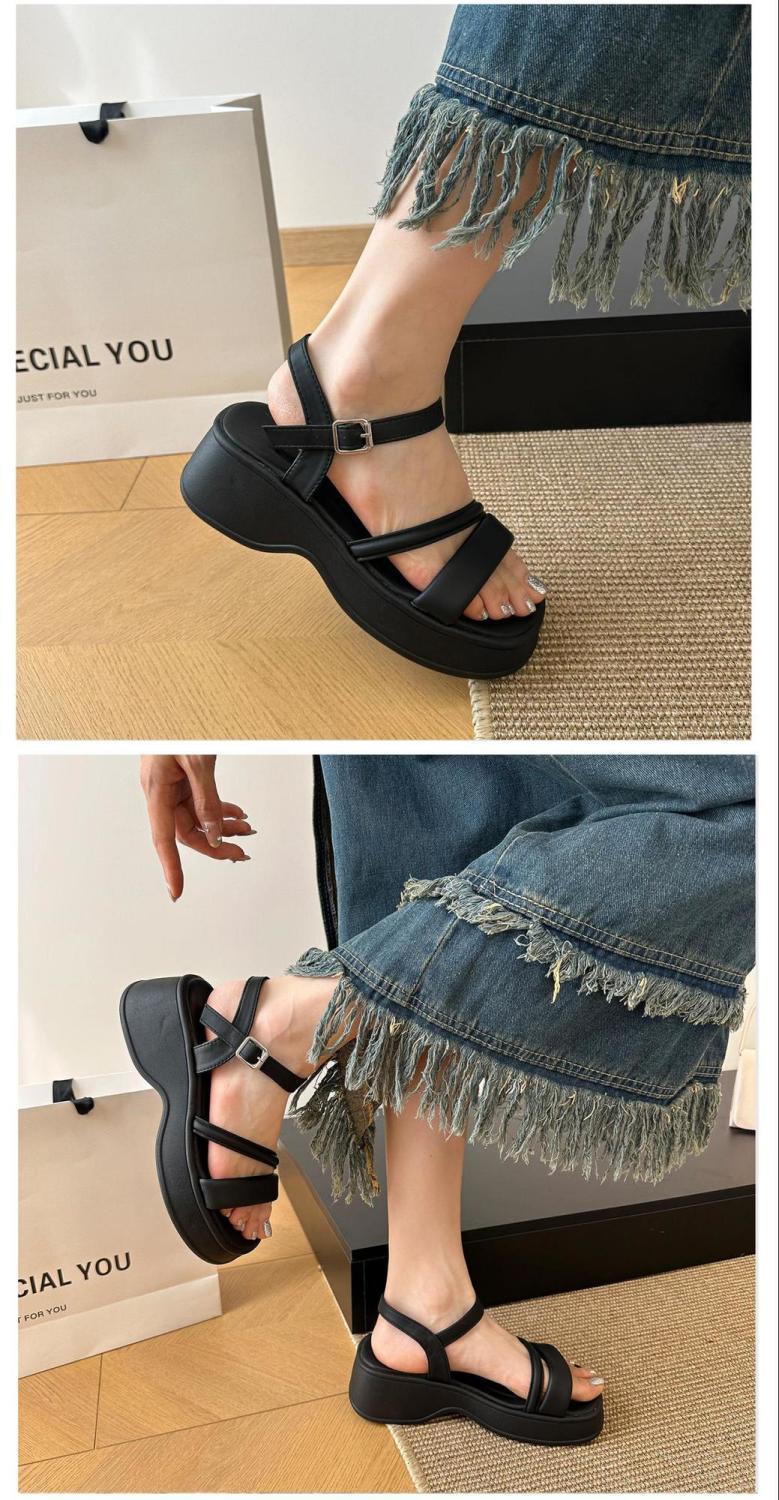 Compra Sandalias retro francesas de punta abierta con suela gruesa y aumento de altura, modernas y versátiles, para mujer 2025 verano nuevo sandalias de una tira para mujer al por mayor en Joom.pro