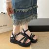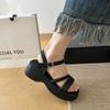 Sandalias retro francesas de punta abierta con suela gruesa y aumento de altura, modernas y versátiles, para mujer 2025 verano nuevo sandalias de una tira para mujer