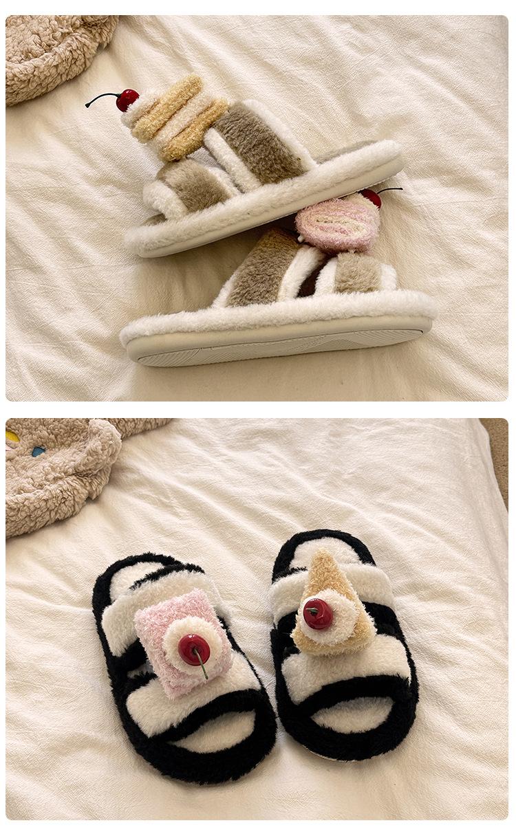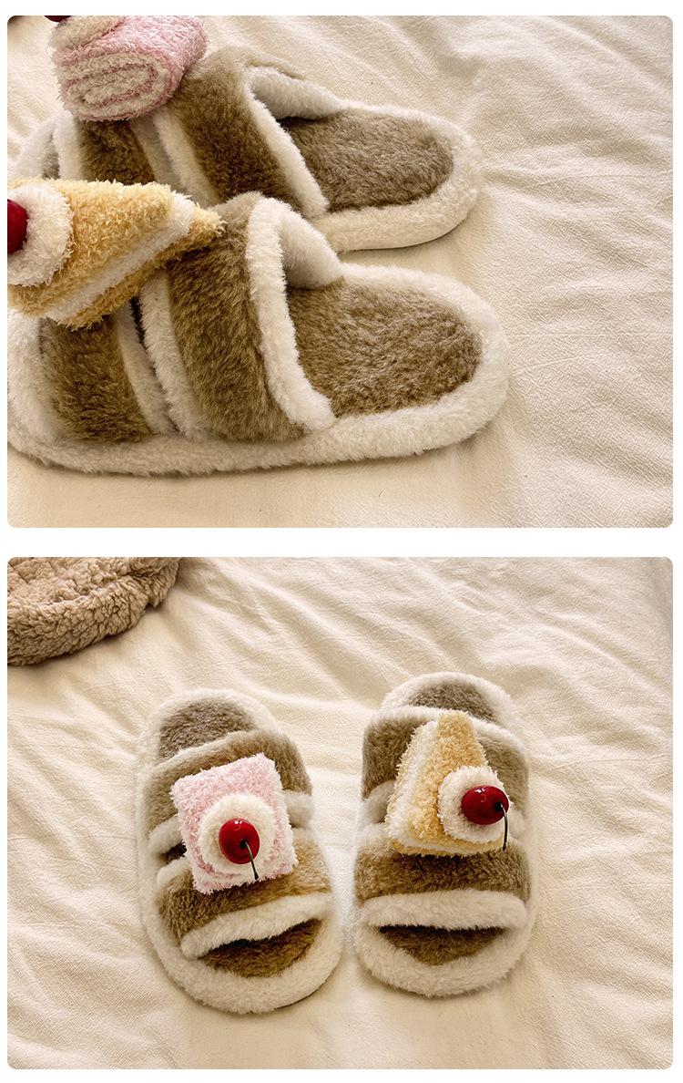 Pantuflas peludas para mujer para usar en exteriores 2025 invierno nuevo de un paso para casa interior antideslizantes cálidas de felpa de una palabra pantuflas de algodón