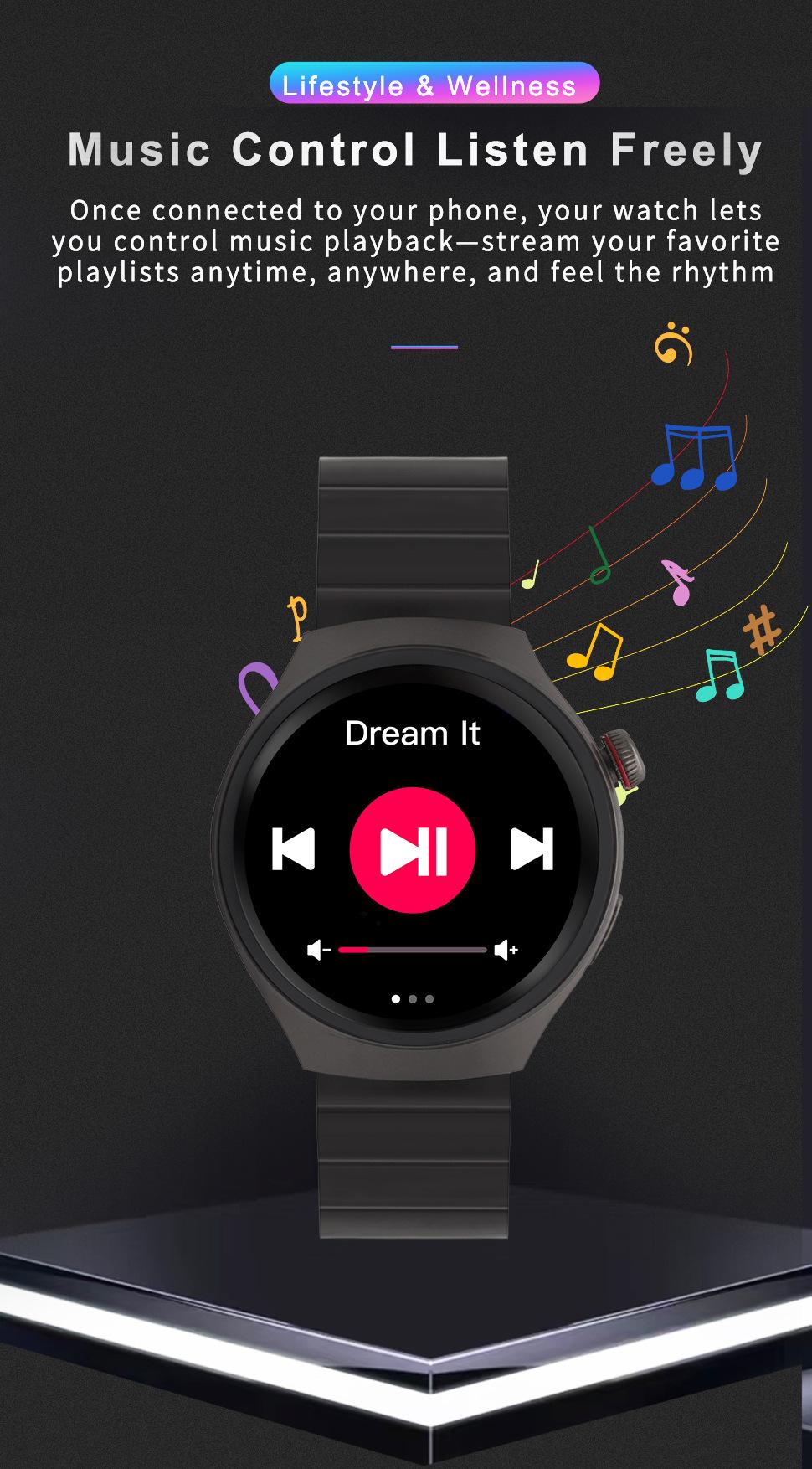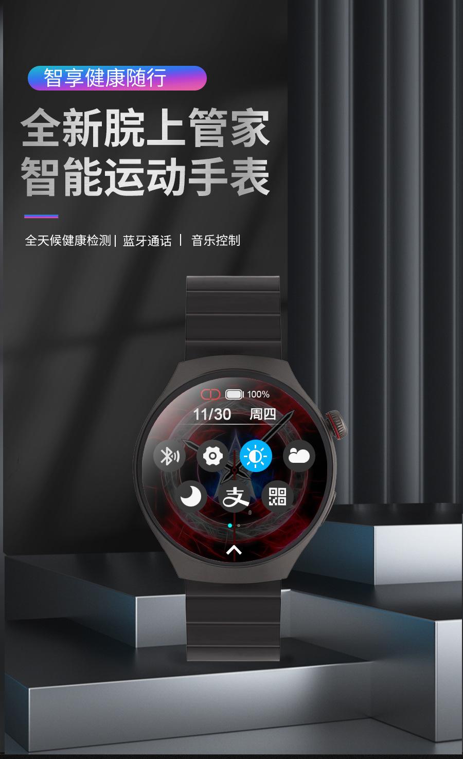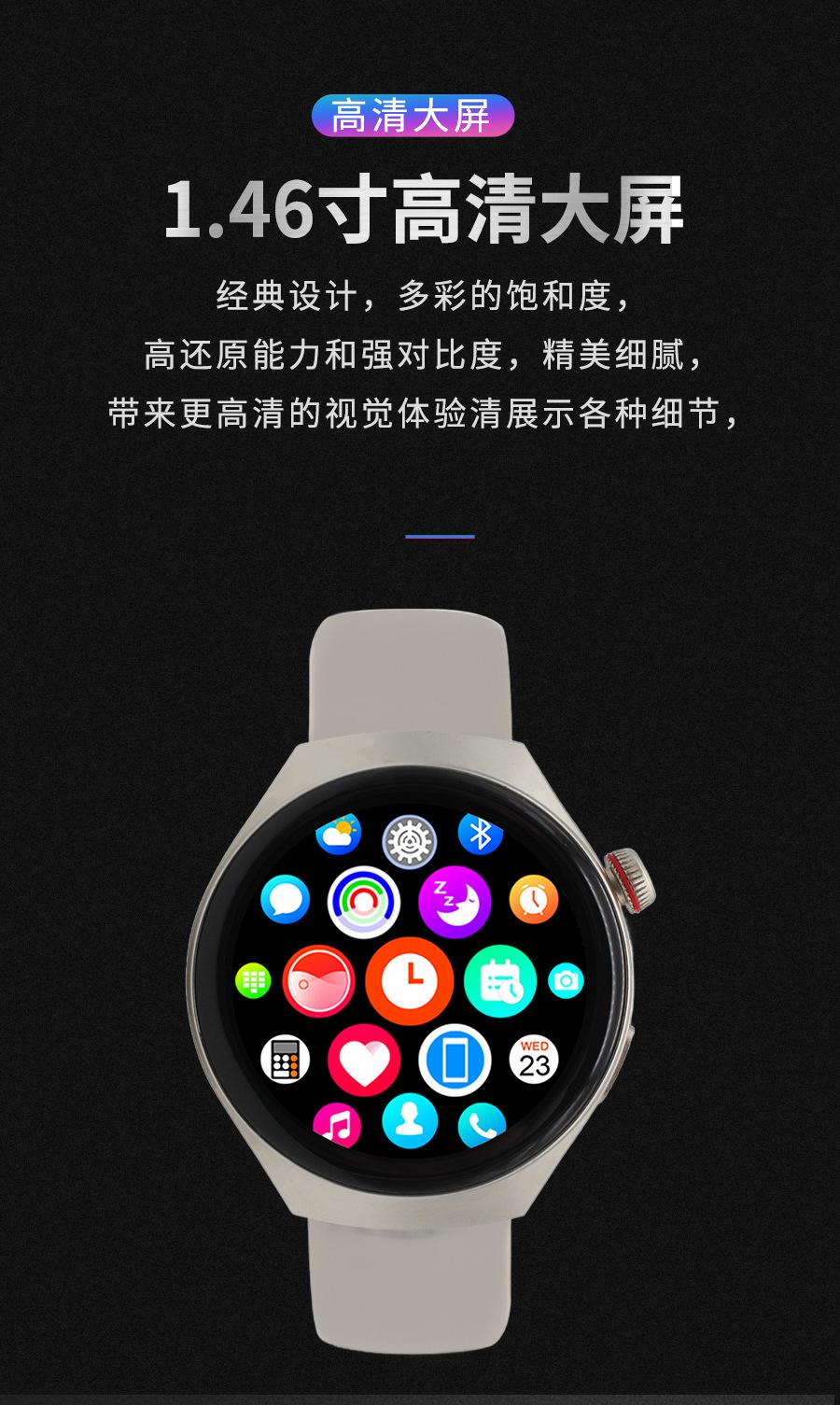 Reloj Inteligente Gt4Pro de Pantalla Redonda Transfronterizo Llamada Bluetooth Resistente al Agua Monitoreo de Frecuencia Cardíaca Oxígeno en Sangre Podómetro Reloj Inteligente