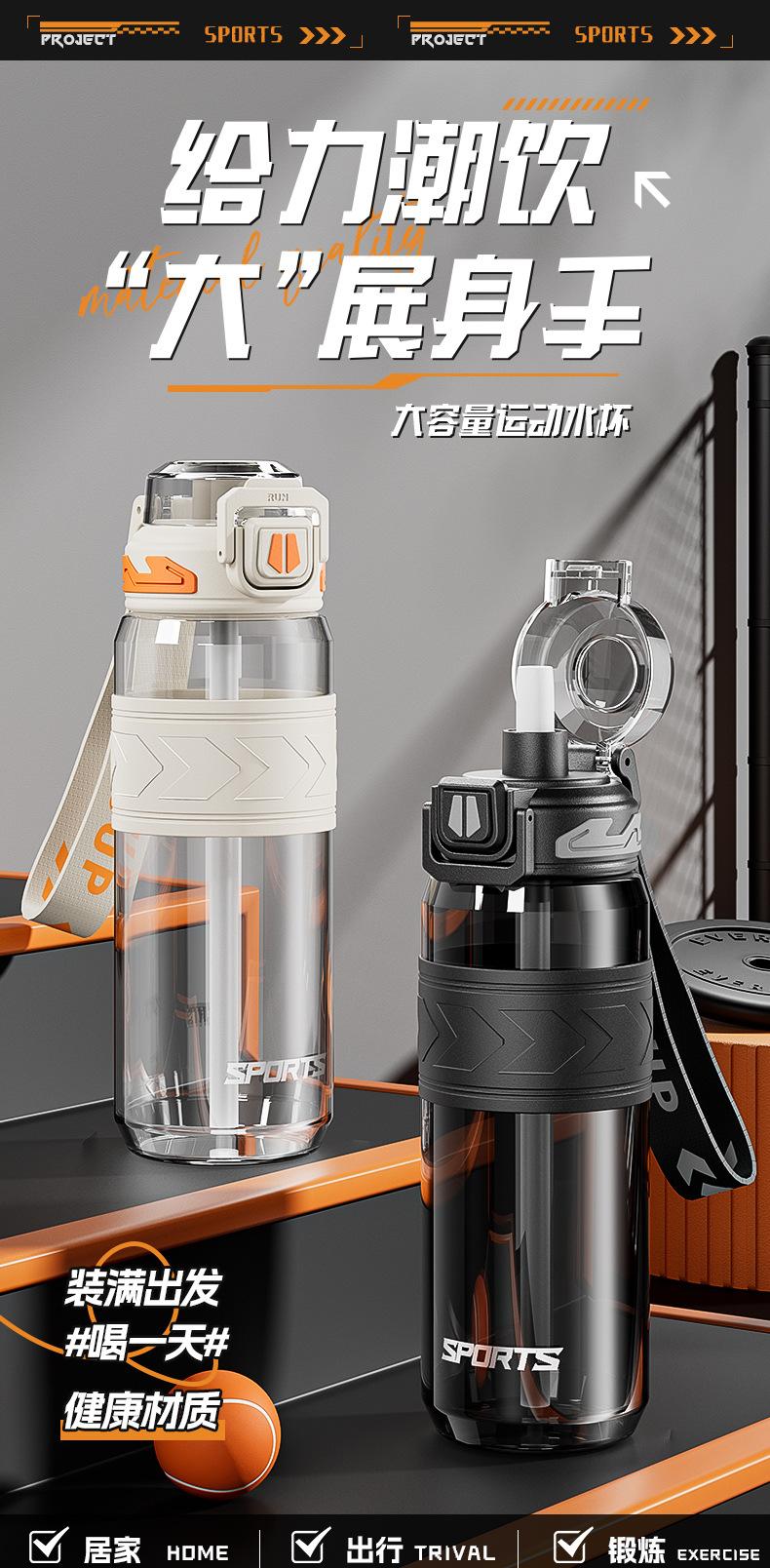 Vaso de Agua Deportivo de Gran Capacidad para Estudiantes Masculinos y Femeninos Escuela Especial Vaso Resistente a Altas Temperaturas con Popote Hervidor Portátil de Verano