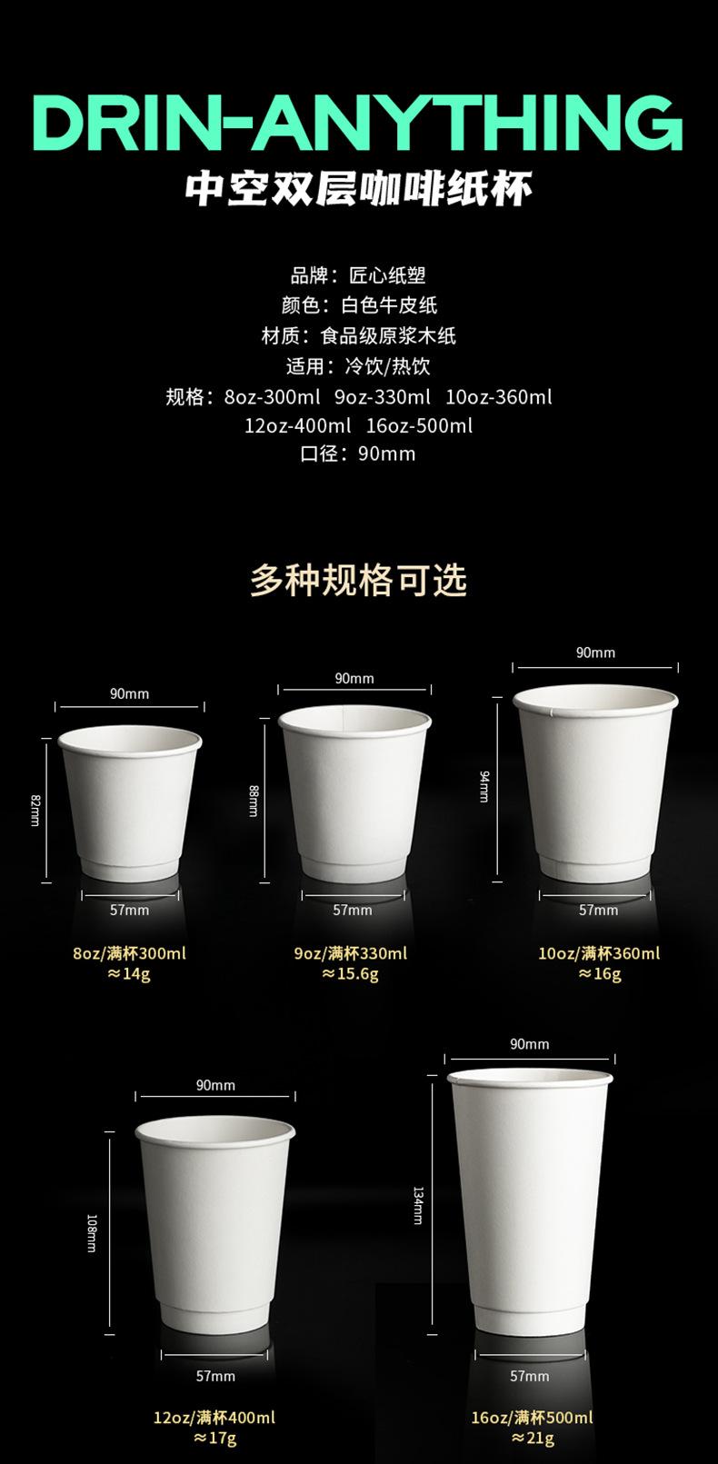 White kraft paper double-layer paper cups 8 ounces (full cup 300ml) 500 pieces, White kraft paper double-layer...
