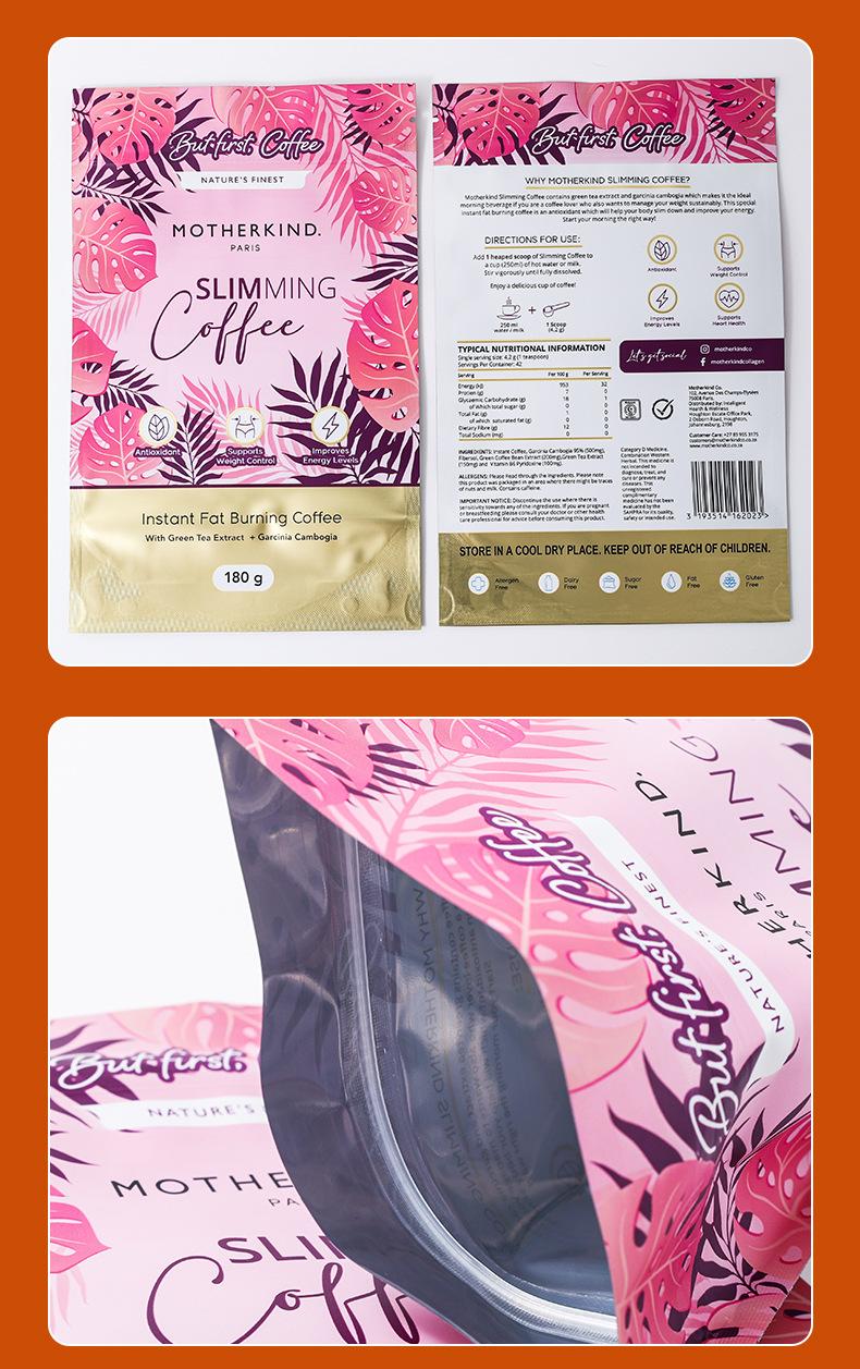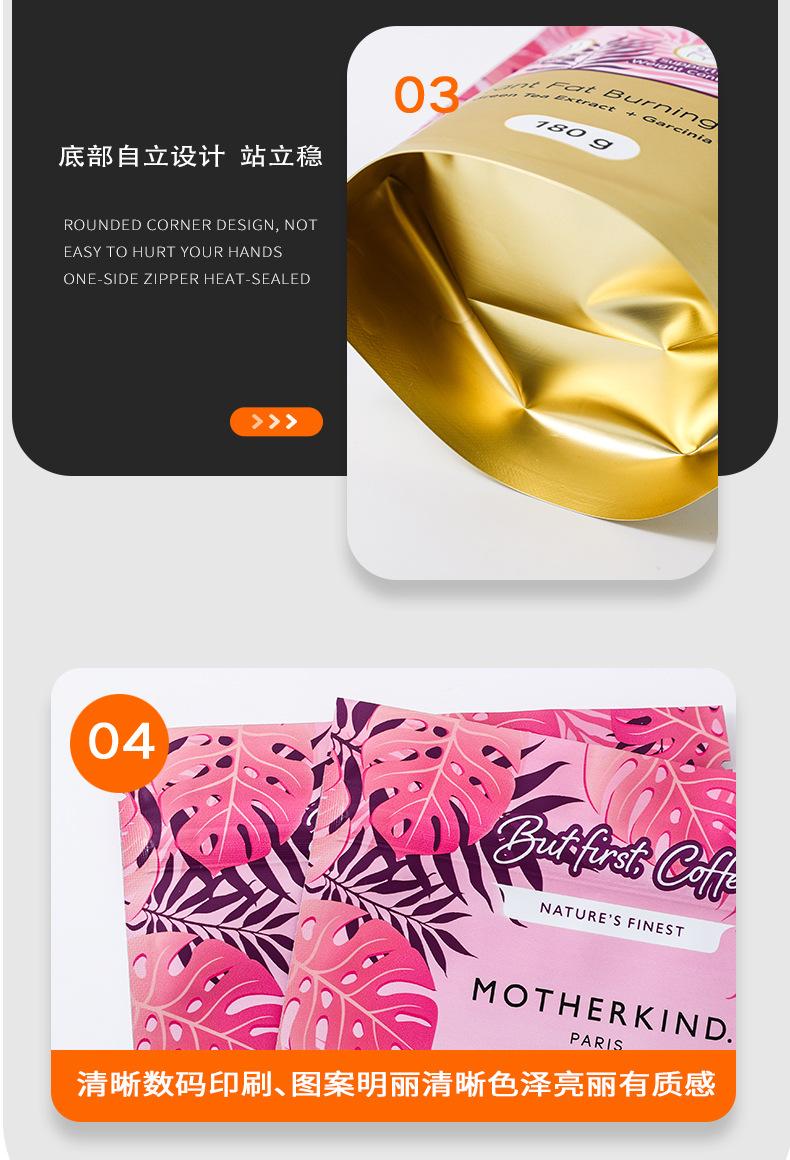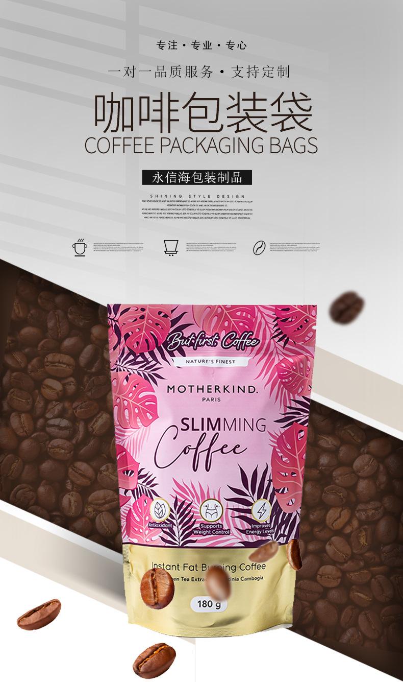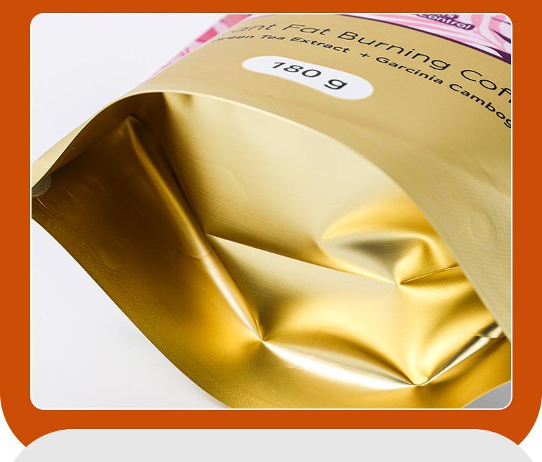 Bolsa de embalaje de alimentos para café autoportante con cremallera película muda bolsa de aluminio compuesto rollo de película granos de café puede estar de pie bolsa sellada