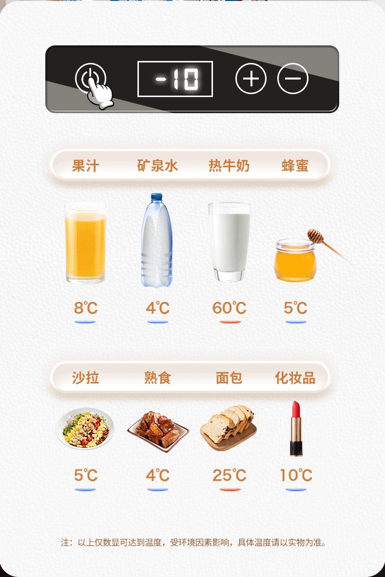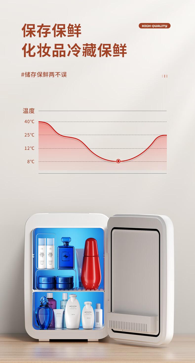 【Refrigerador Semiconductor Ámbito de Aplicación】:Adecuado para el almacenamiento de conservación y mantenimiento del calor de cosméticos, productos para el cuidado de la piel, bebidas, frutas, leche, etc.