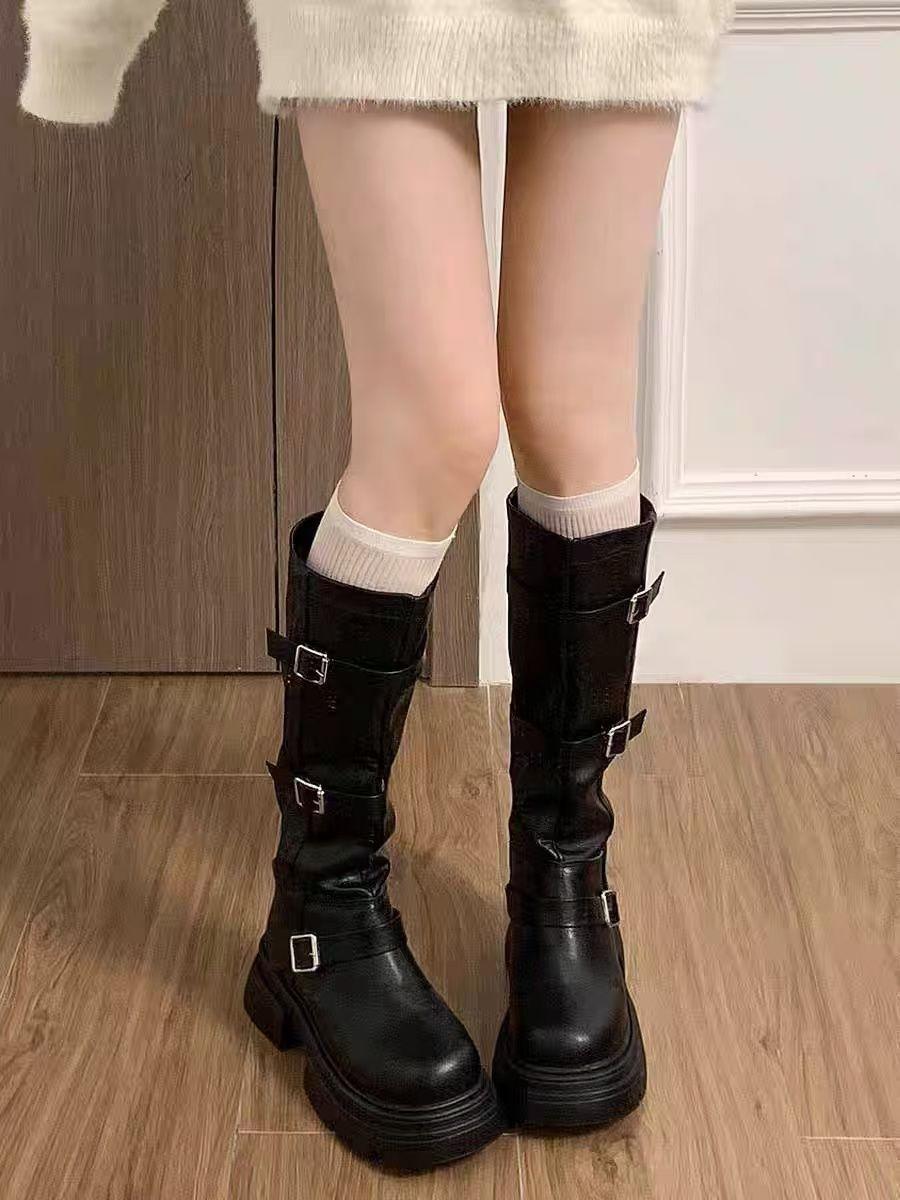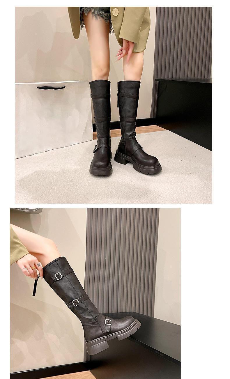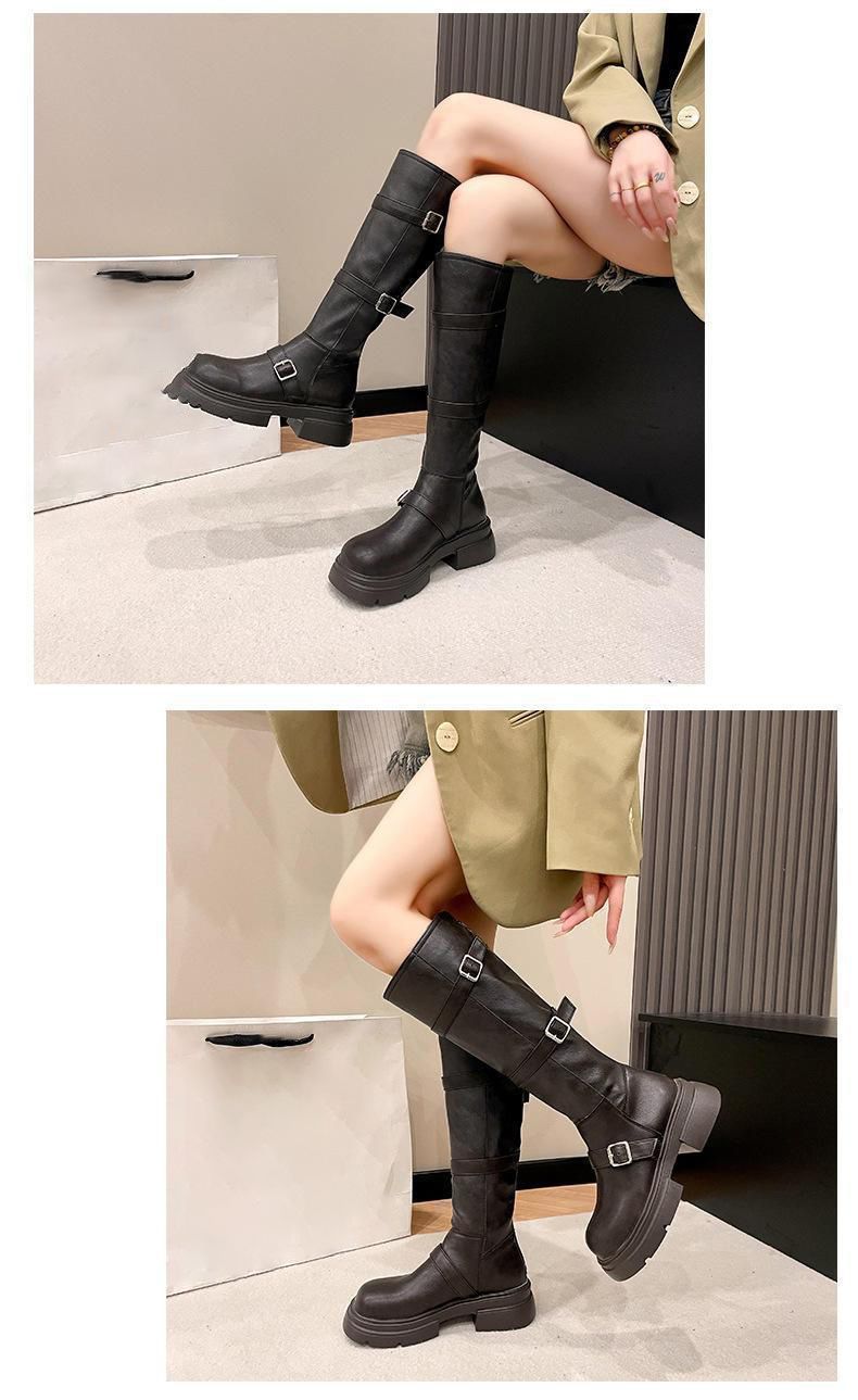 Compra Botas Retro Martin para Mujer Hebilla Adelgazantes Botas Altas por Encima de la Rodilla 2025 Nuevo Estilo a la Moda con Faldas al por mayor en Joom.pro