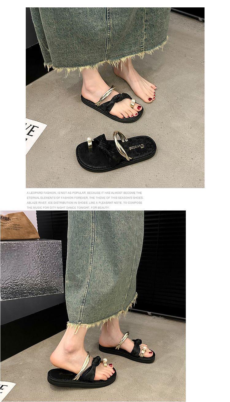 Zapatos de moda antideslizantes versátiles con tira para el dedo 2024 sandalias pantuflas temperamento nocturno brisa de verano pantuflas diarias para uso exterior para combinar con falda