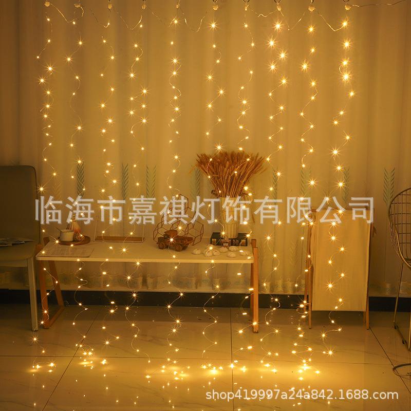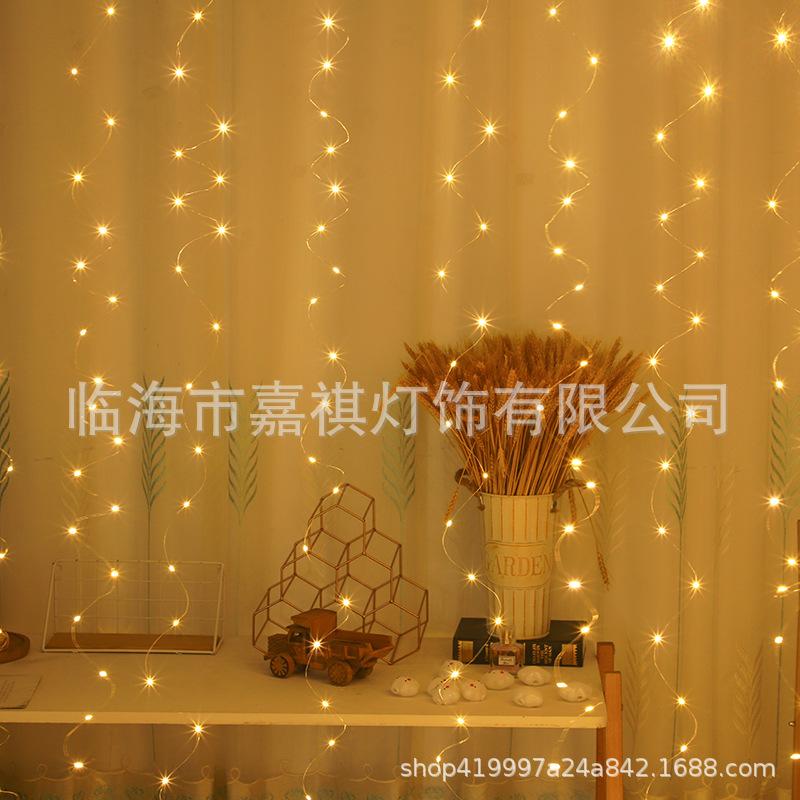 Luces de Cortina de Alambre de Cobre 3*3 USB Transfronterizas con Control Remoto Luces de Alambre de Cobre Navideñas Ambiente de Habitación Luces Decorativas Festivas Venta al por Mayor