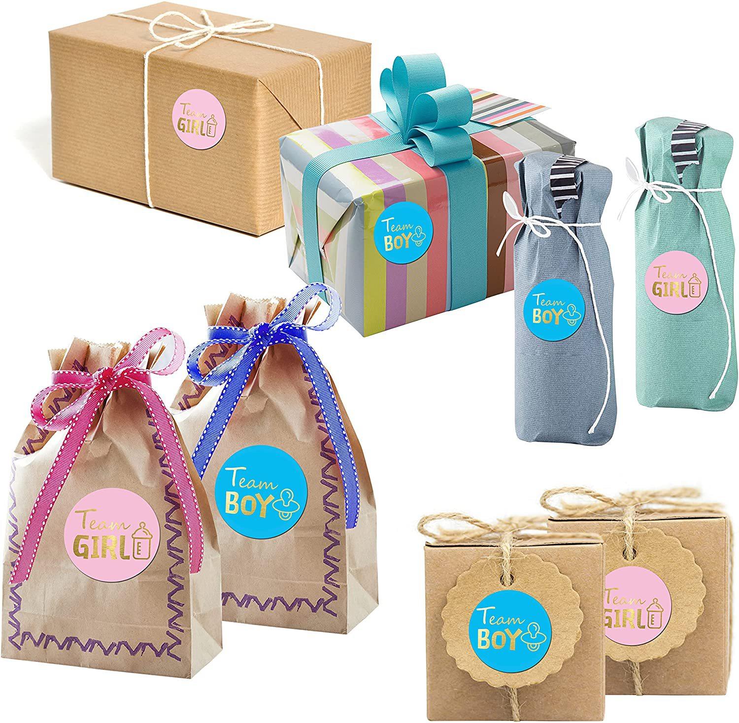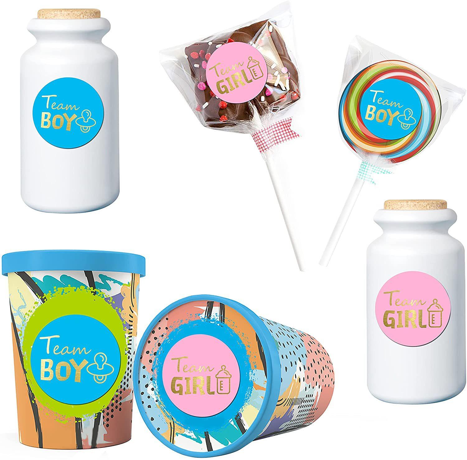 Stickers Redondos para Fiesta de Revelación de Género Equipo Niño y Equipo Niña Etiquetas para Juego Estampadas en Caliente Stickers para Bolsa de Dulces o Galletas