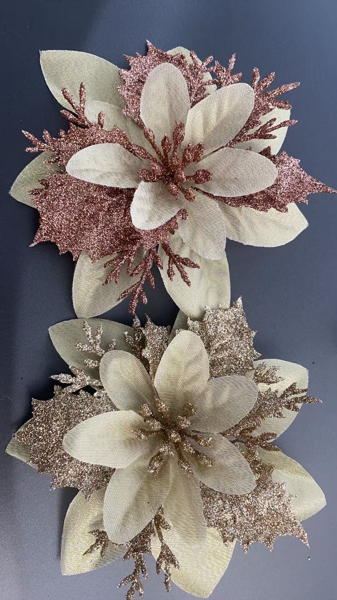 Accesorios Populares Transfronterizos de Flores Navideñas Decoraciones Decoración Navideña Árbol de Navidad Flores Artificiales Polvo Dorado Flores de Plástico