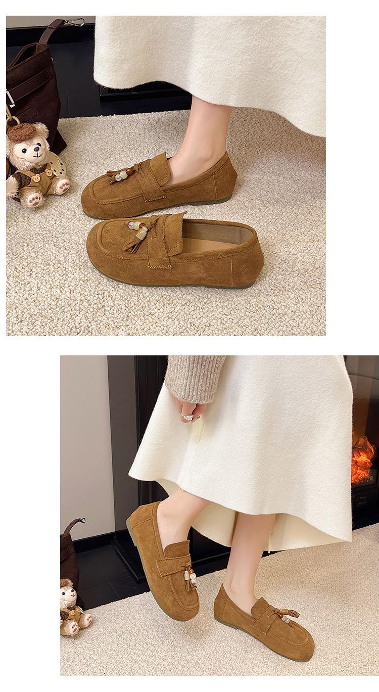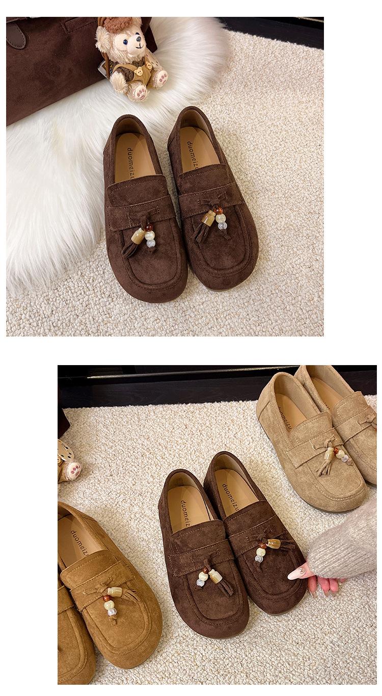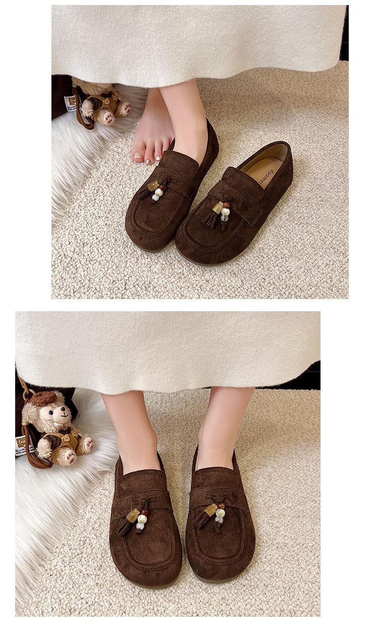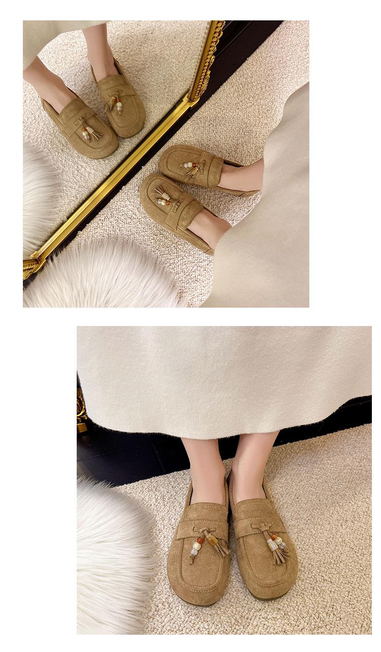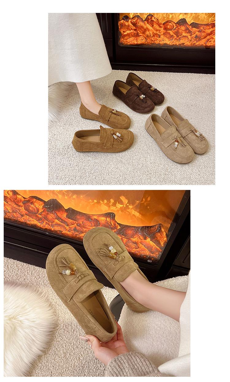 Retro Birkenstock Mujer 2025 Otoño Nuevo Borla Cuentas Plataforma Plana Slip-on Versátiles Mocasines Mujer