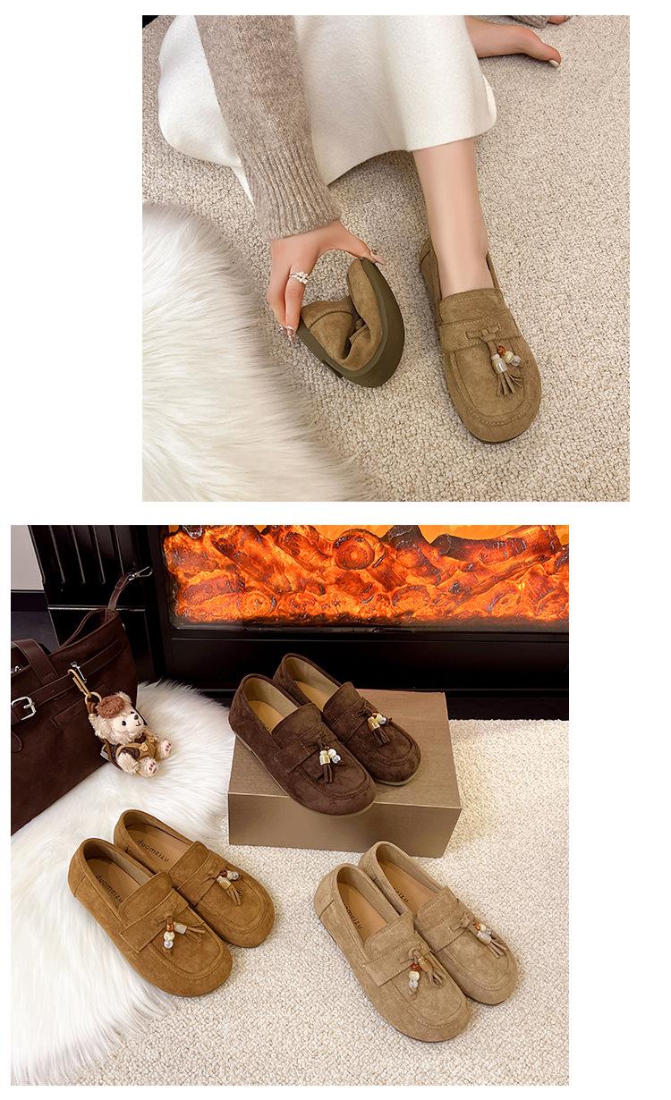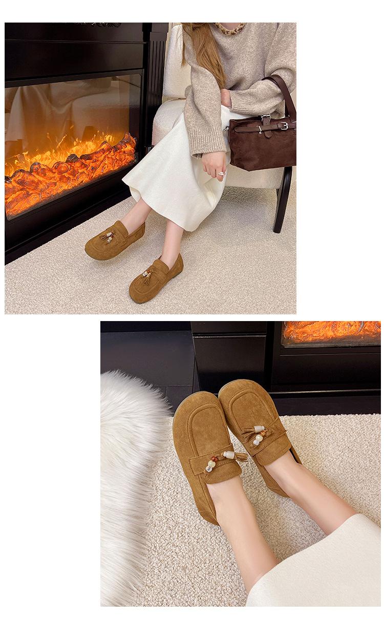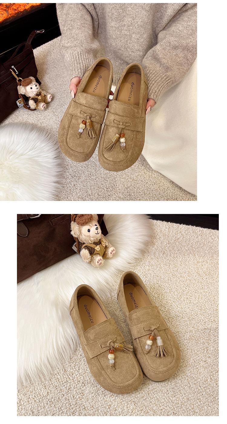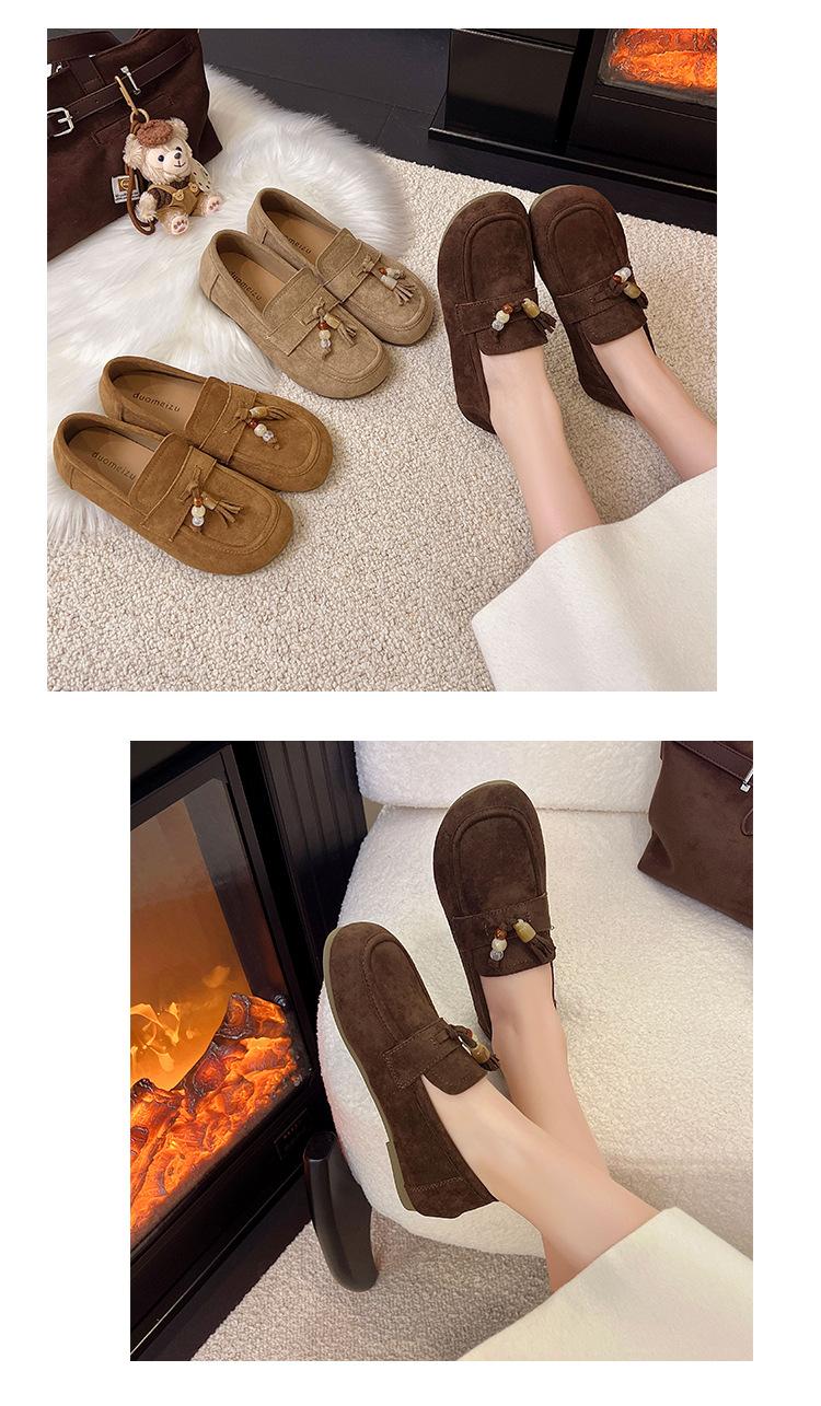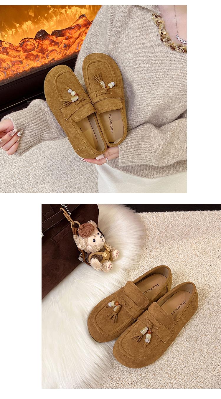 Retro Birkenstock Mujer 2025 Otoño Nuevo Borla Cuentas Plataforma Plana Slip-on Versátiles Mocasines Mujer