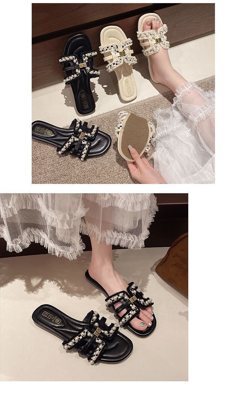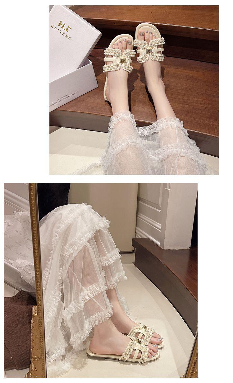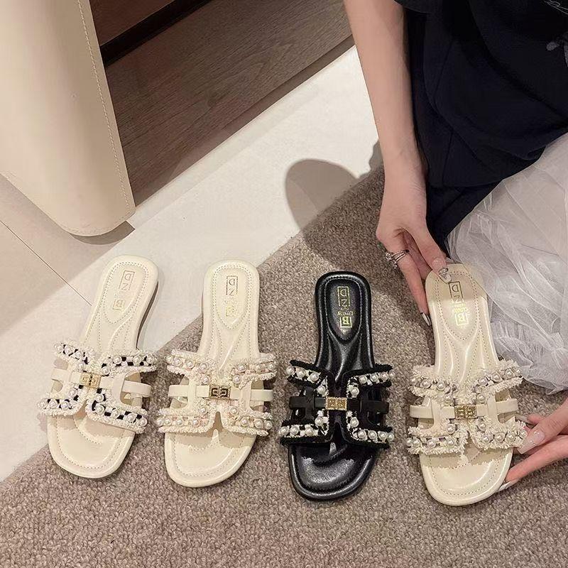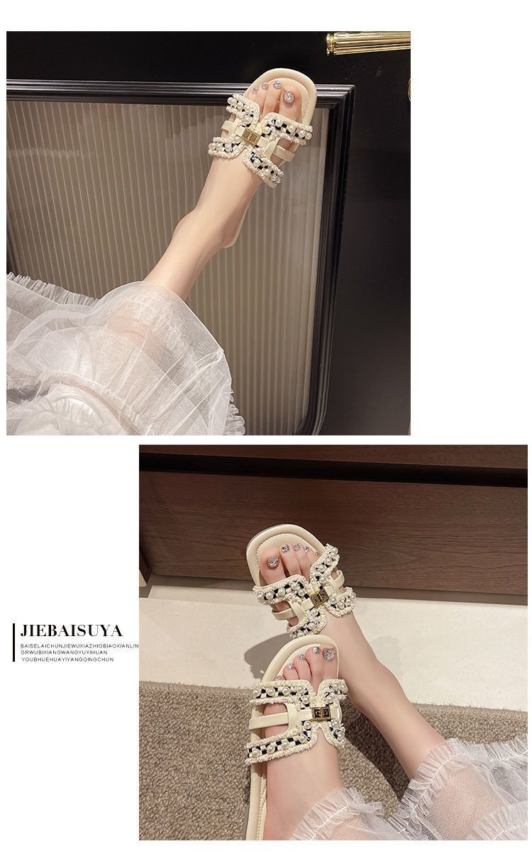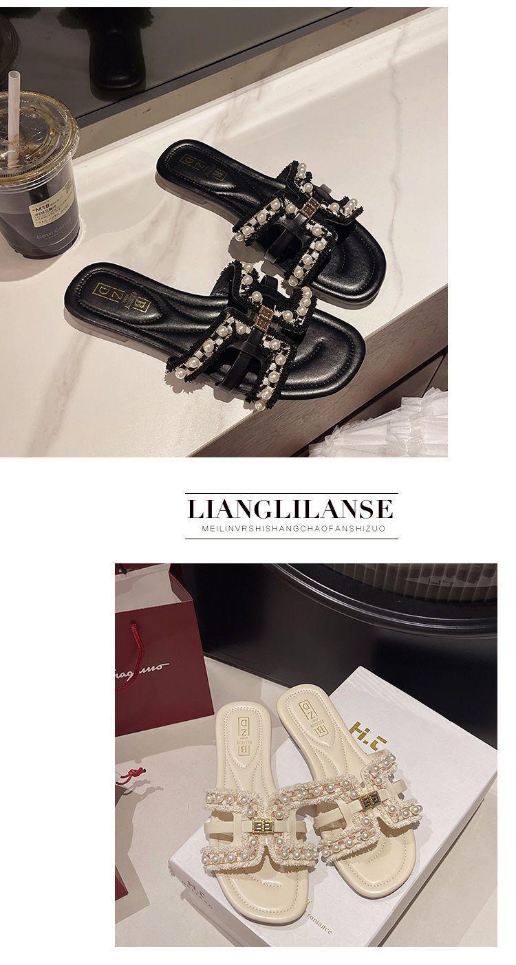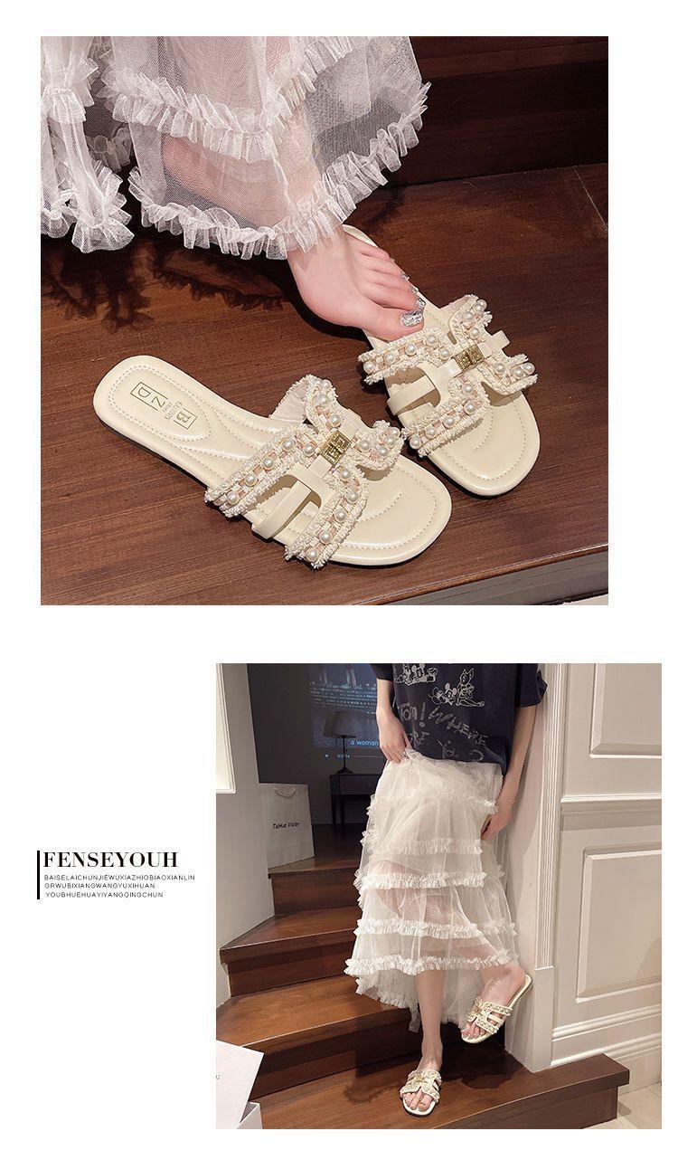 Perla Estilo Chanel Verano para Mujer Exterior 2025 Nuevo Plano Hada Playa Exterior Diapositivas de Una Tira