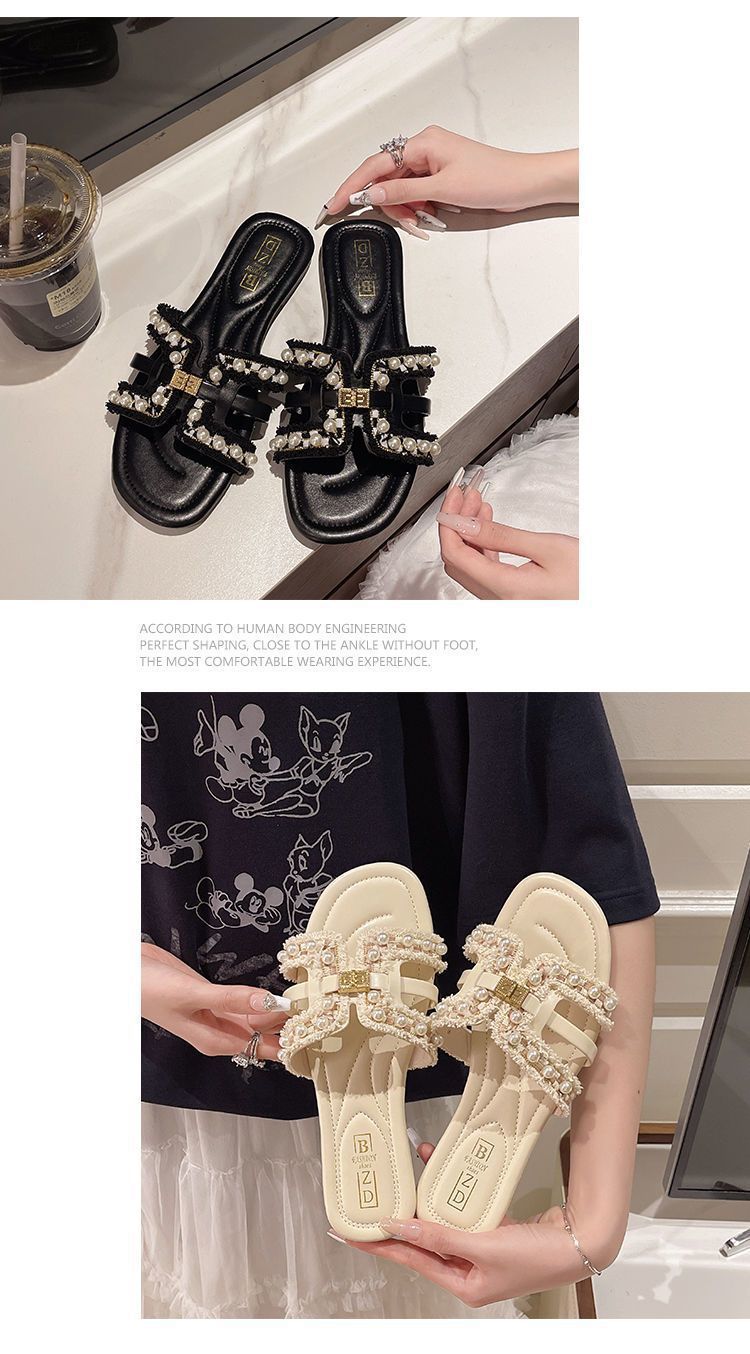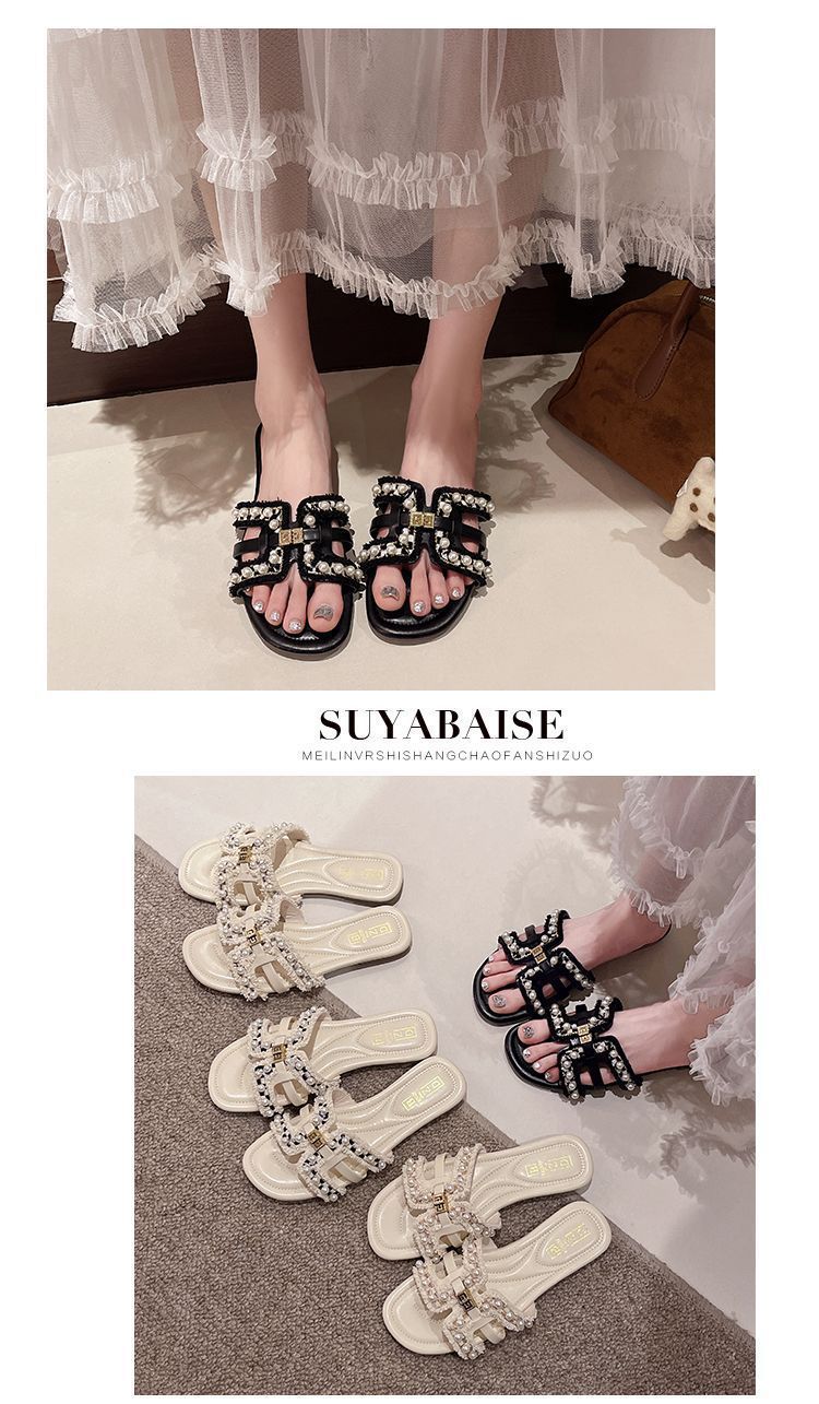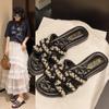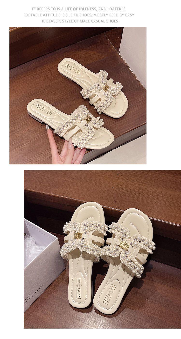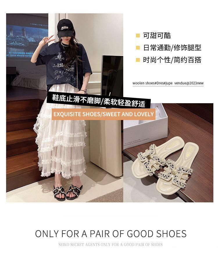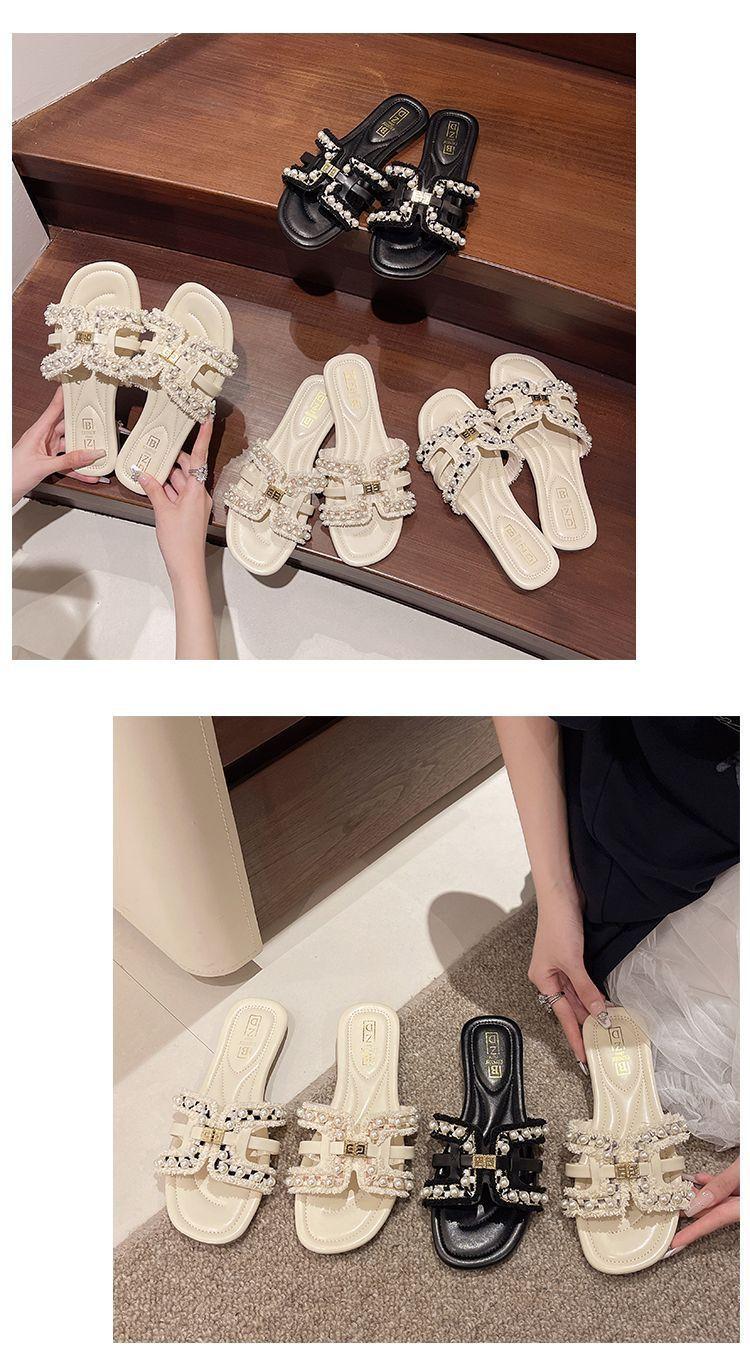 Perla Estilo Chanel Verano para Mujer Exterior 2025 Nuevo Plano Hada Playa Exterior Diapositivas de Una Tira