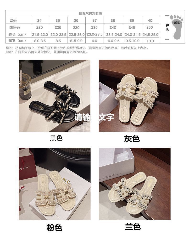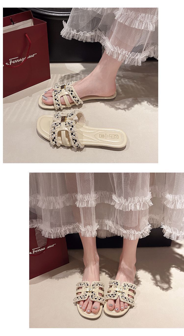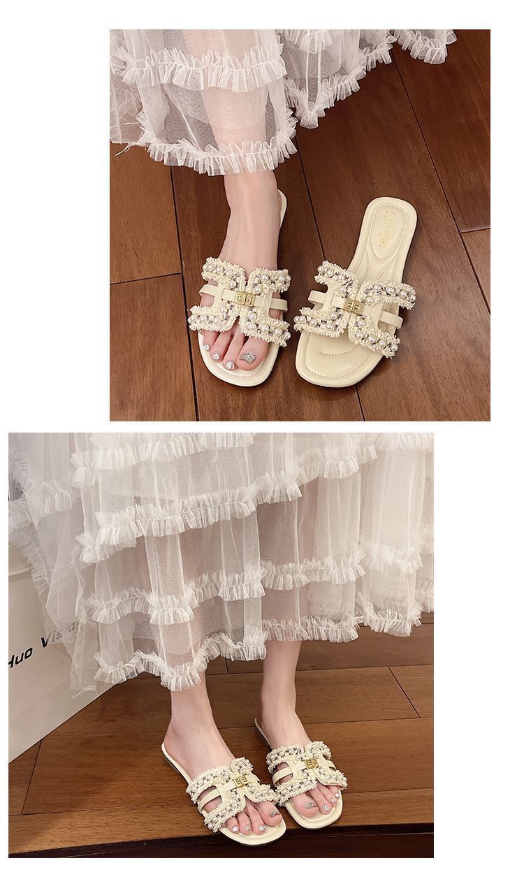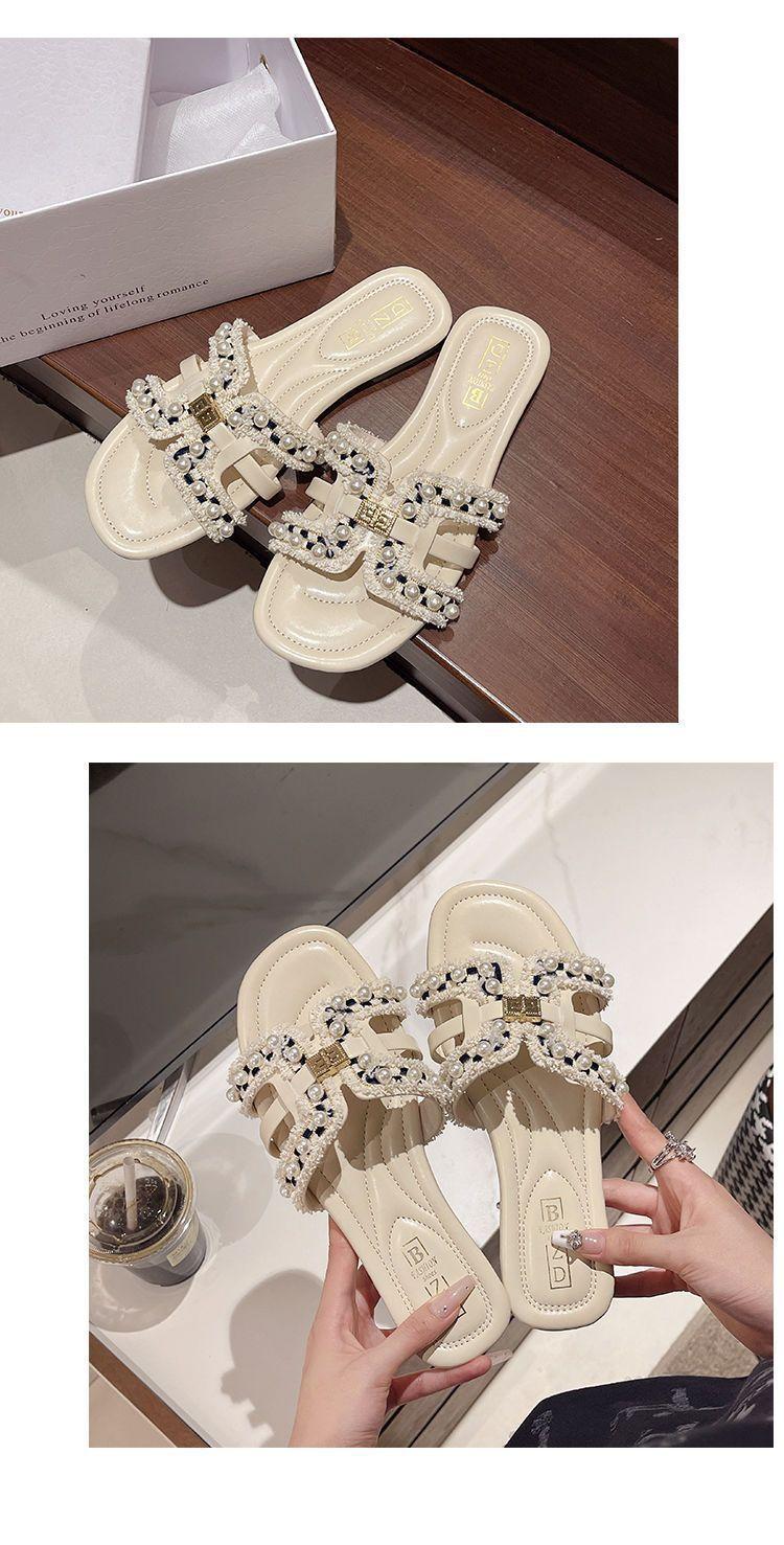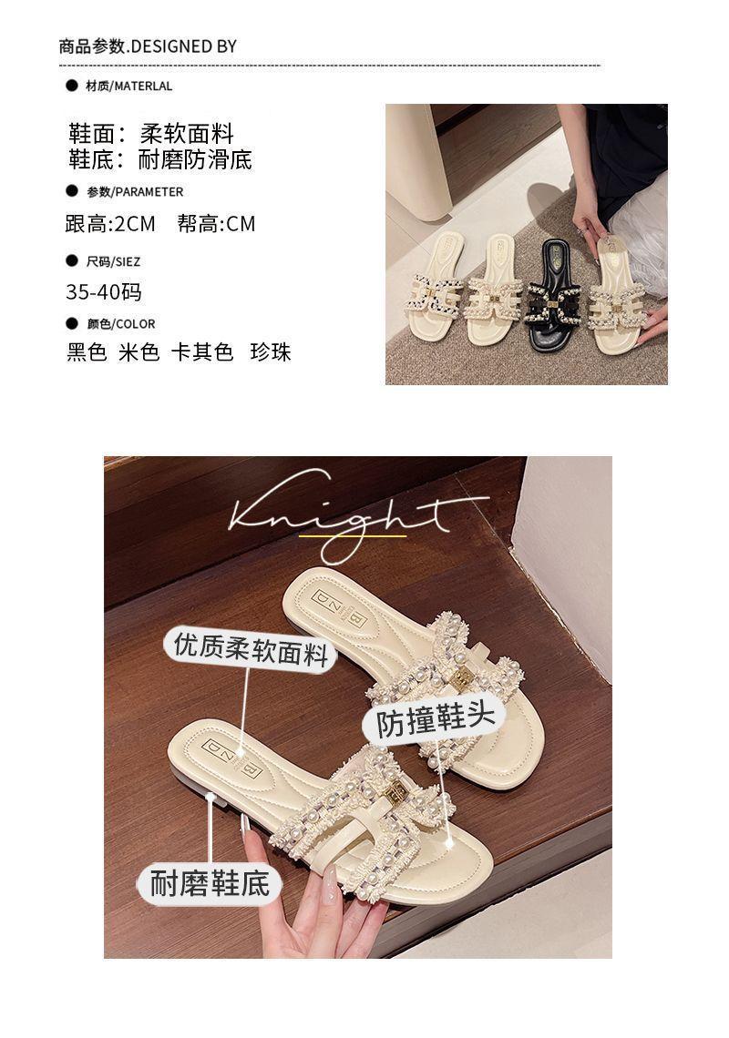 Perla Estilo Chanel Verano para Mujer Exterior 2025 Nuevo Plano Hada Playa Exterior Diapositivas de Una Tira