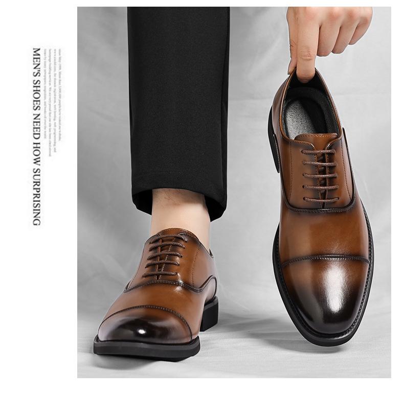 Dropshipping transfronterizo 2025 nuevos zapatos de cuero para hombre de tres piezas zapatos Derby de vestir de negocios cuero genuino punta afilada casual zapatos de boda para hombre