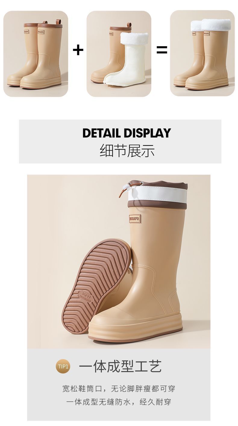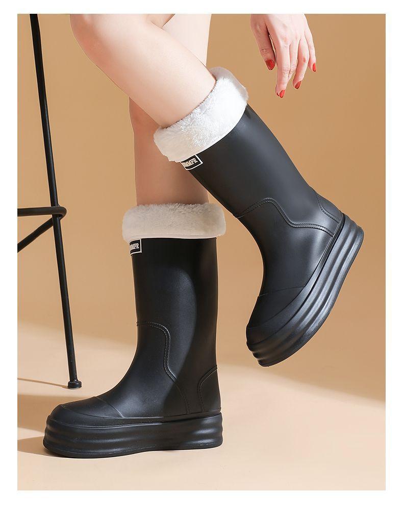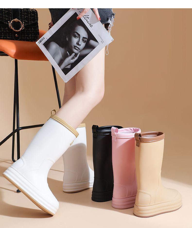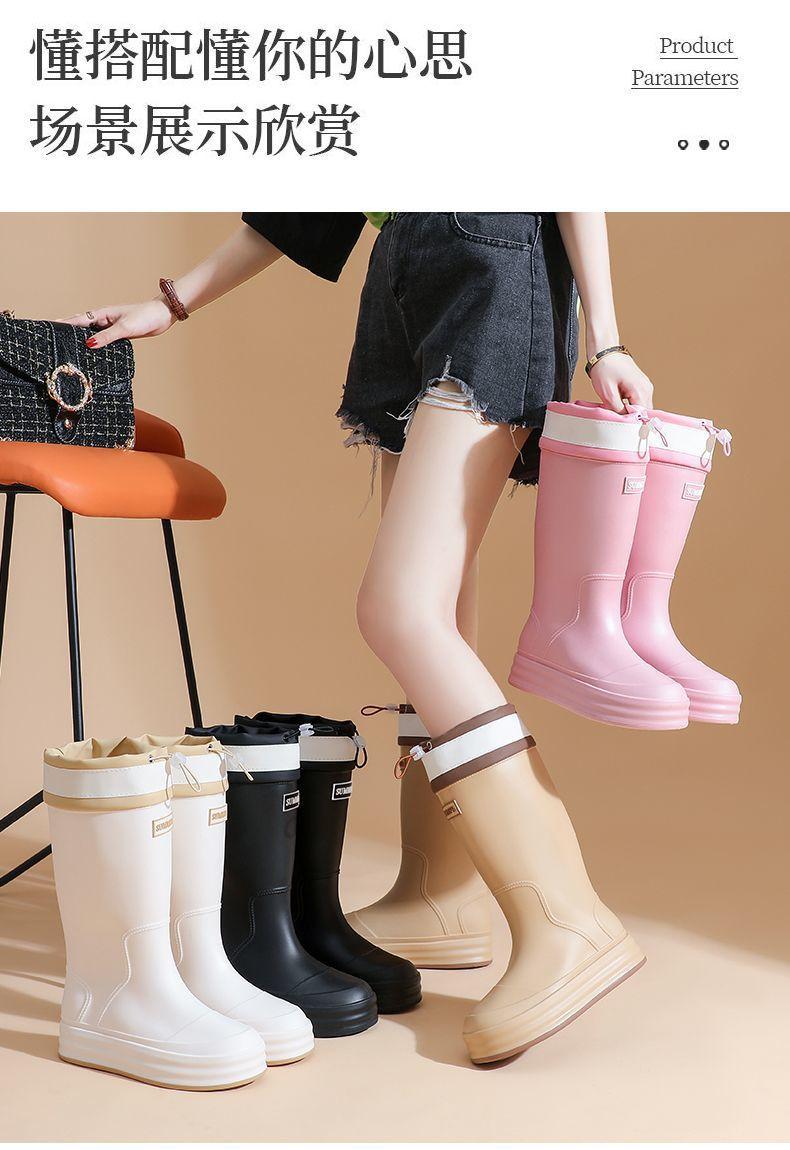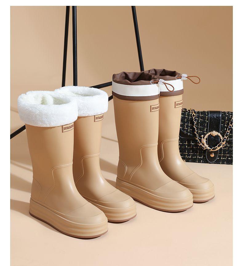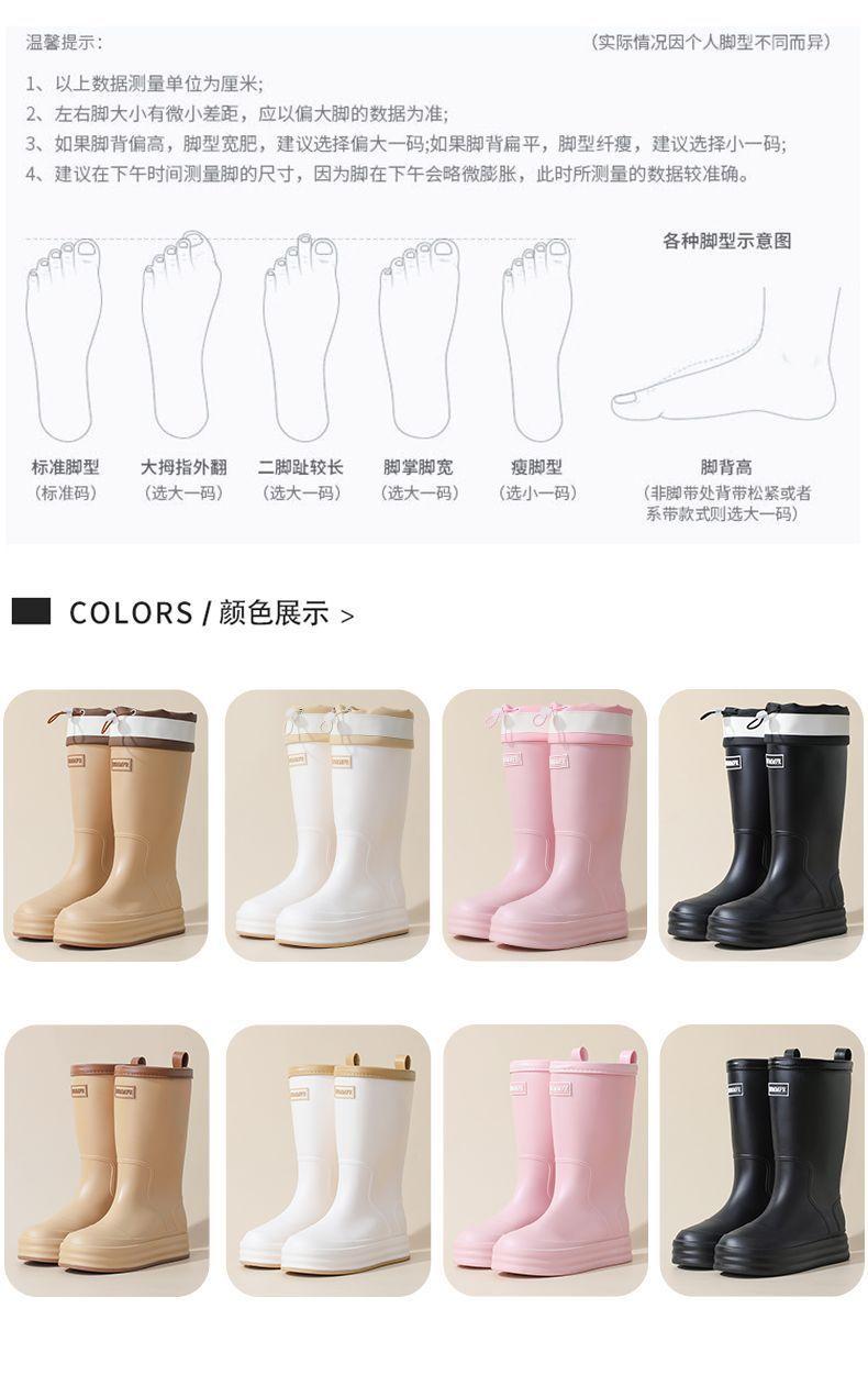 2025 Nuevo Estilo Botas de Lluvia Moda Cordón Tubo Alto Adulto Ropa Exterior Zapatos de Goma Impermeables Botas de Lluvia Cálidas Zapatos de Agua para Estudiantes al Aire Libre