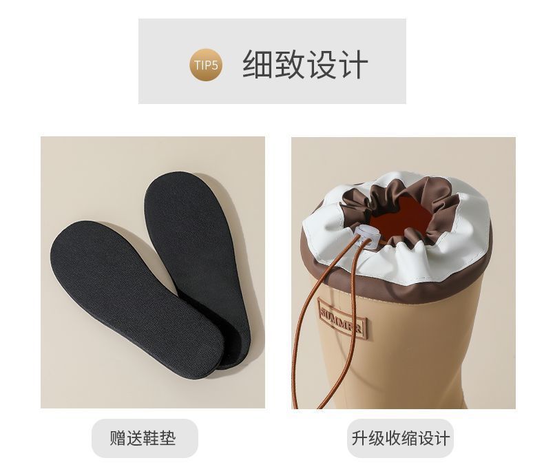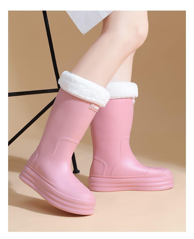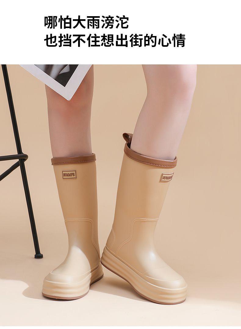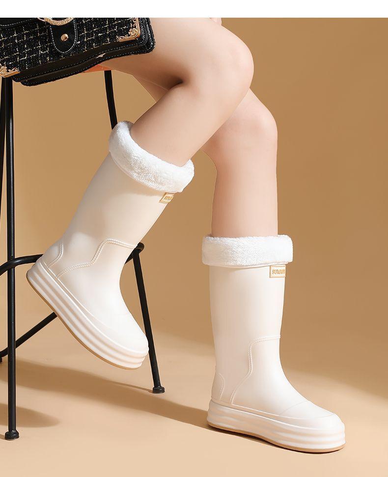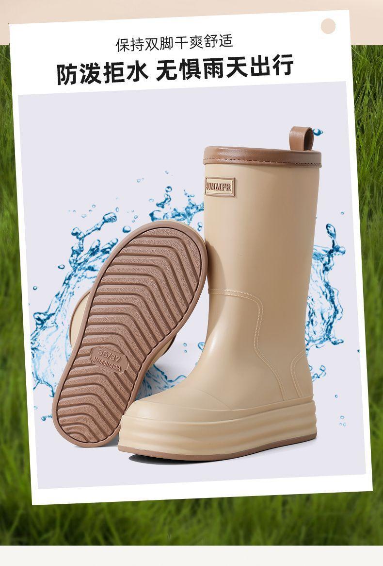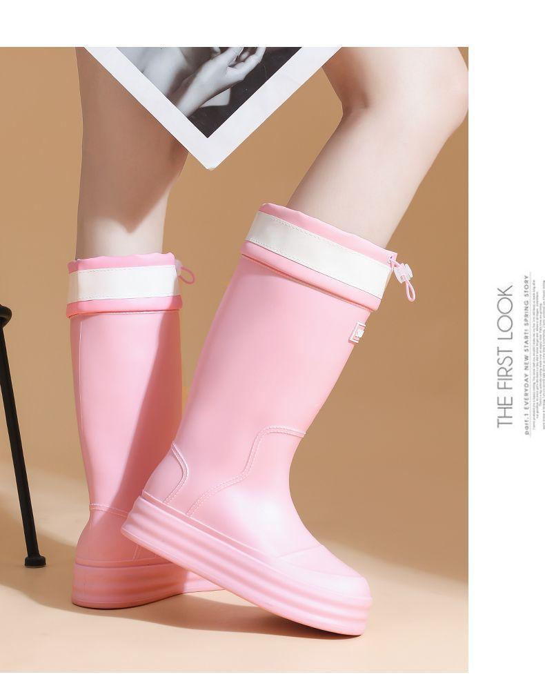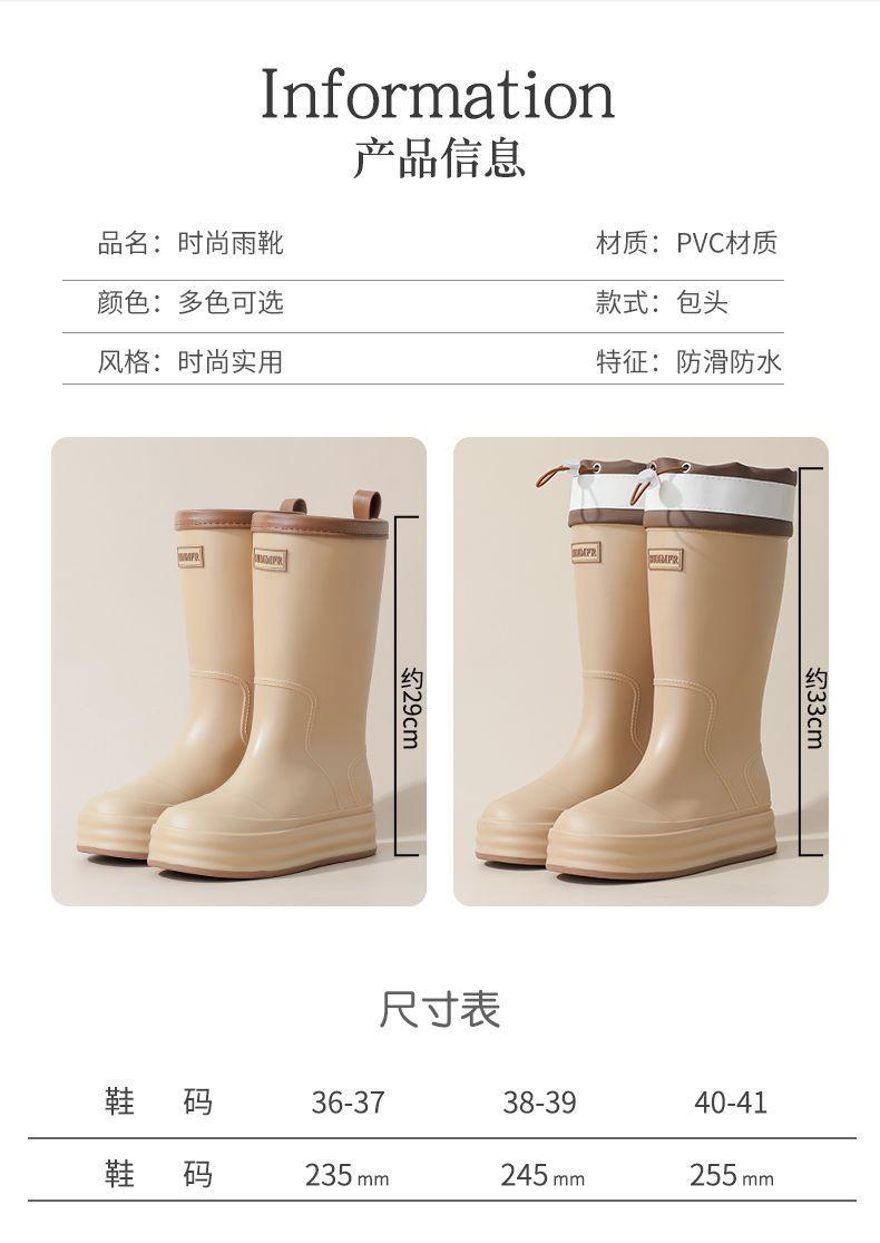 2025 Nuevo Estilo Botas de Lluvia Moda Cordón Tubo Alto Adulto Ropa Exterior Zapatos de Goma Impermeables Botas de Lluvia Cálidas Zapatos de Agua para Estudiantes al Aire Libre