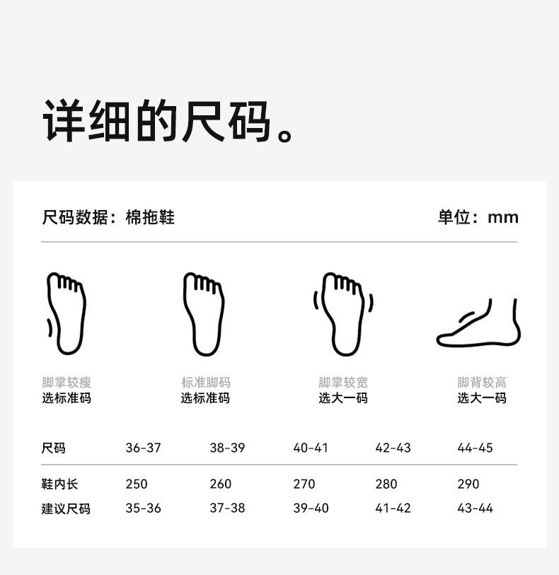 36-37 (suitable for 35-36 feet), 38-39 (suitable for 37-38 feet), 40-41 (suitable for 39-40 feet), 42-43 (suit...