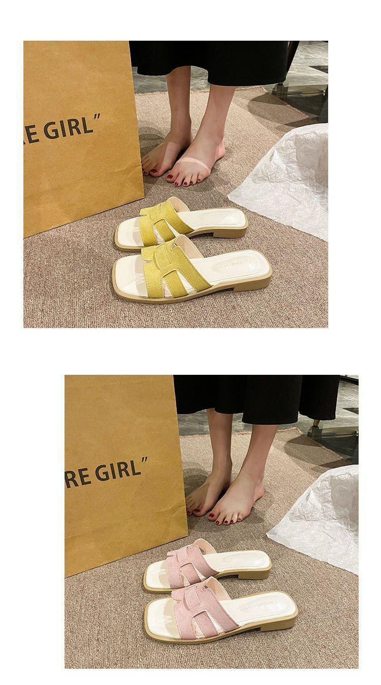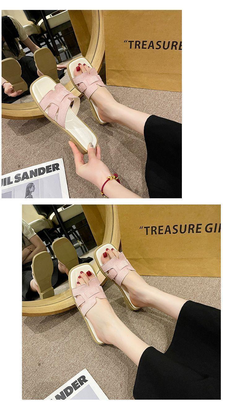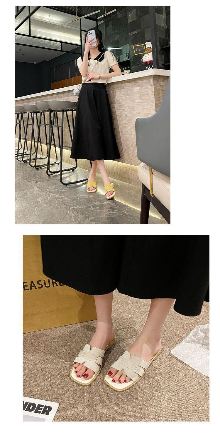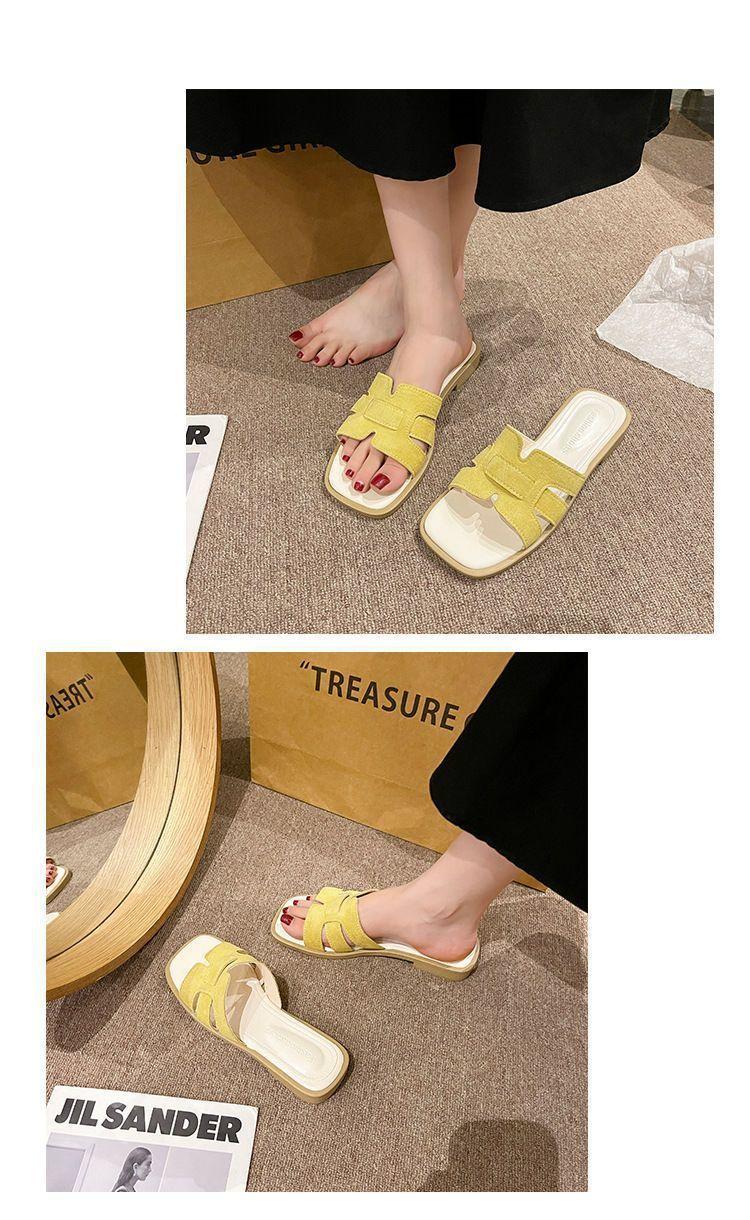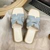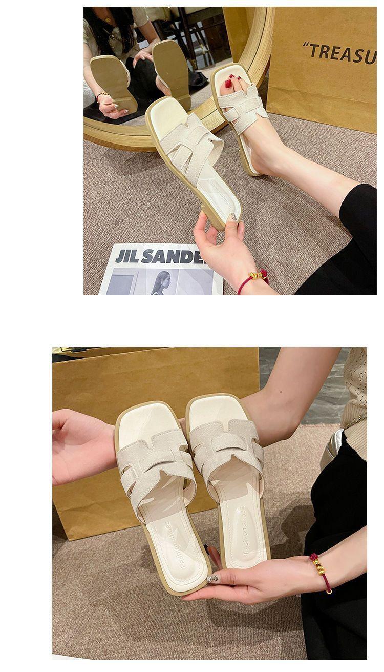 Verano 2025 Nuevo Calzado Francés para Exterior Sandalias de Estilo Vacacional de Playa de Suela Plana Pantuflas Suaves Versátiles Antideslizantes