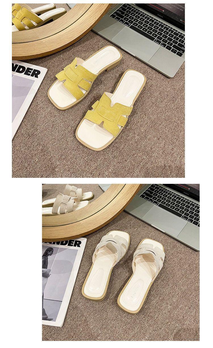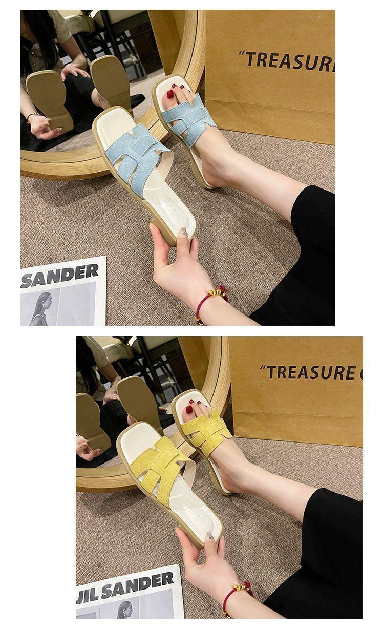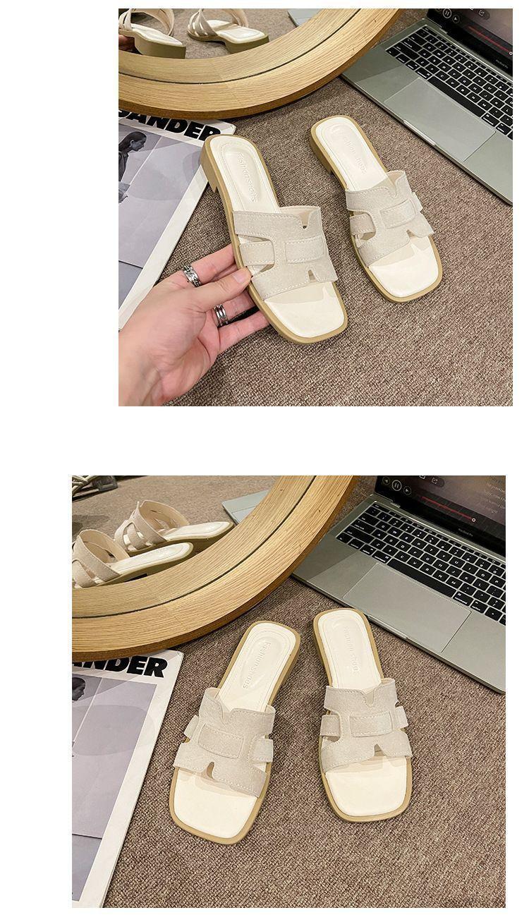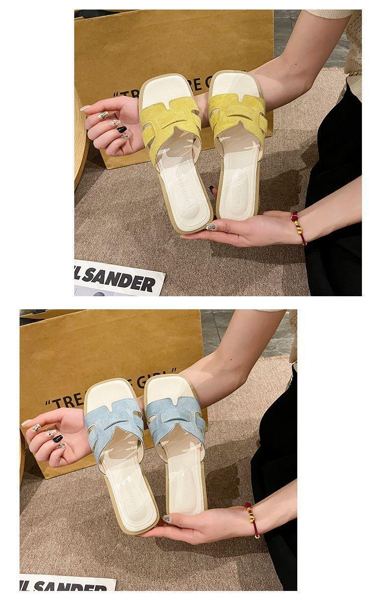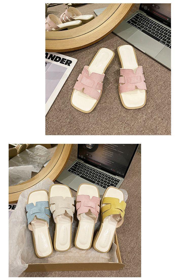 Verano 2025 Nuevo Calzado Francés para Exterior Sandalias de Estilo Vacacional de Playa de Suela Plana Pantuflas Suaves Versátiles Antideslizantes