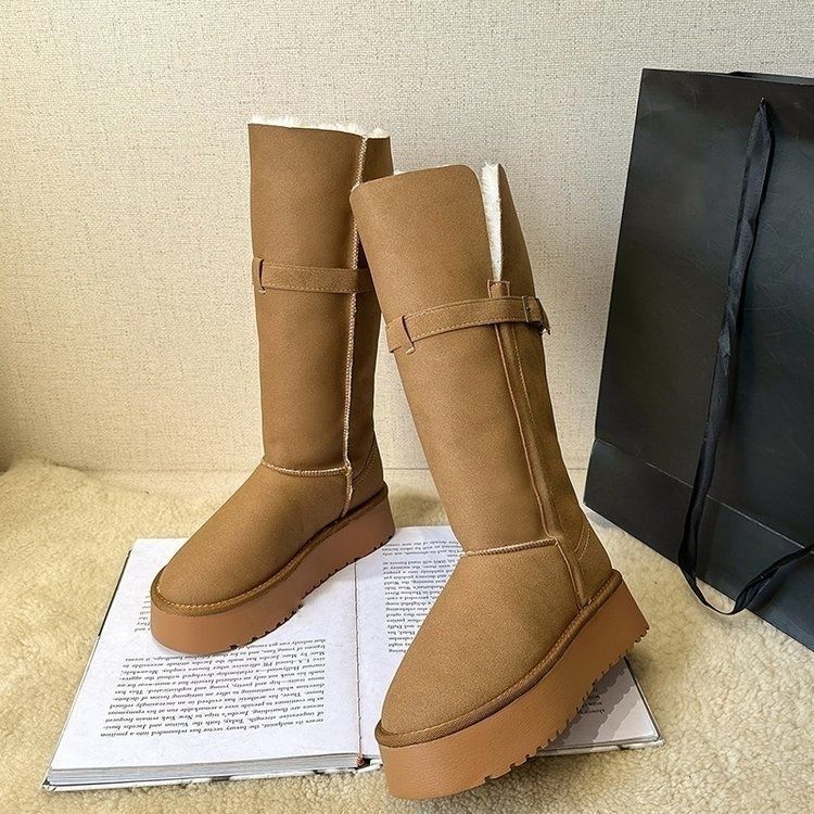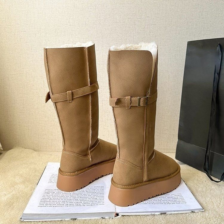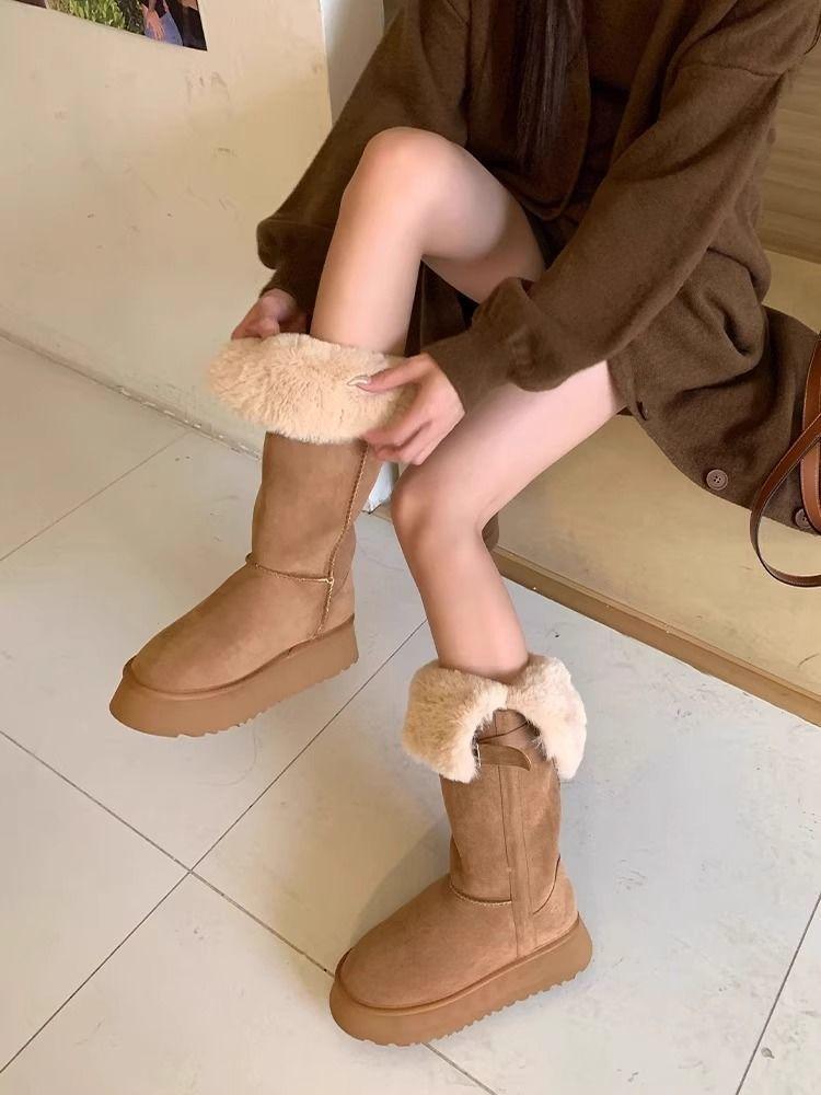 Botas de nieve cálidas versátiles de moda con forro polar y engrosadas para mujer 2025 nuevo invierno de tubo largo con suela gruesa para mujer botas de media caña