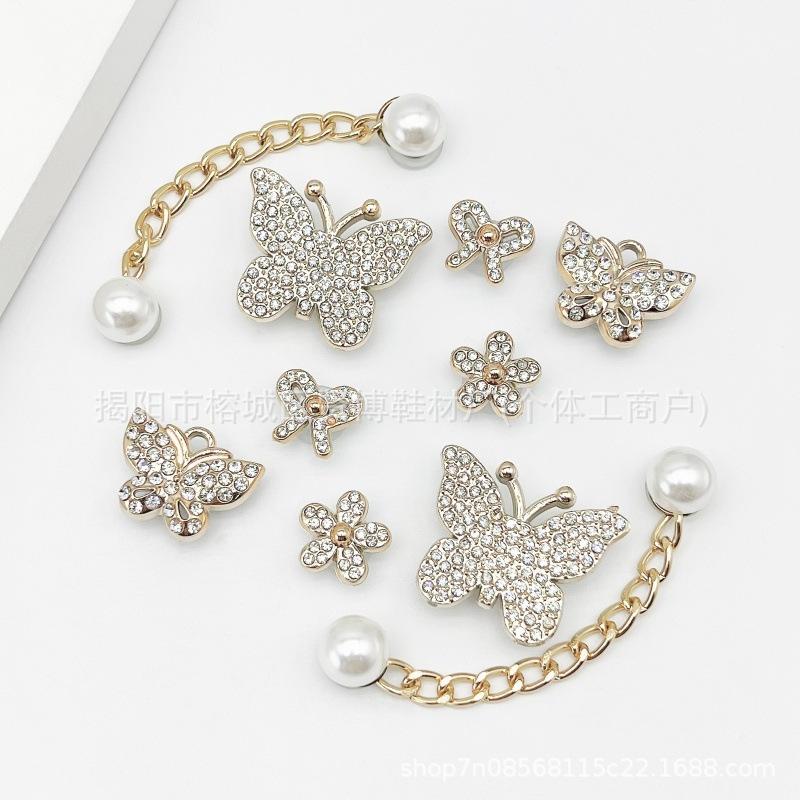Nuevos Zapatos Croc Hebilla de Zapato Diamante Mariposa Accesorios Estilo Coreano Joyería DIY Accesorios para Zapatos Pantuflas de Verano Hebilla de Zapato