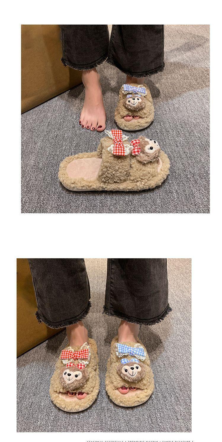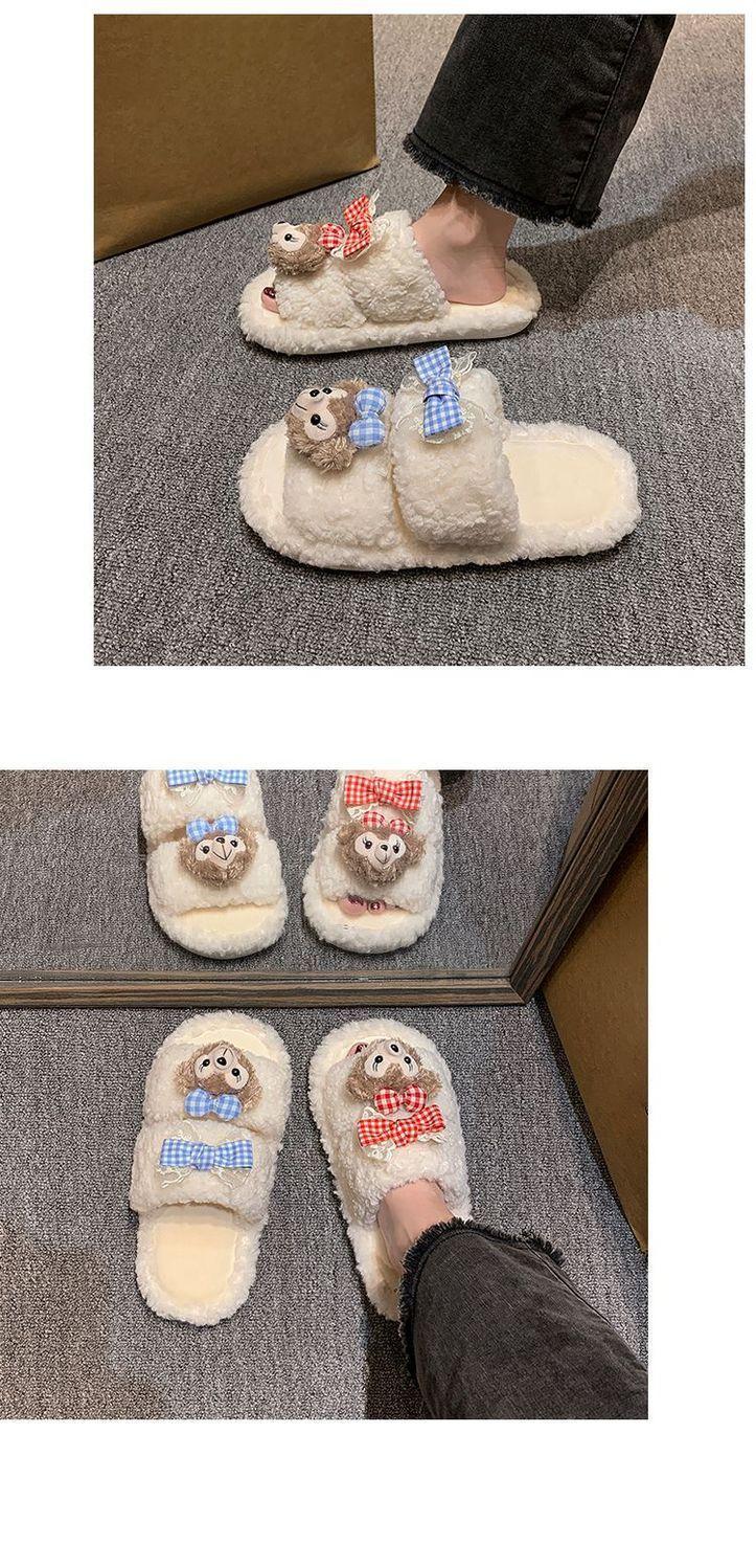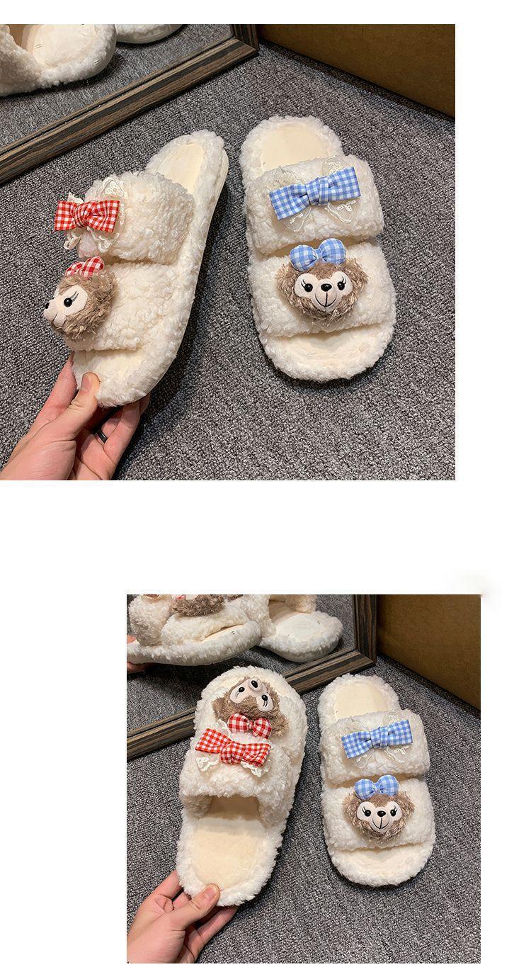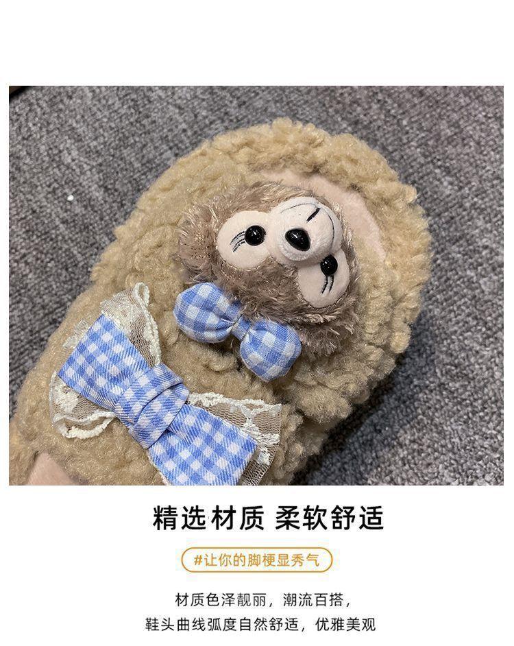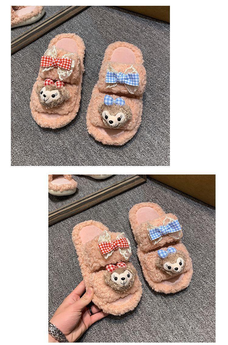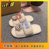 Zapatillas de Moda Versátiles Cómodas Cálidas Peludas 2025 Otoño/Invierno Nuevas de Dibujos Animados Lindas de Algodón con Una Tira para Mujer