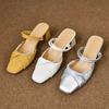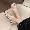 Falda a juego sandalias plateadas de dedo con tira fina para mujer 2025 primavera nuevo estilo de hada punta cuadrada planas sandalias para mujer