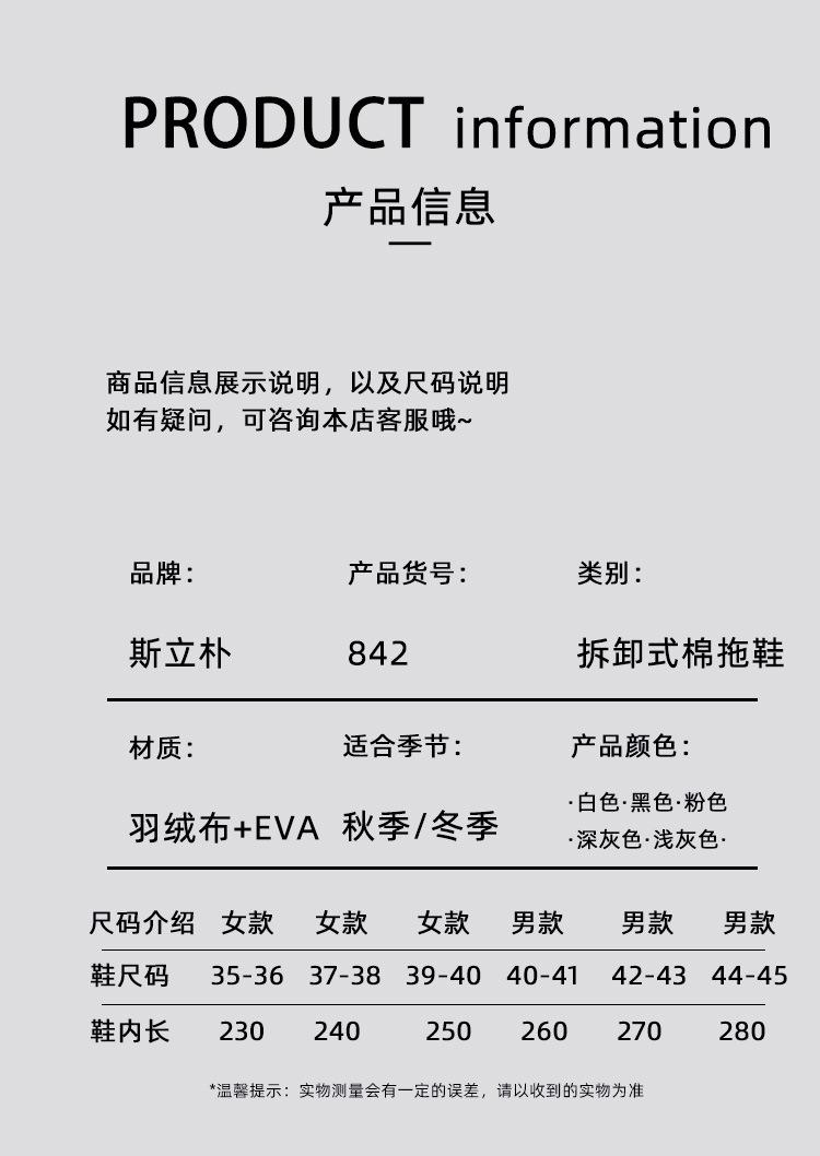Pantuflas de Algodón Desmontables para Mujer Invierno Nuevo Hogar Interior Antideslizantes Cálidas Pantuflas de Suela Gruesa Impermeables Pantuflas de Algodón con Punta Cerrada para Hombre