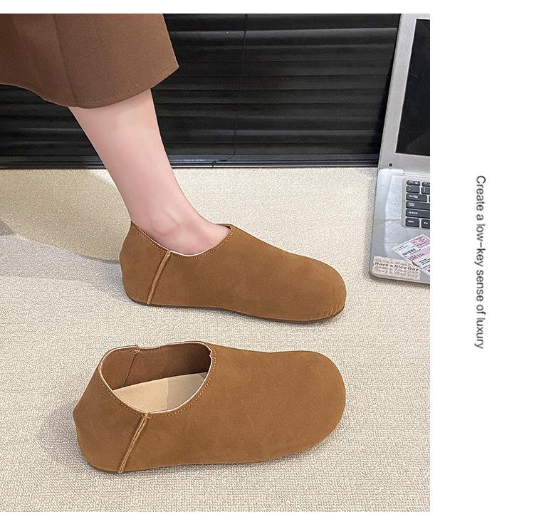 Birkenstock de Gamuza Retro Coreano para Mujer 2025 Otoño/Invierno Nuevos Mocasines Planos Bicolor de Metedera Perezosa