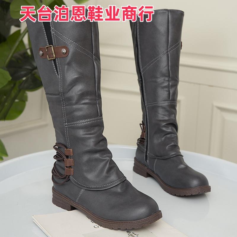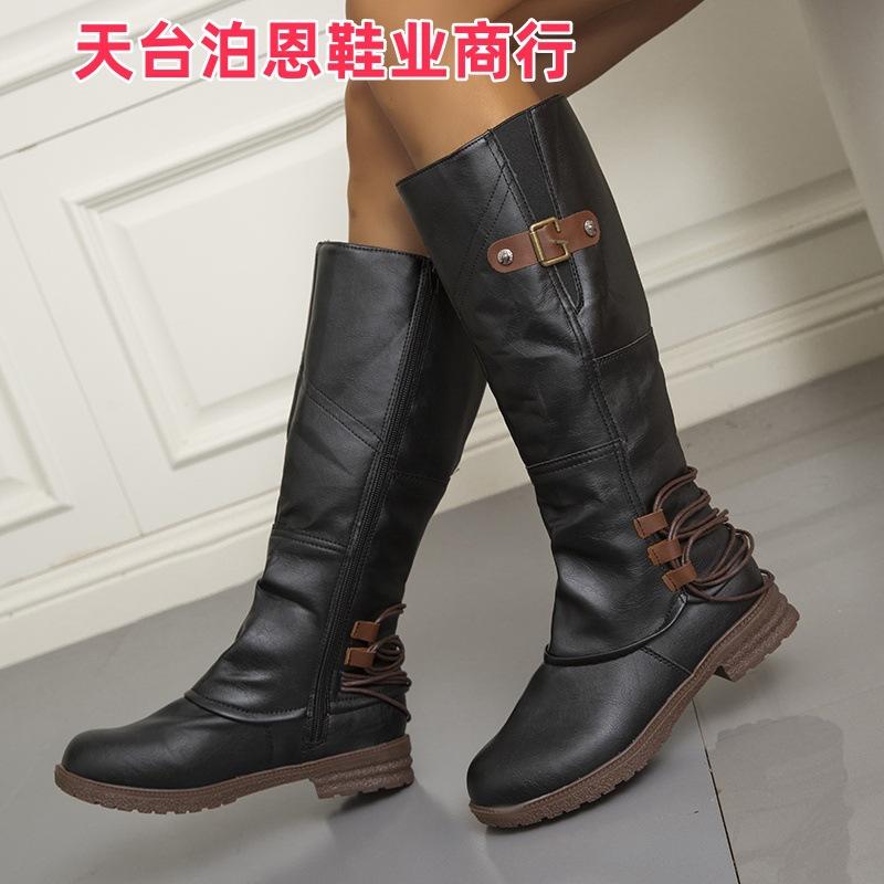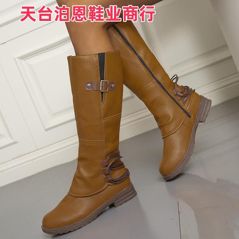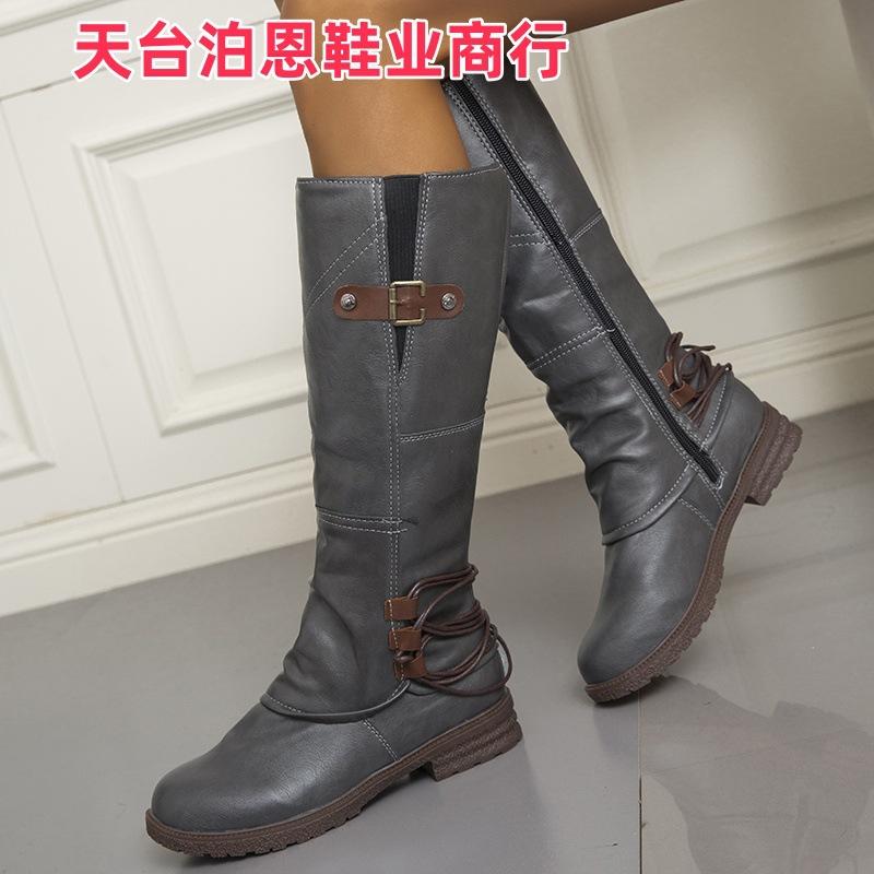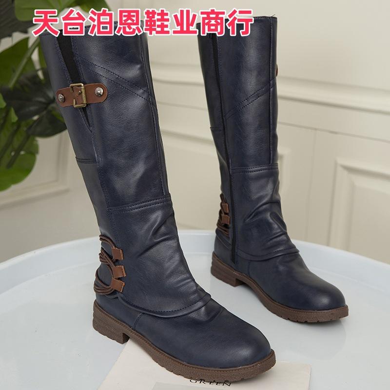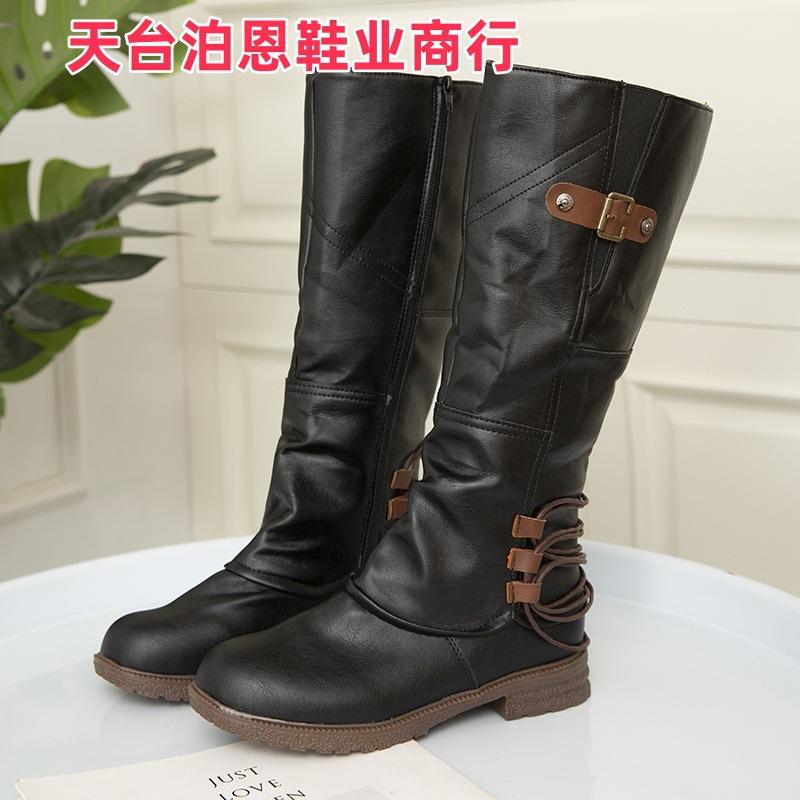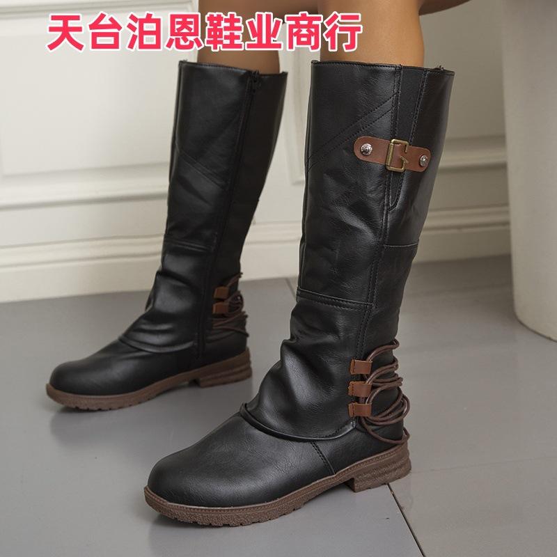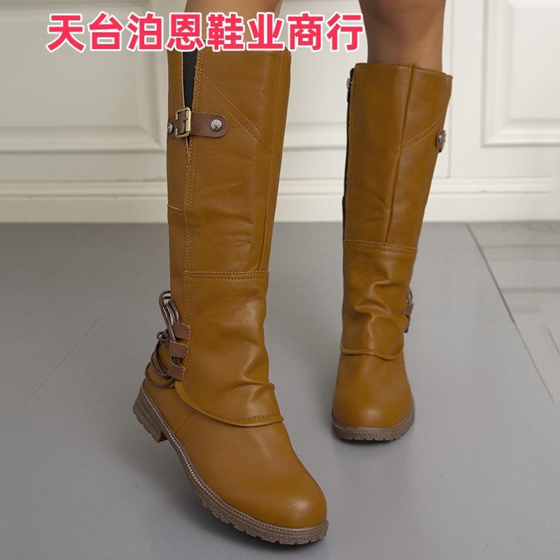 Dropshipping de Comercio Exterior Transfronterizo Europa y América Punto Venta al por Mayor Punta Redonda Cremallera Lateral Tacón Cuadrado Botas de Mujer Otoño e Invierno Nuevas Botas PU de Media Caña