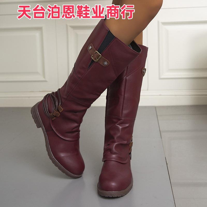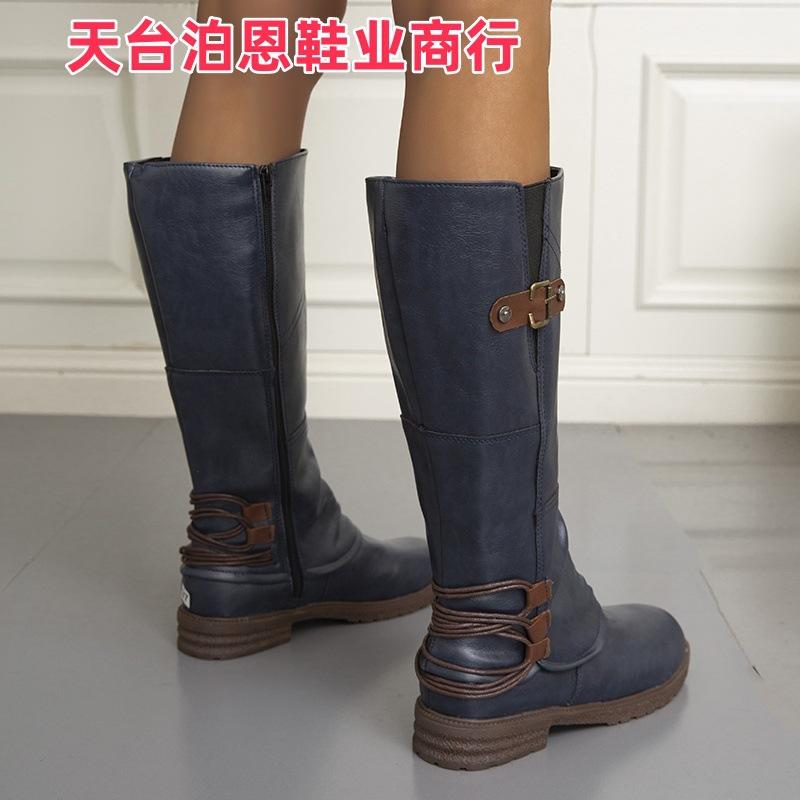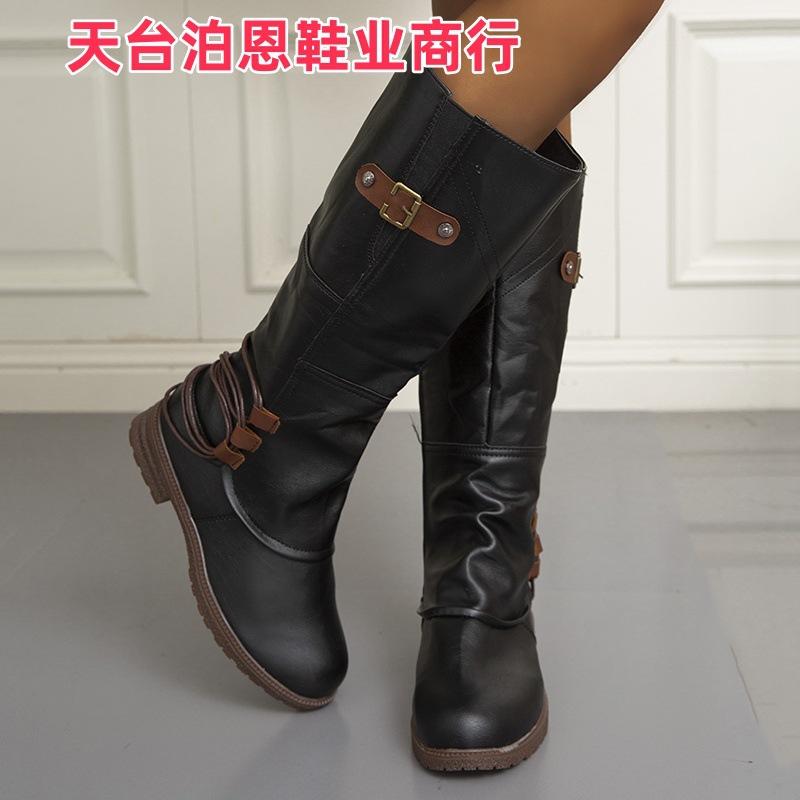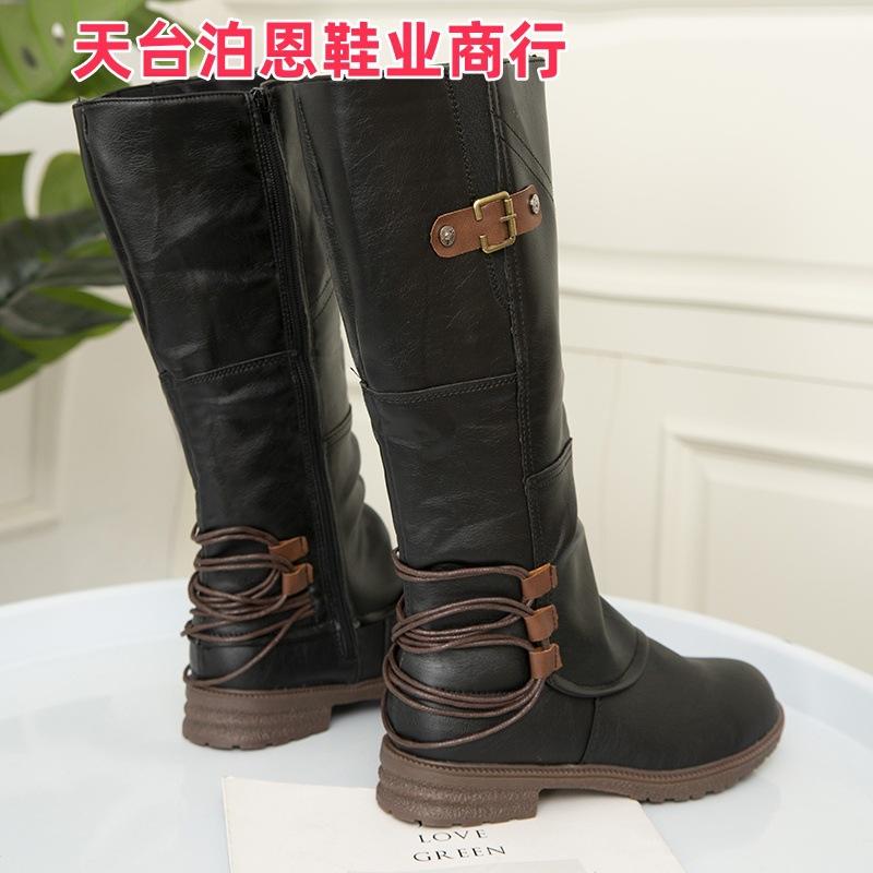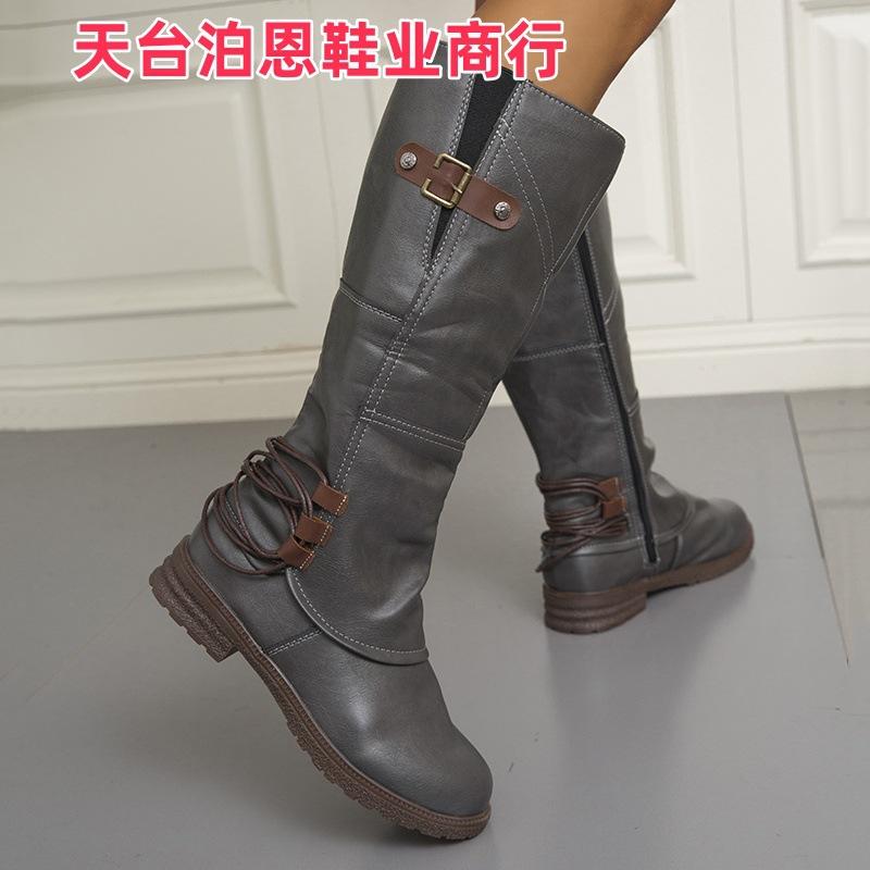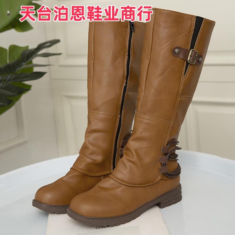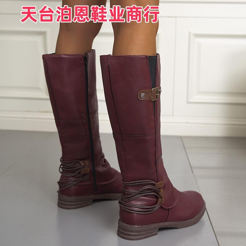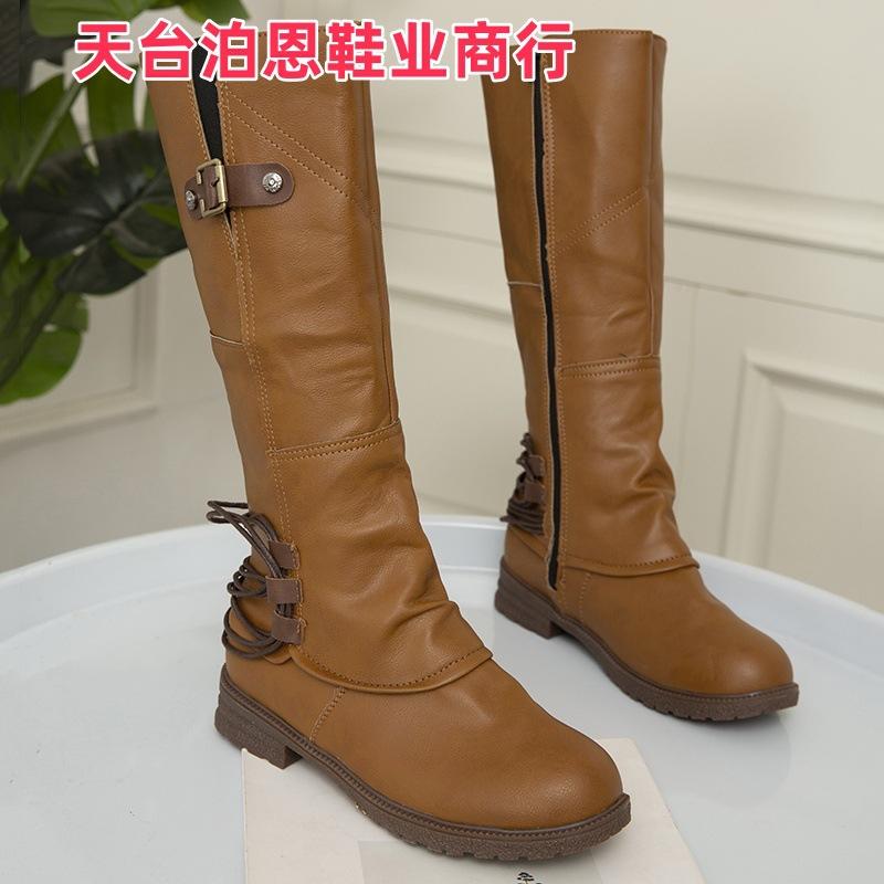 Dropshipping de Comercio Exterior Transfronterizo Europa y América Punto Venta al por Mayor Punta Redonda Cremallera Lateral Tacón Cuadrado Botas de Mujer Otoño e Invierno Nuevas Botas PU de Media Caña
