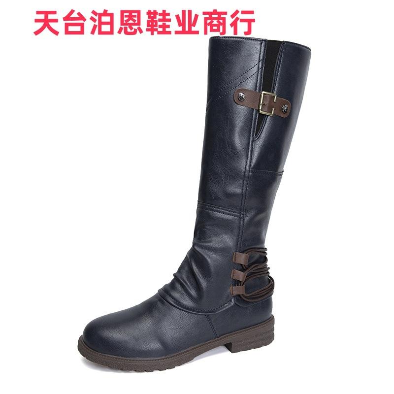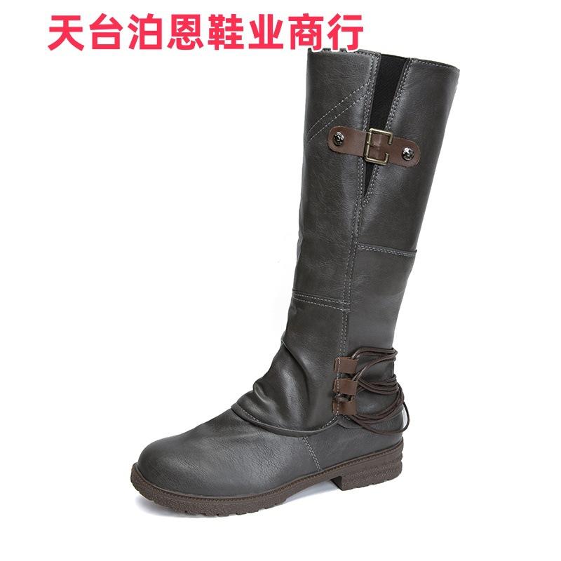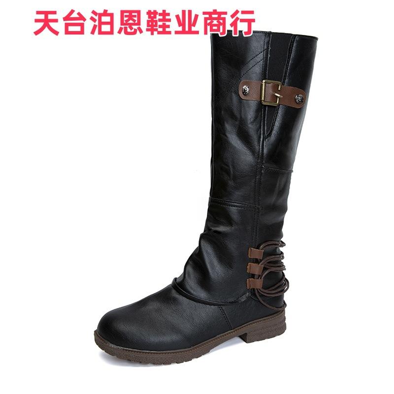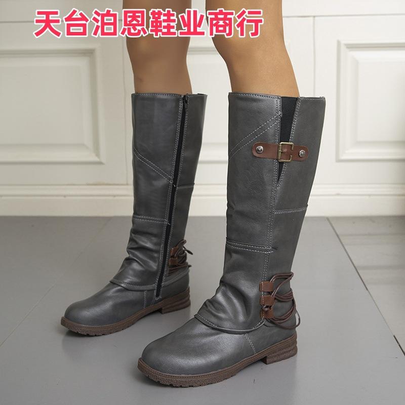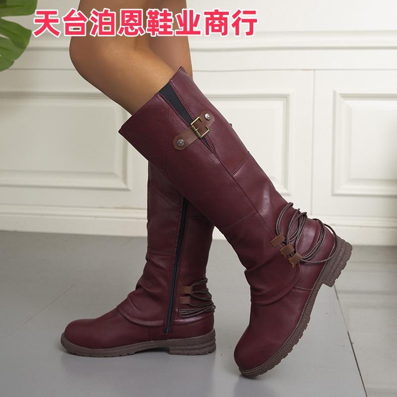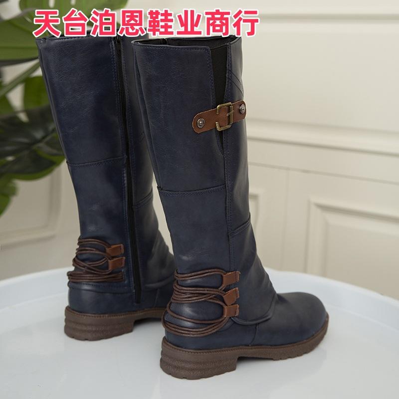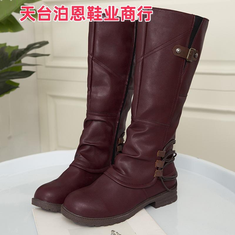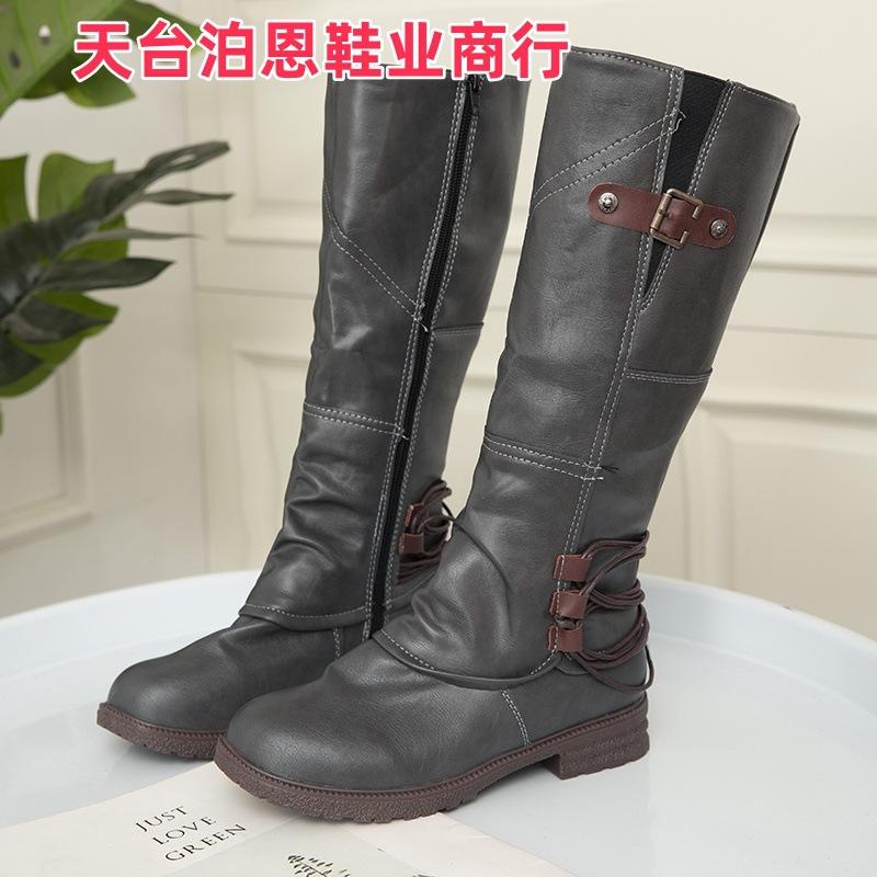 Dropshipping de Comercio Exterior Transfronterizo Europa y América Punto Venta al por Mayor Punta Redonda Cremallera Lateral Tacón Cuadrado Botas de Mujer Otoño e Invierno Nuevas Botas PU de Media Caña