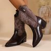 Comercio Exterior Talla Grande Tacón Grueso Punta Redonda Bordado Botas de Cuero Occidental para Mujer 2025 Nueva Moda Slip-on Botas Europeas y Americanas de Media Caña