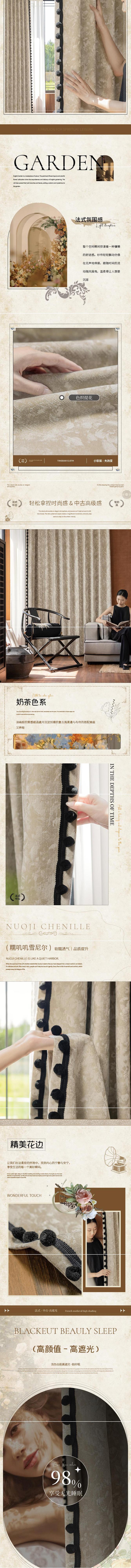 Cortinas Downton Abbey Retro Francés Lujo Ligero Jacquard Chenilla Alto Blackout Sala de Estar Dormitorio Balcón Producto Terminado Venta al por Mayor