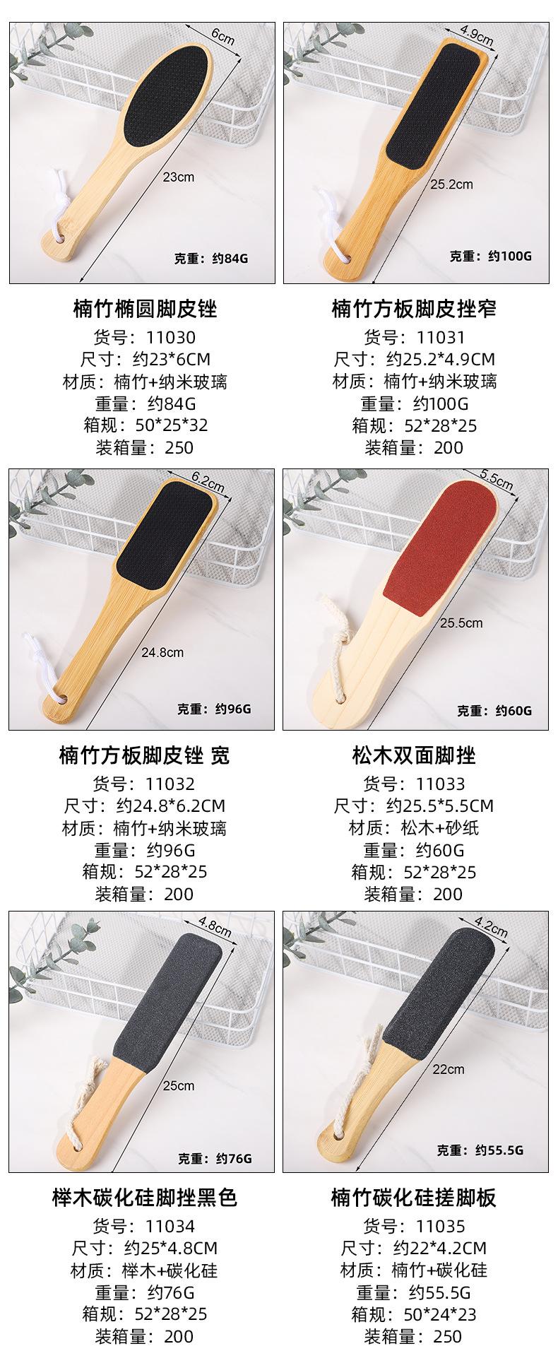 11033 Pine Double-Sided Foot File 25.5*5.5, 11035 Nan bamboo silicon carbide foot scrubber 22*4.2, 11035-1 Nan...