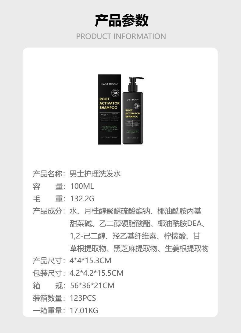 East Moon Cuidado para Hombres Champú Limpieza Cuero Cabelludo Nutrición Folículos Pilosos Champú Suave Refrescante