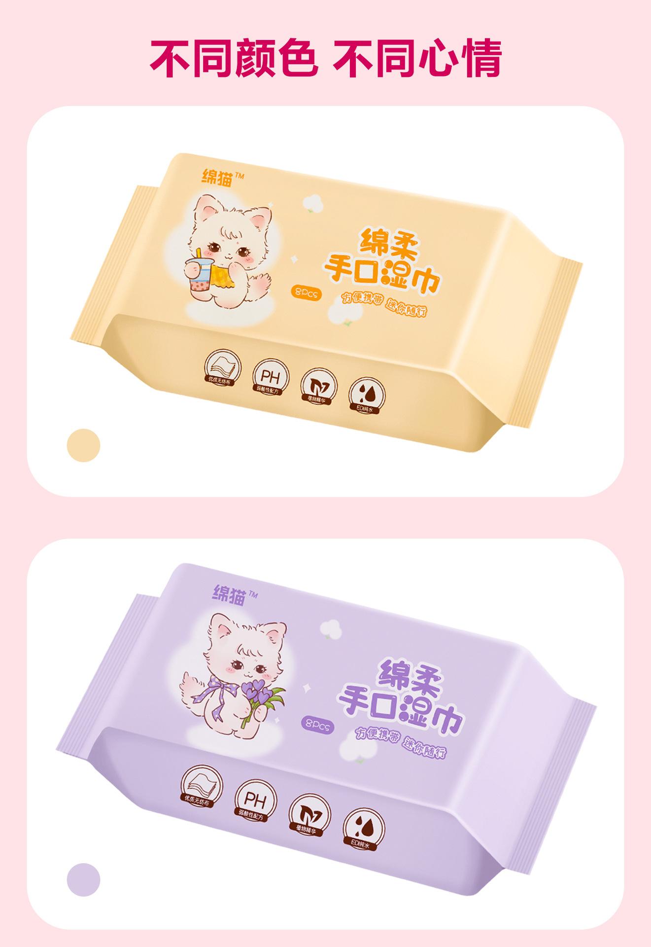 Mianmao mini wet wipes mixed color 8 pieces*8 packs/box 1 box, Mianmao mini wet wipes mixed color 8 pieces*8 p...