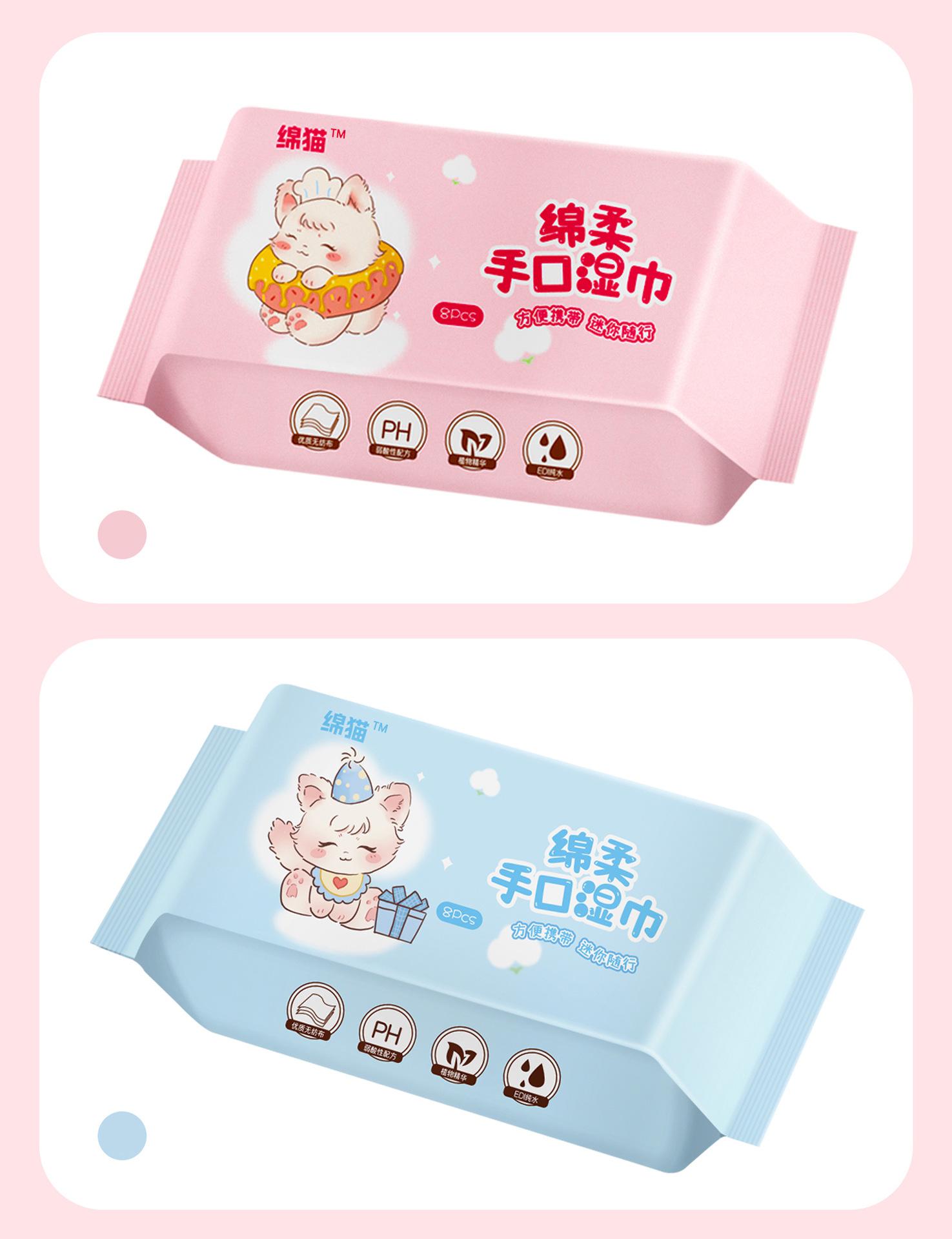 Mianmao mini wet wipes mixed color 8 pieces*8 packs/box 4 packs