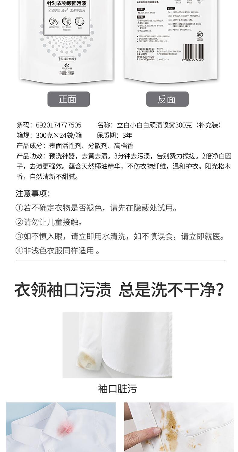 Spray Quitamanchas Liby Little White para Ropa y Cuellos, Blanqueador y Limpieza Profunda, Paquete Pequeño para Uso Doméstico, Producto Genuino a Granel