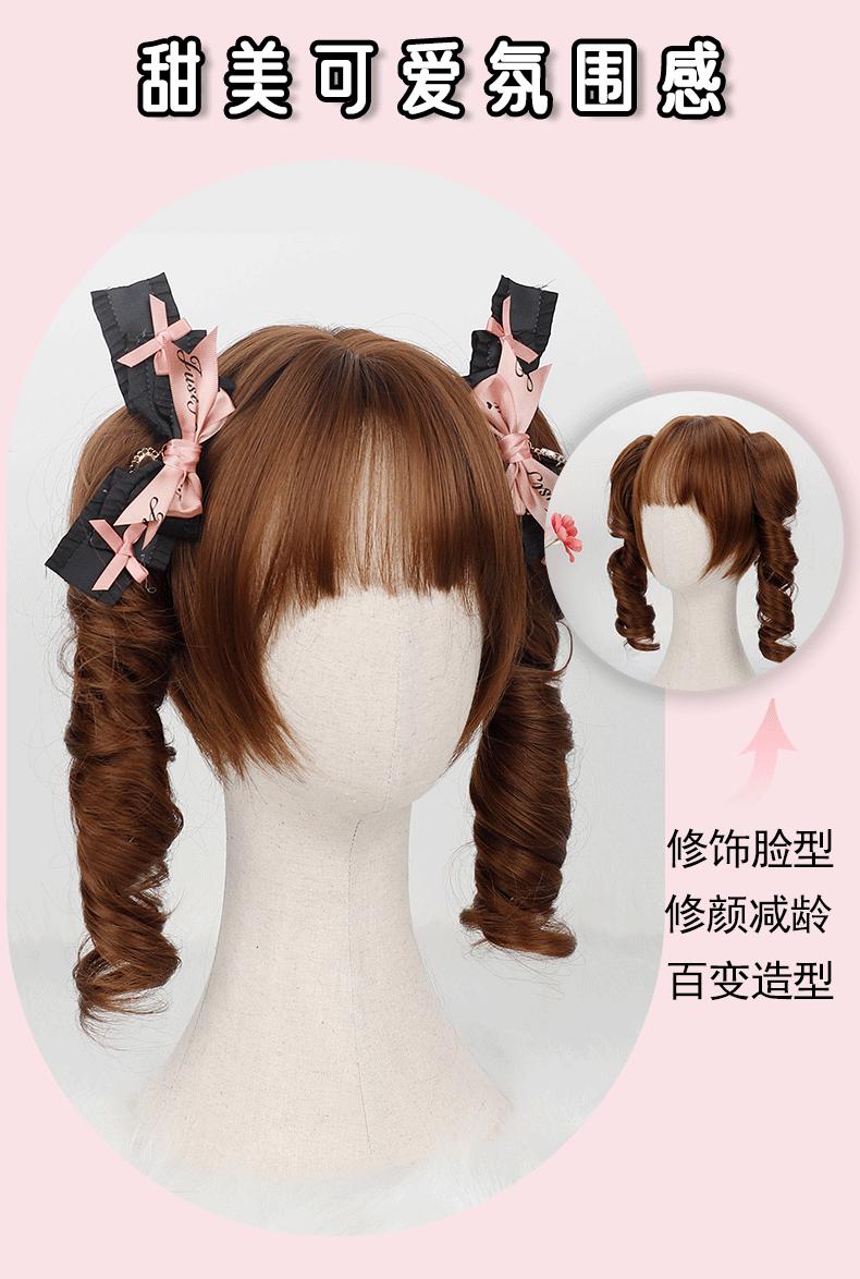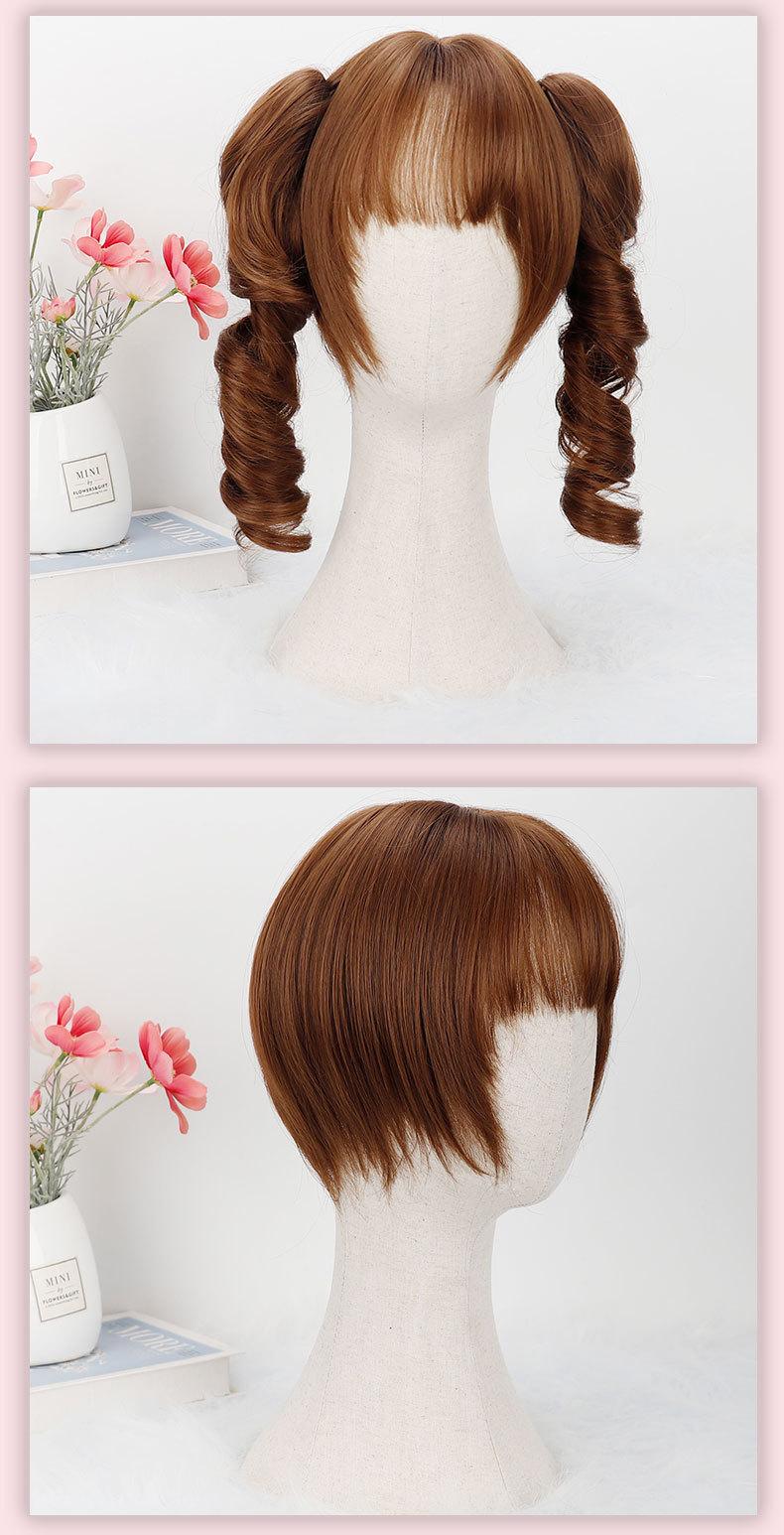 Fibra Química Anime Peluca Doble Cola de Caballo Tocado Clip Boca de Tigre Cabello Corto Tocado Lolita Anime Peluca Diaria Tocado Lote
