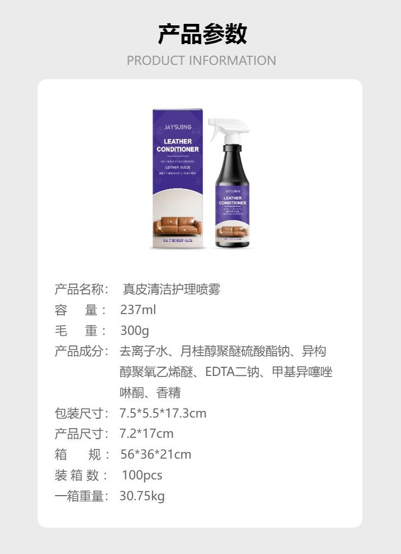 JAYSUING Spray Limpiador y Cuidado de Cuero Genuino Remoción Suave de Manchas No Daña el Cuero Limpieza de Artículos de Cuero Nutritivo No Deja Marcas