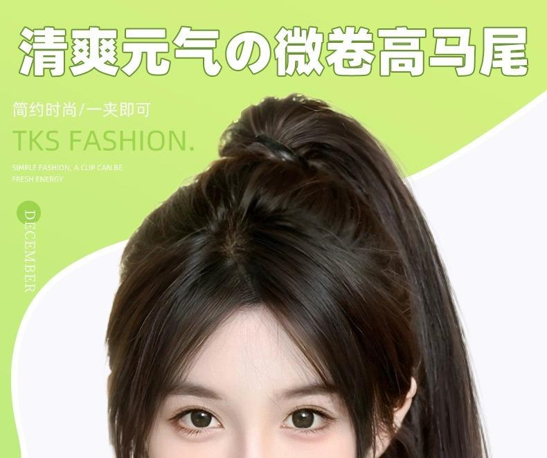 Peluca de Cola de Caballo Alta para Mujer con Estilo Clip-On, Trenzas Elegantes Ligeramente Onduladas Largas Rizadas, Cabello Artificial Moderno que Reduce la Edad Peluca con Hebilla Interna